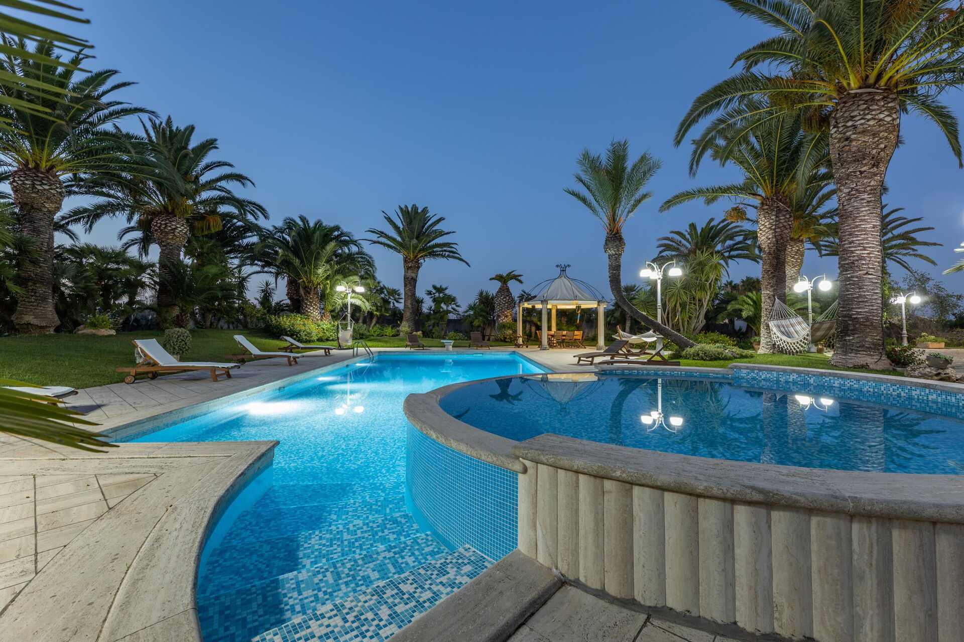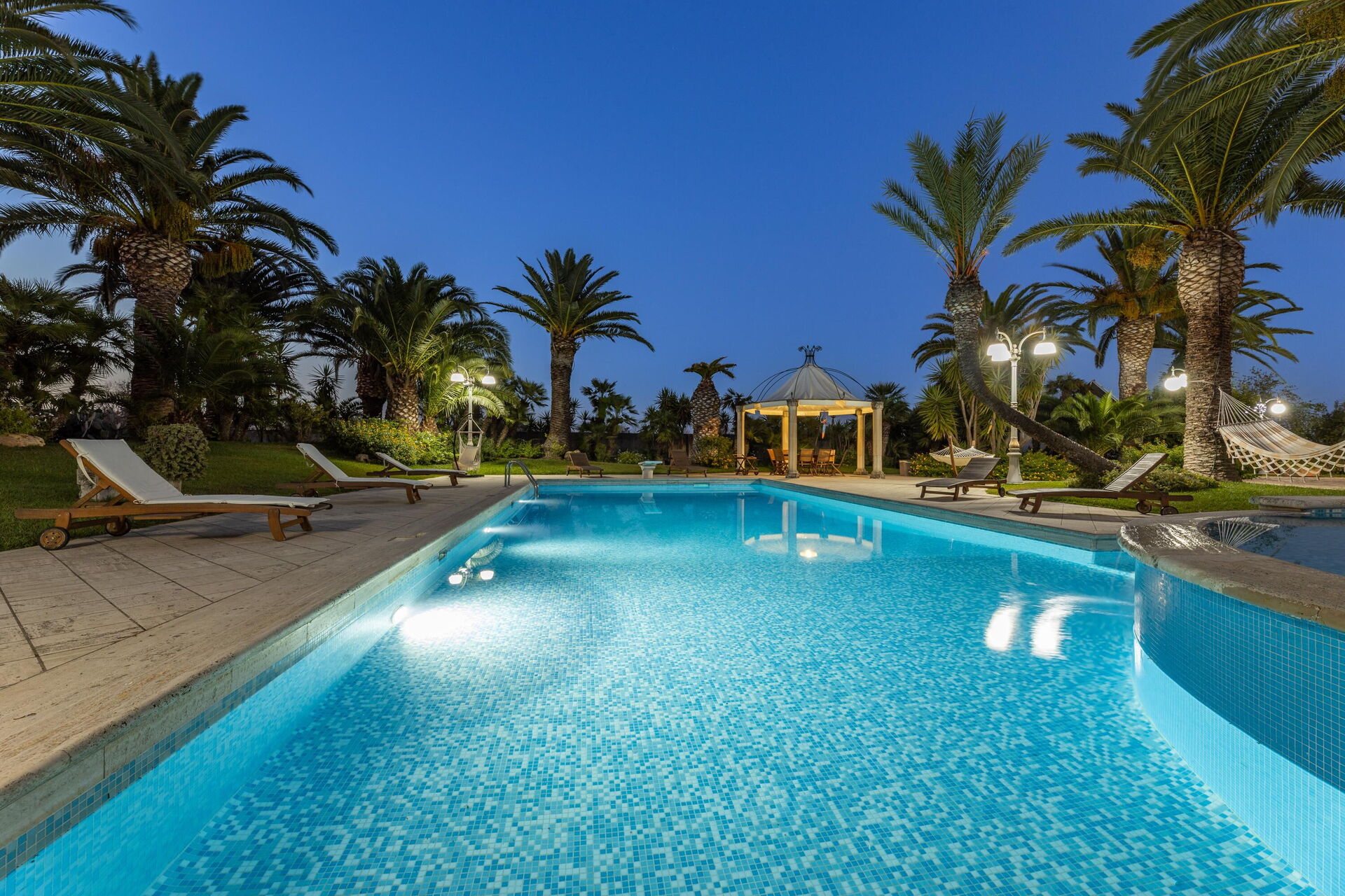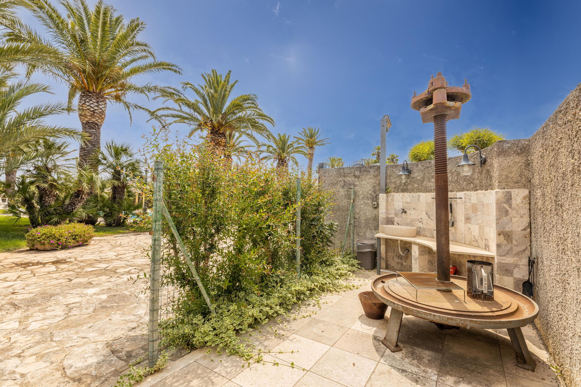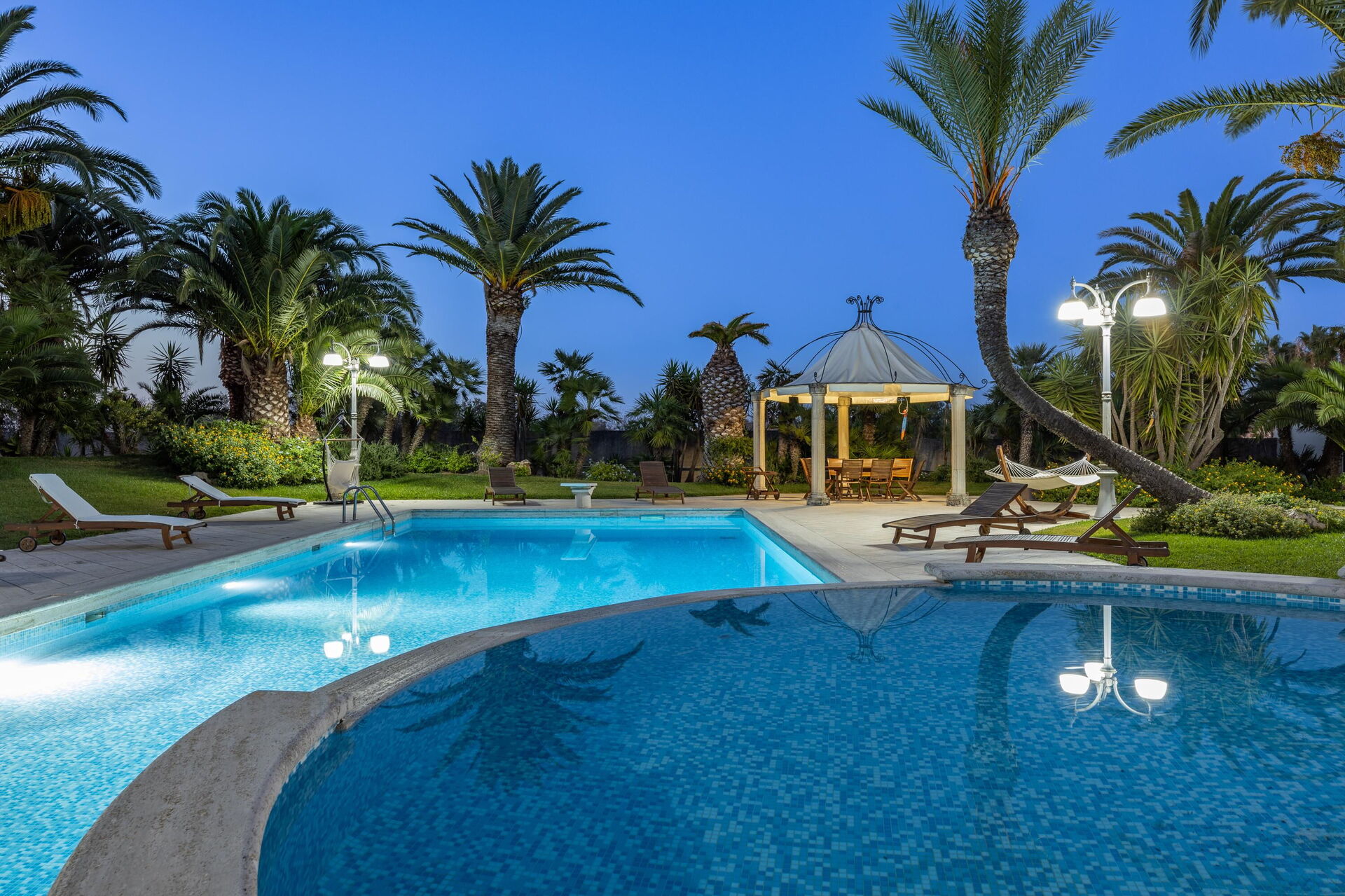 Villa Oasi di Pace is nestled in a 5000 square meter garden which is splendidly cared for, with a lawn, beautiful palm trees, and a fabulous private pool. This vacation villa rental with a private pool in Apulia is completely independent, and you can enjoy a vacation in total privacy just kilometers from the region’s beautiful beaches.