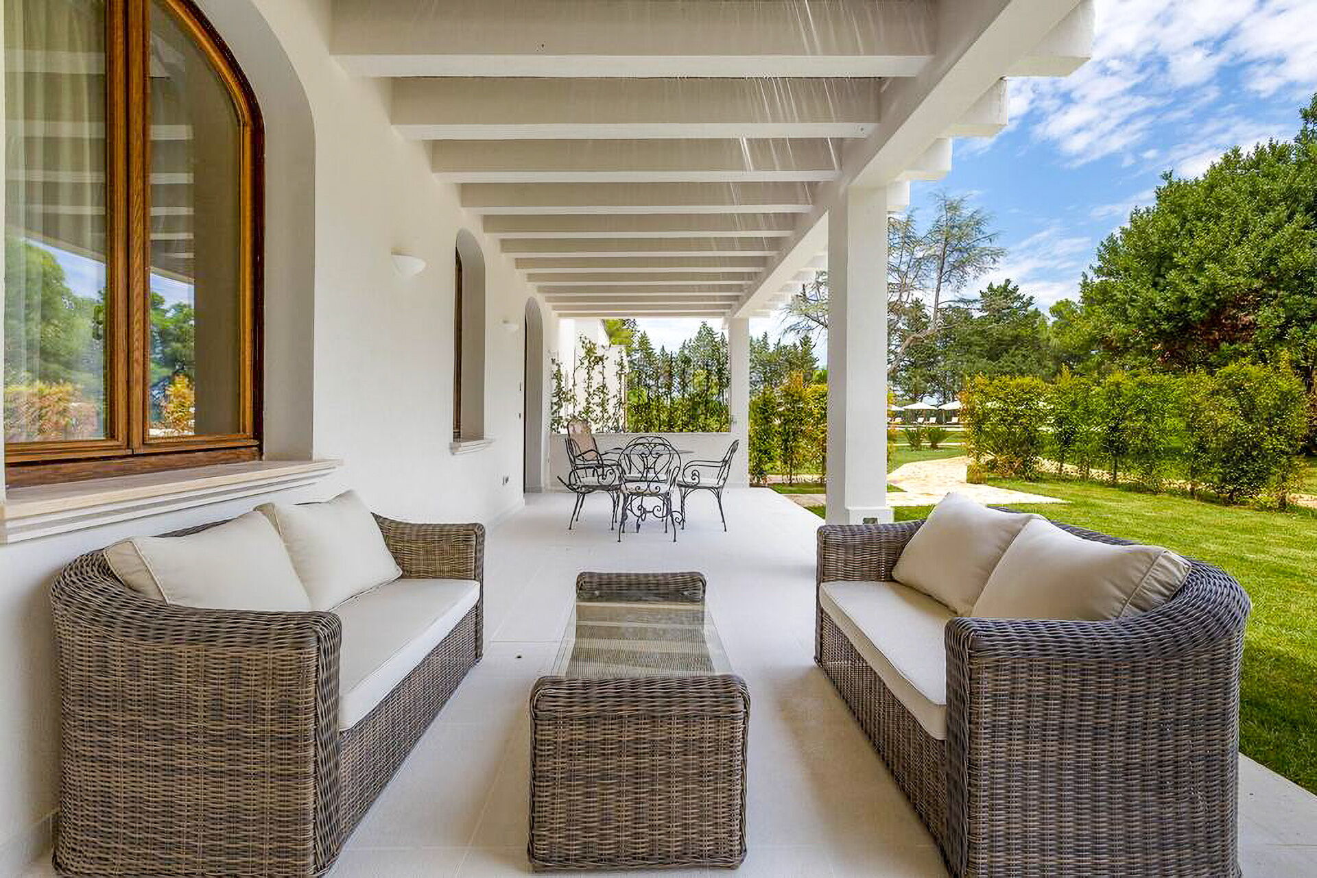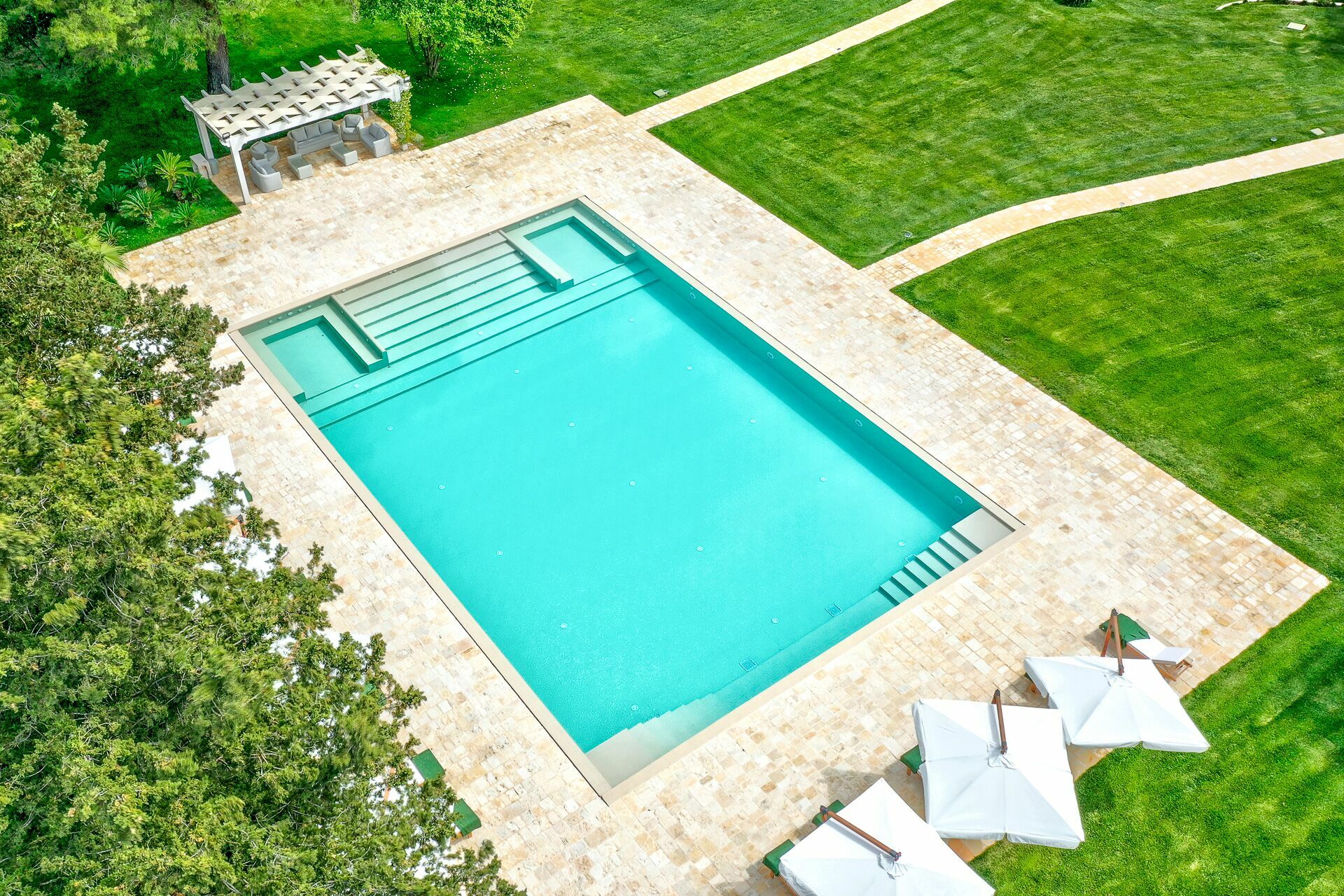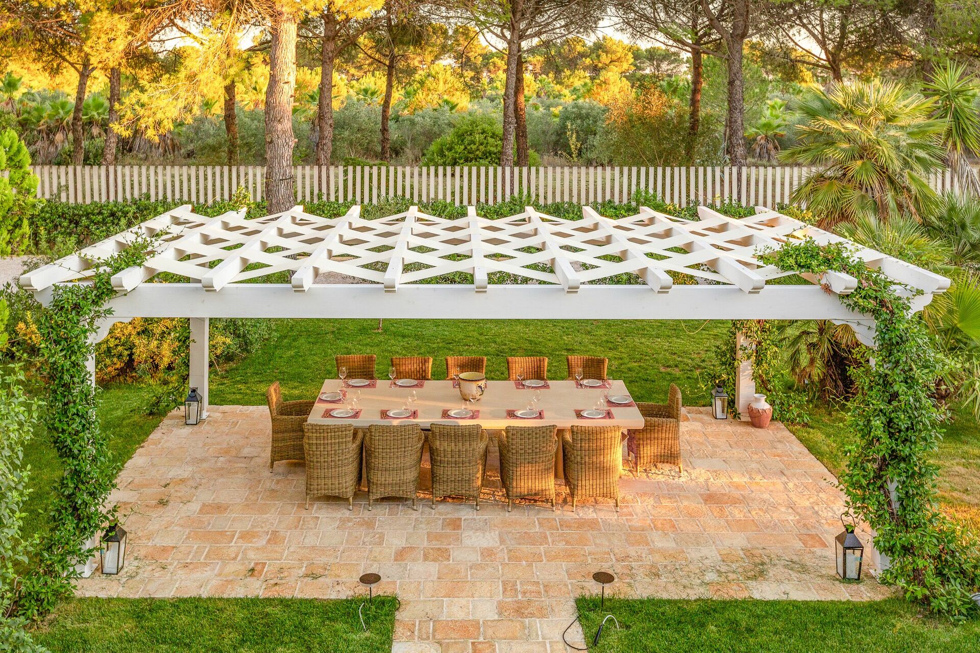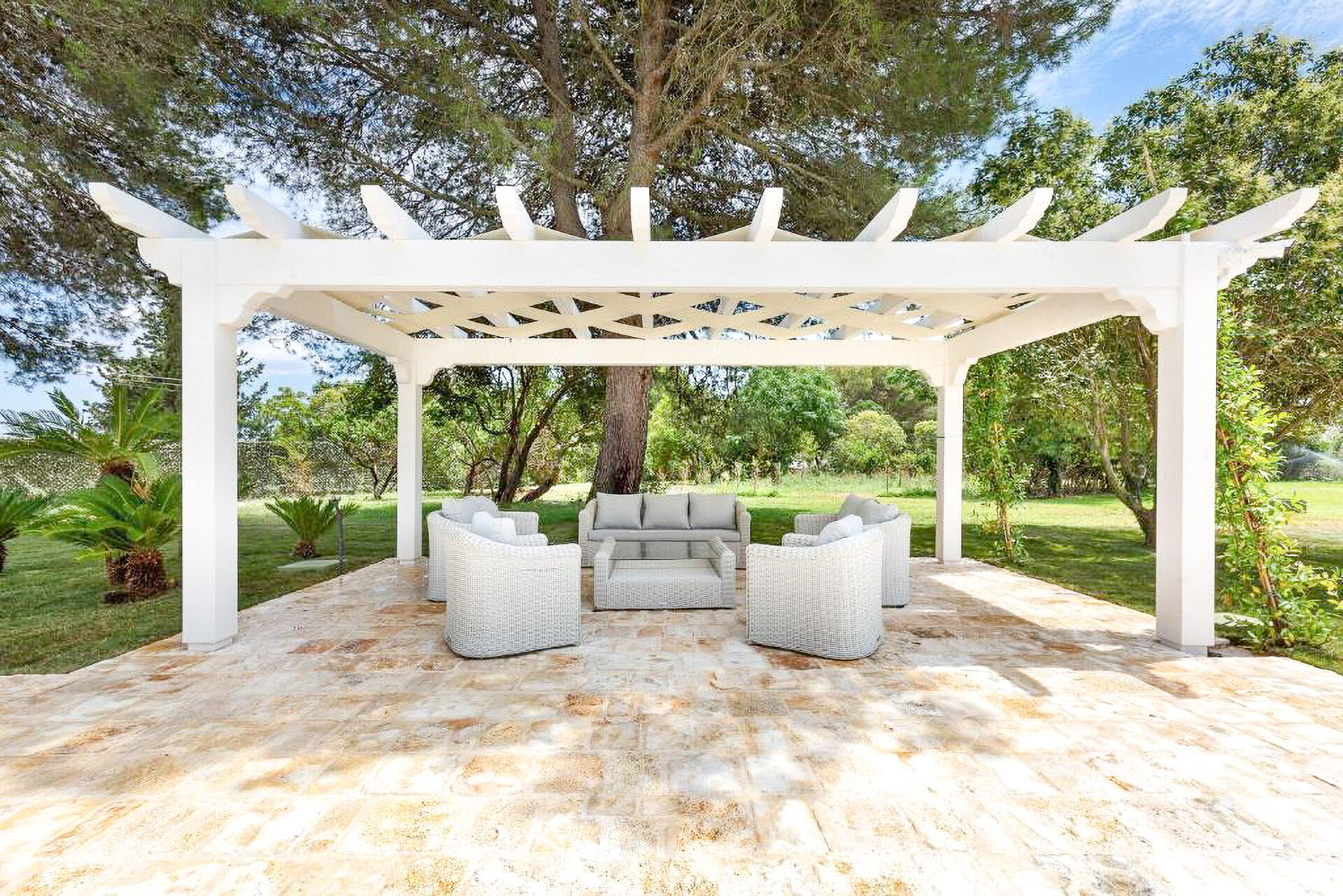 - Furnished verandas and pergolas with dining and relaxation areas