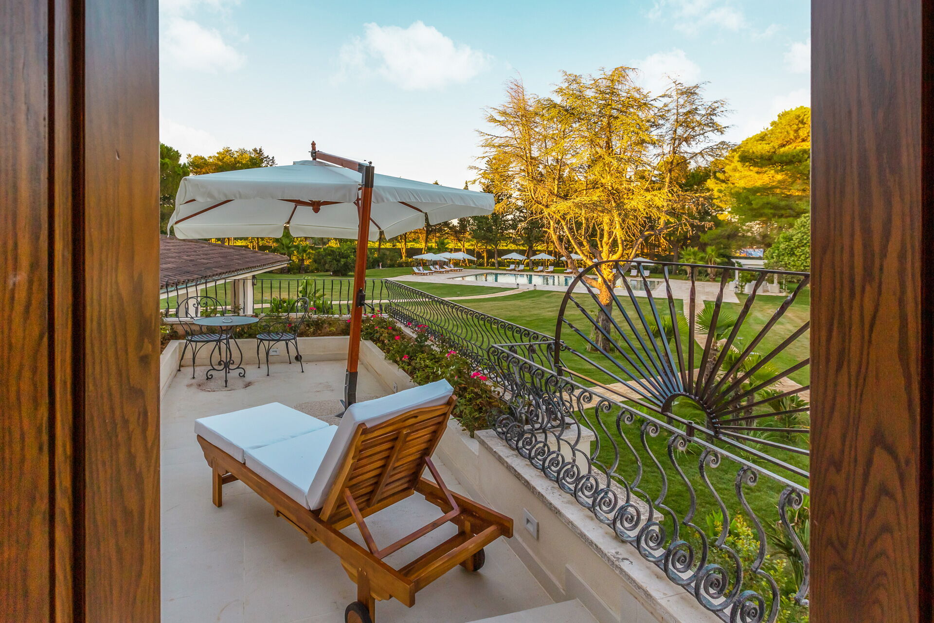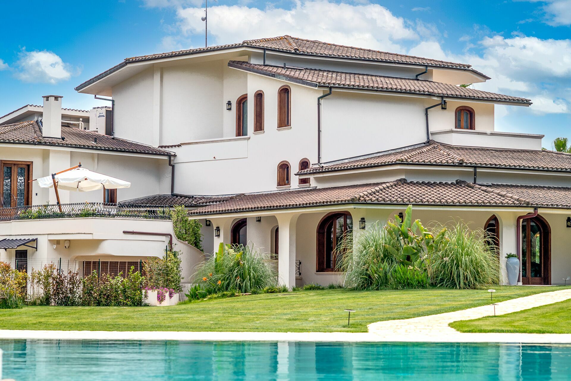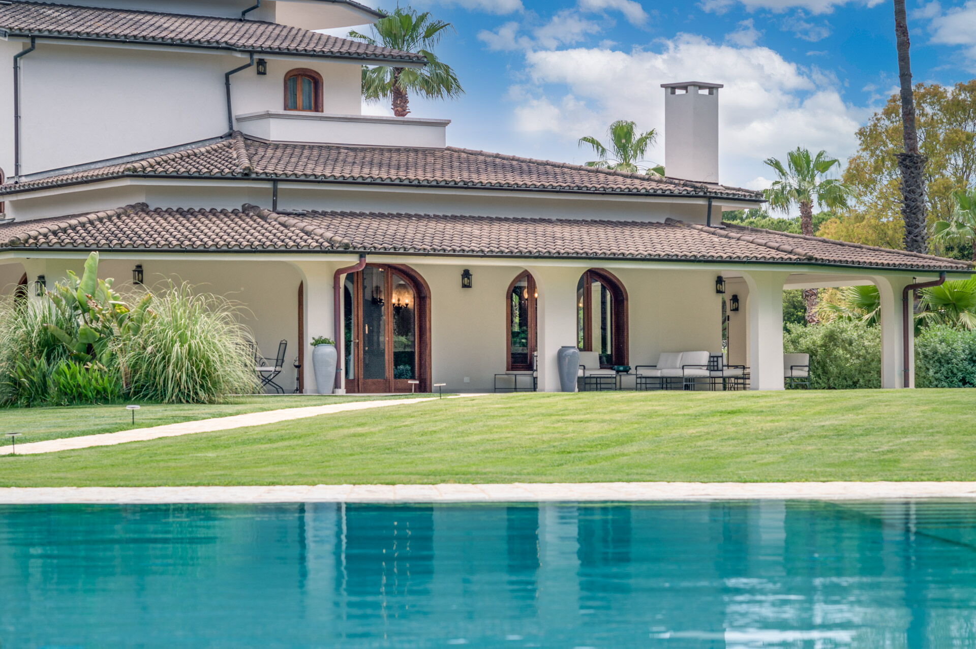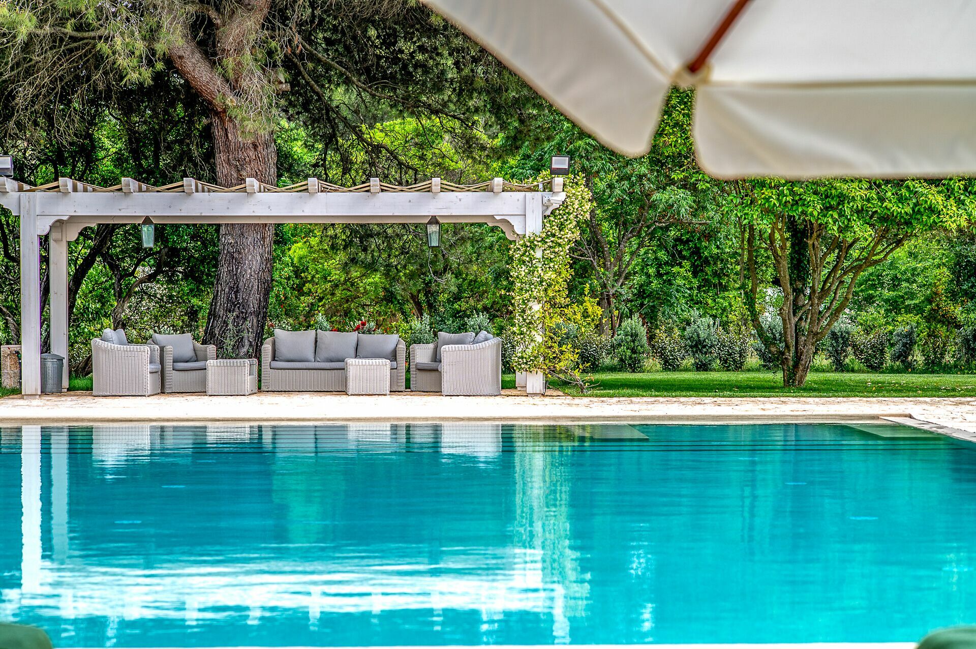 - Furnished verandas and pergolas with dining and relaxation areas