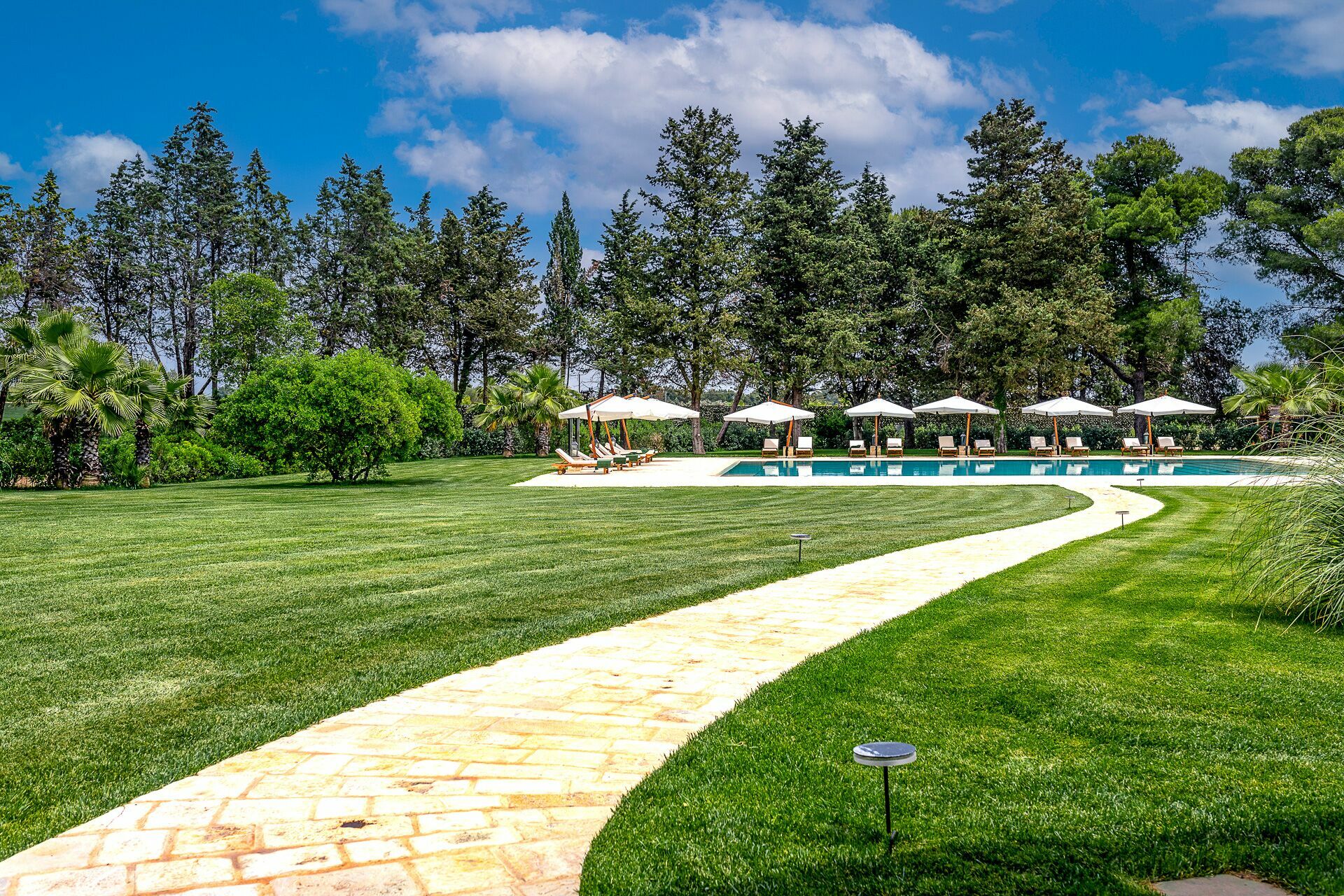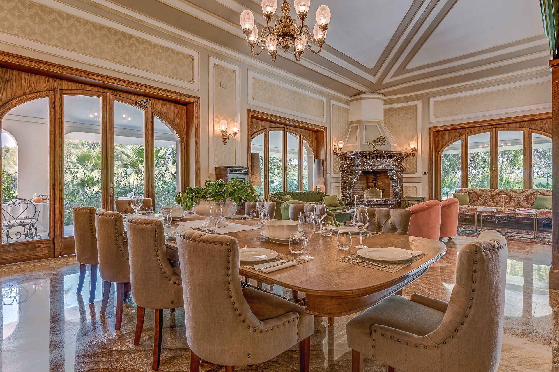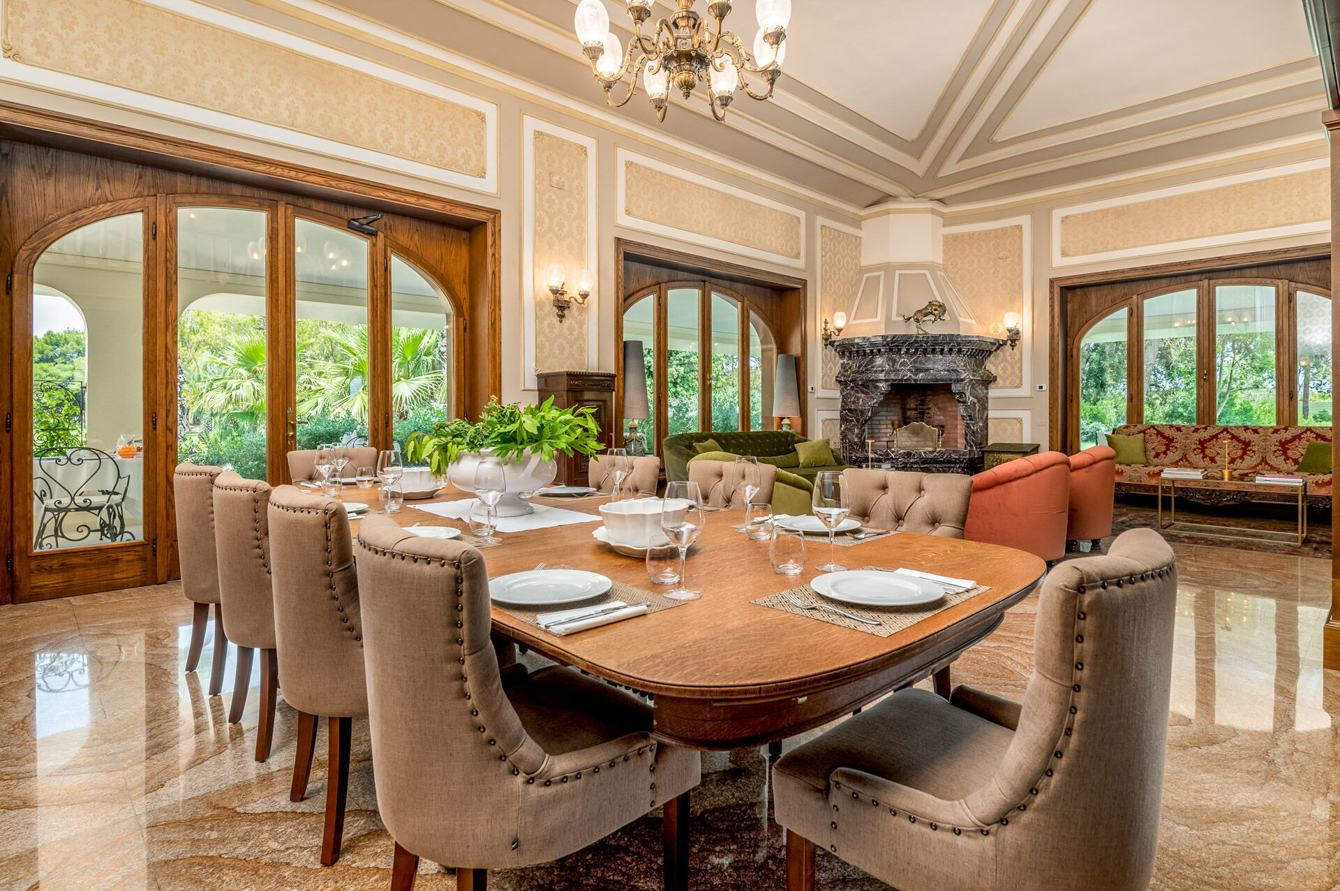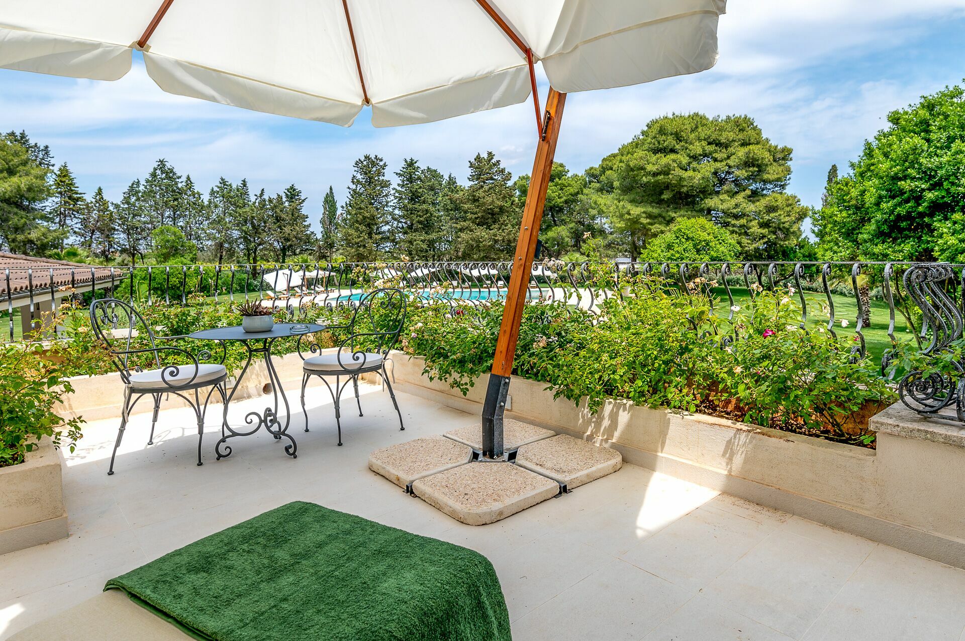 - Furnished verandas and pergolas with dining and relaxation areas