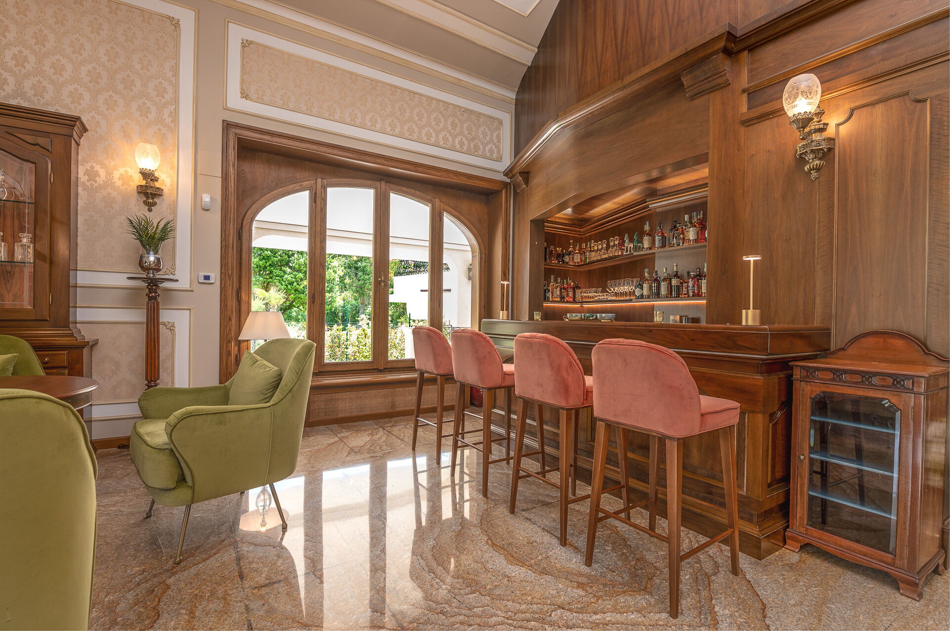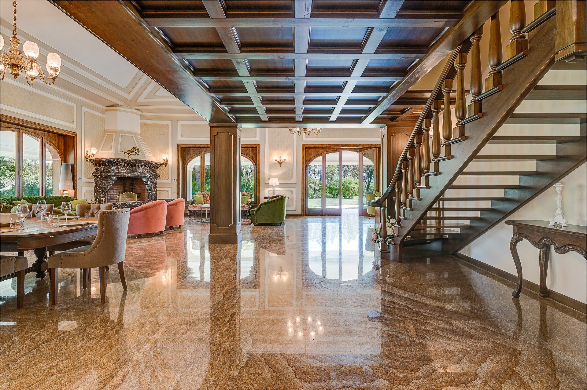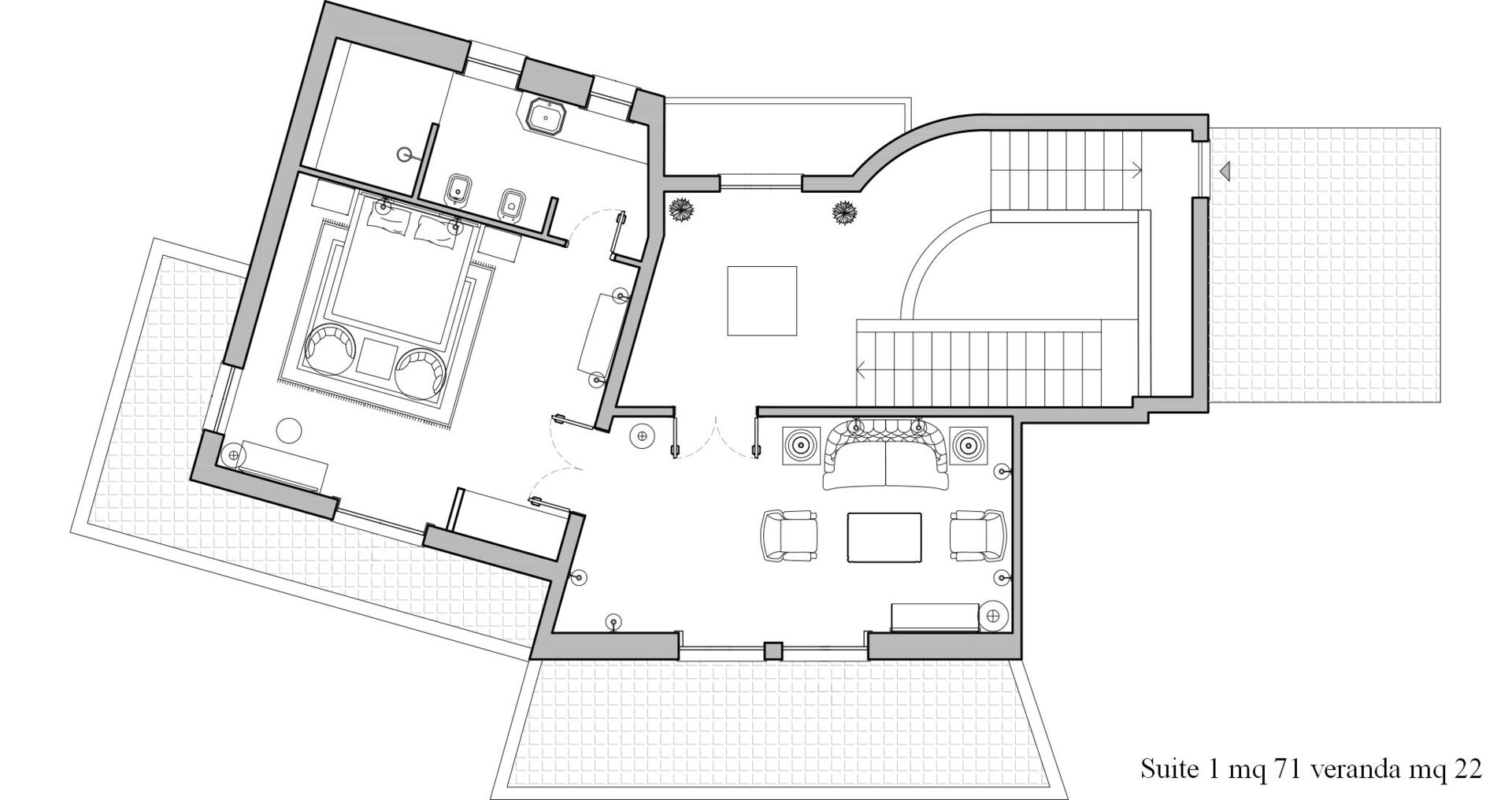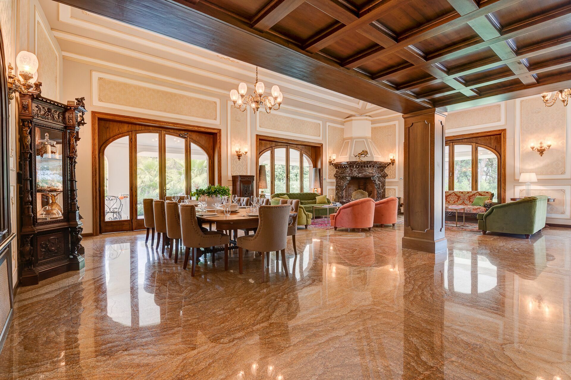 - Furnished verandas and pergolas with dining and relaxation areas