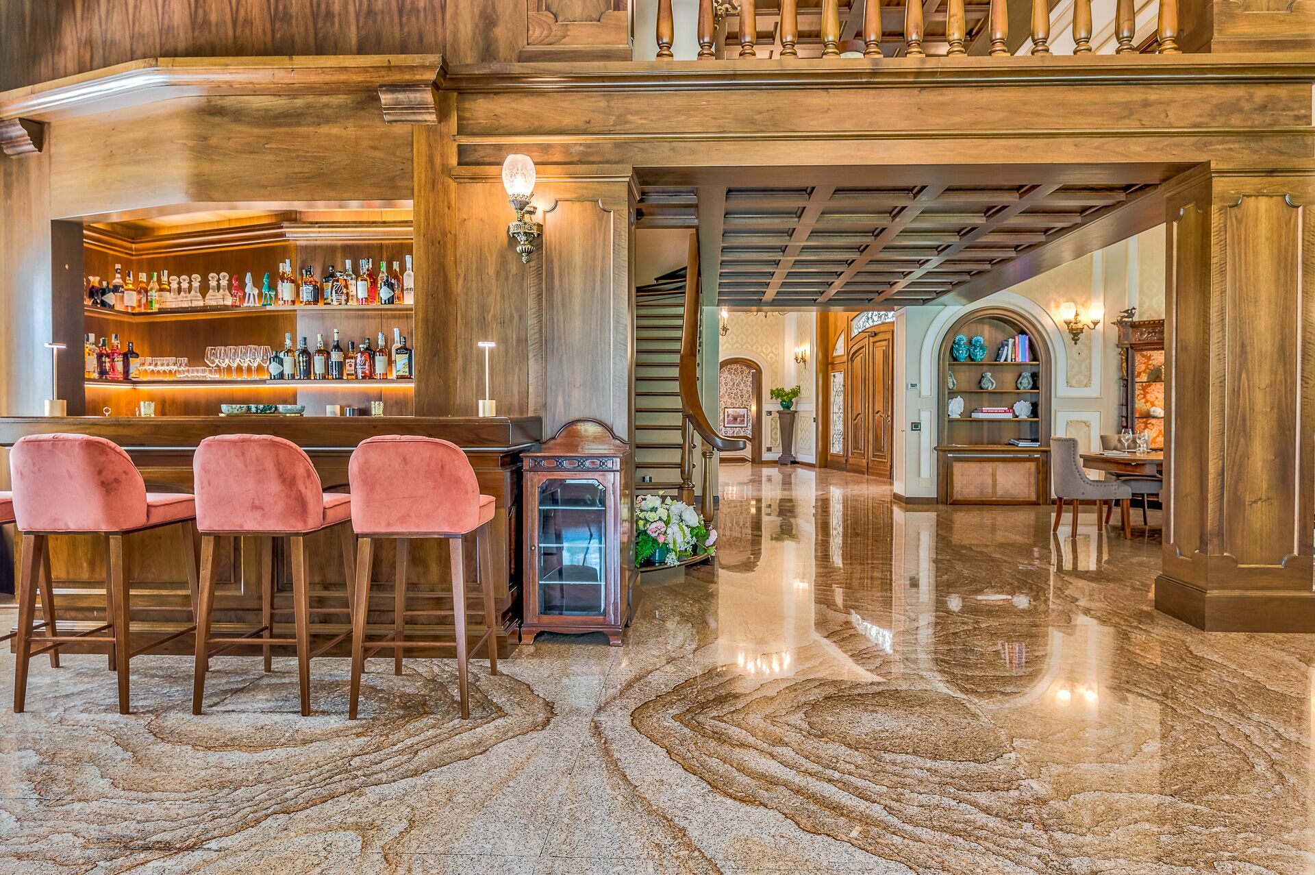 Lower ground floor: spa; gym; basement with dining room; room with pool table.