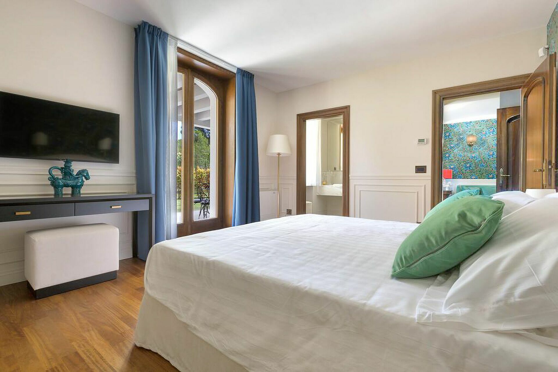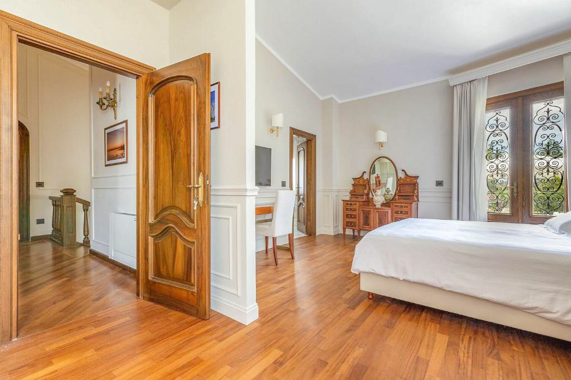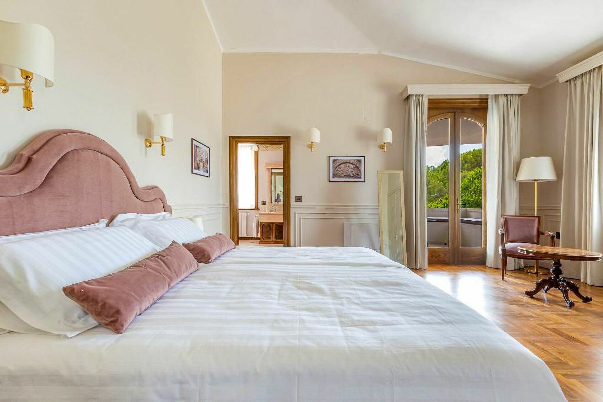 First floor: 1 double bedroom with king size bed, private bathroom with whirlpool bathtub and shower, and access to private terrace; 1 double bedroom with king size bed and private bathroom with shower; 1 double bedroom with king size bed, private bathroom with shower and access to private terrace; 1 double bedroom with king size bed, private bathroom with shower and access to private terrace.