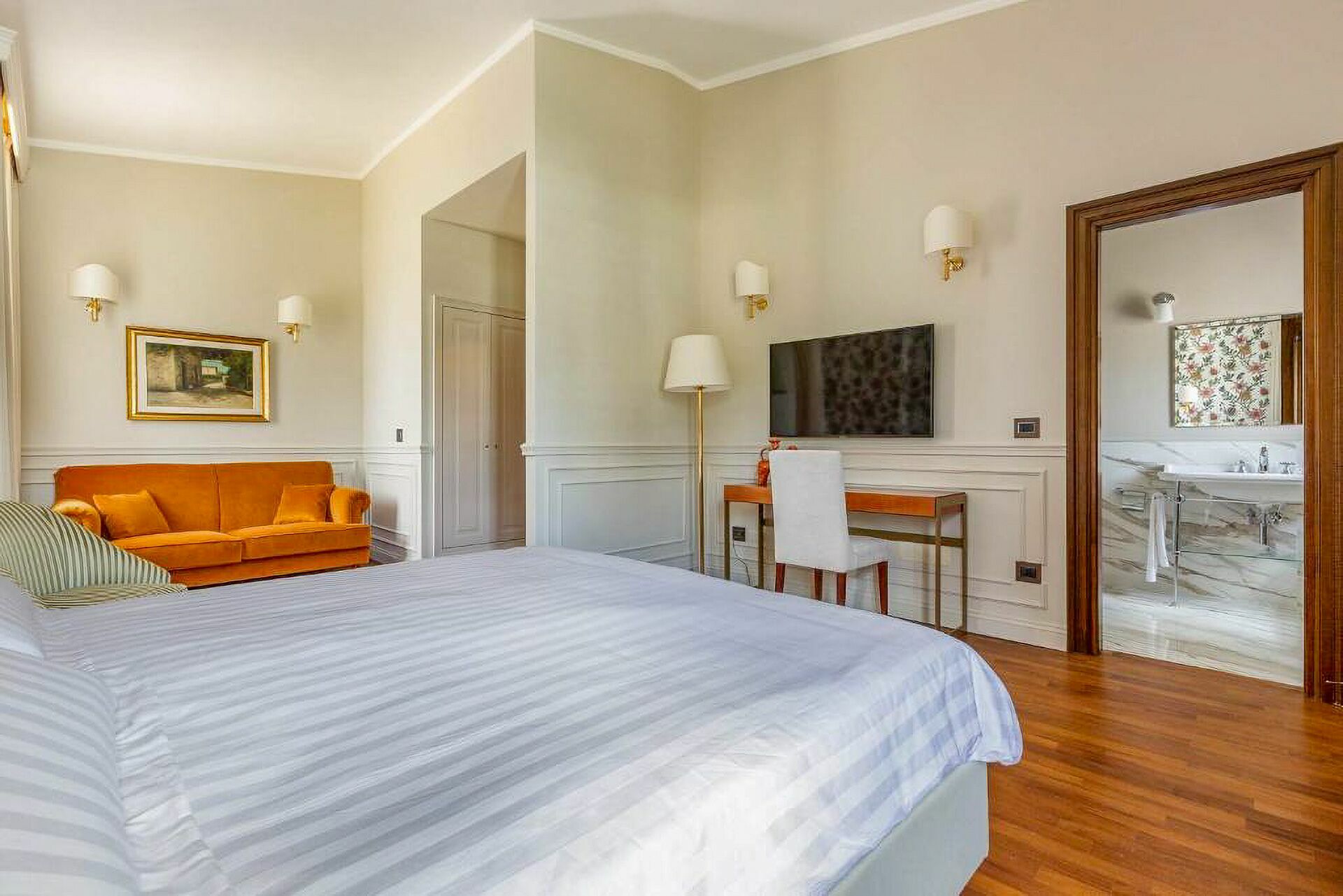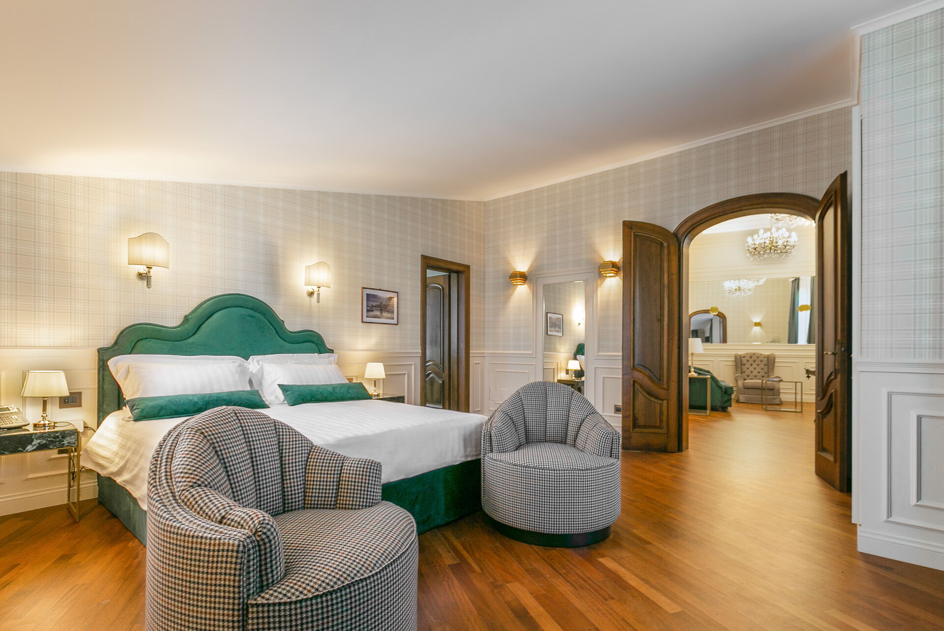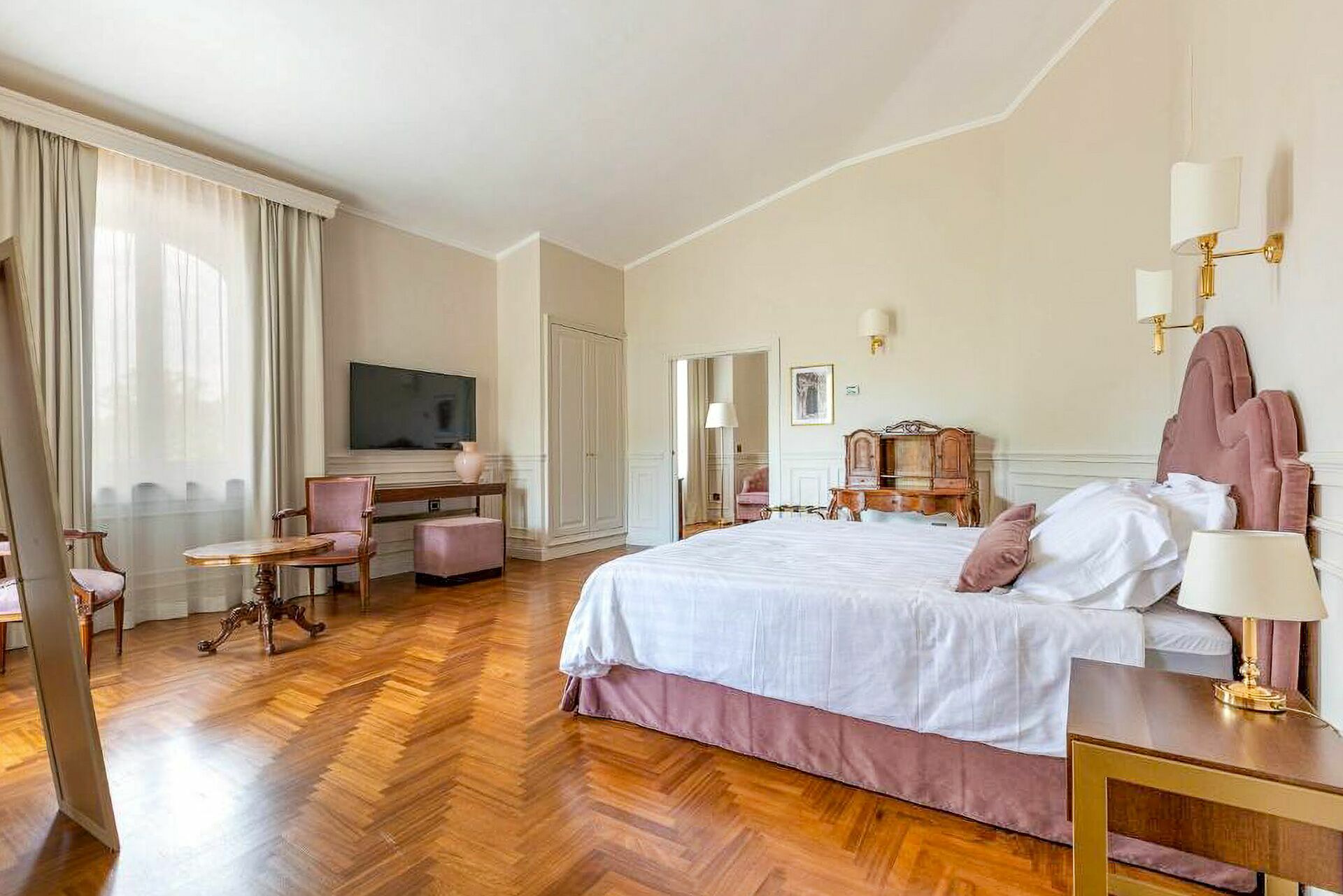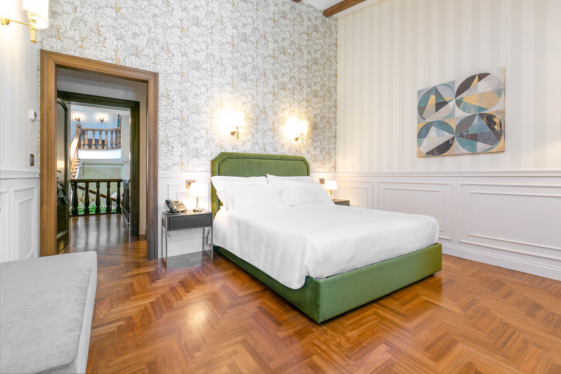 First floor: 1 double bedroom with king size bed, private bathroom with whirlpool bathtub and shower, and access to private terrace; 1 double bedroom with king size bed and private bathroom with shower; 1 double bedroom with king size bed, private bathroom with shower and access to private terrace; 1 double bedroom with king size bed, private bathroom with shower and access to private terrace.