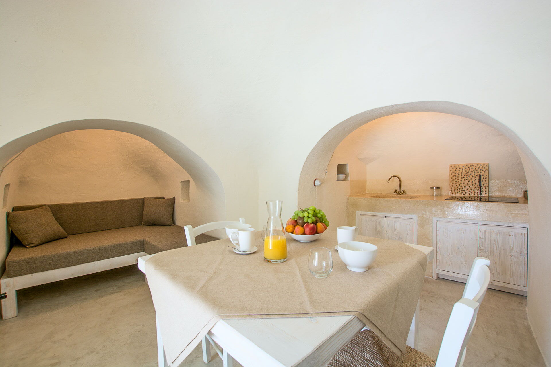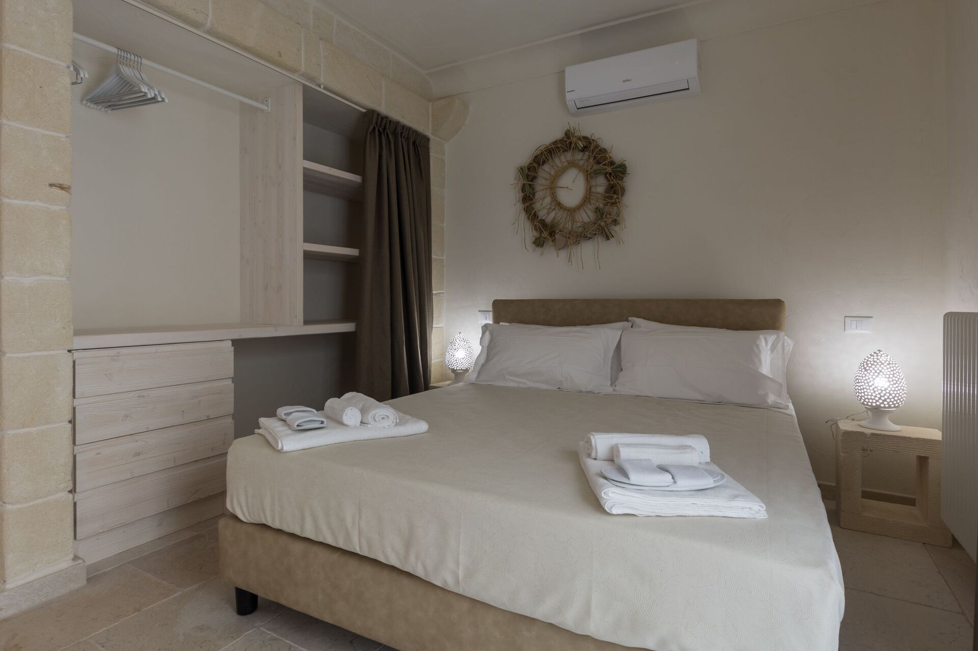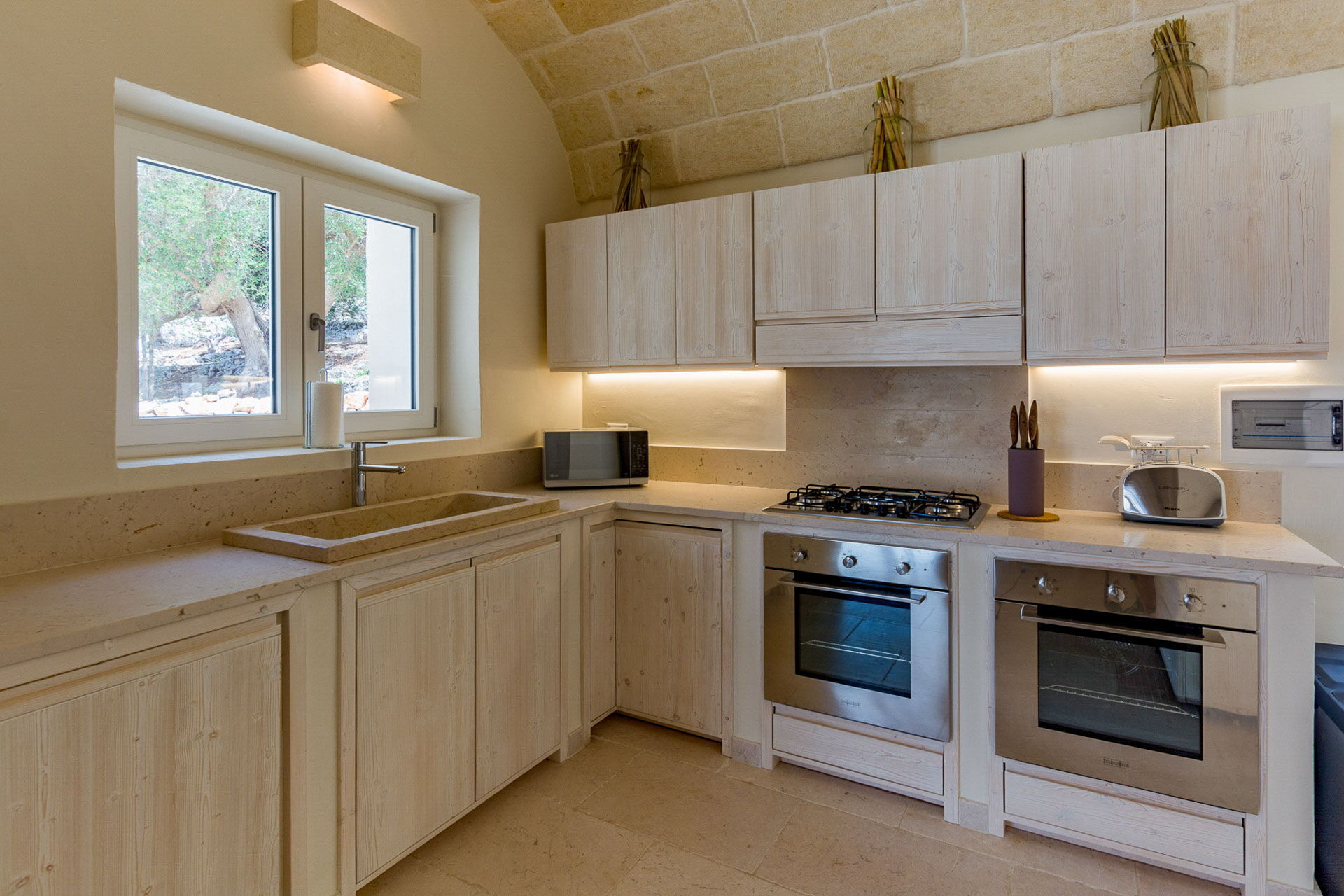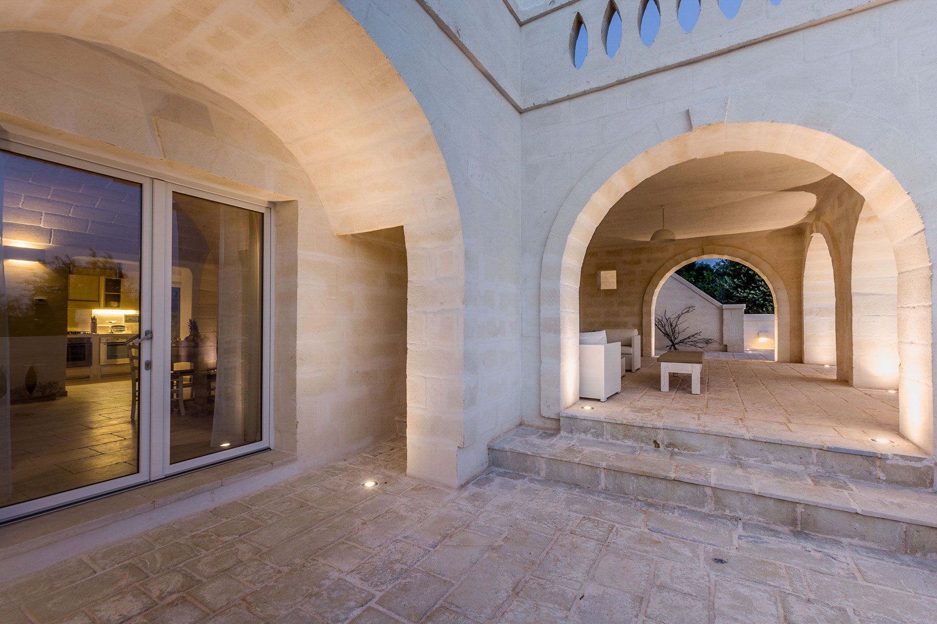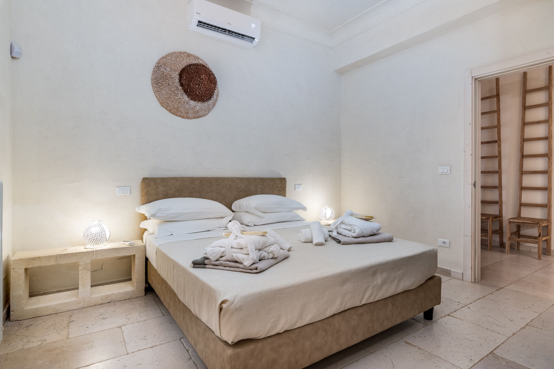 With 7 bedrooms in the majestic main villa, and bedrooms in the adjacent stone trulli, La Residenza- Corte dei Messapi can accommodate up to 16 people. The traditional Apulian-style interiors are an unforgettable mix of stone, arches, muted colors and handcrafted furniture.