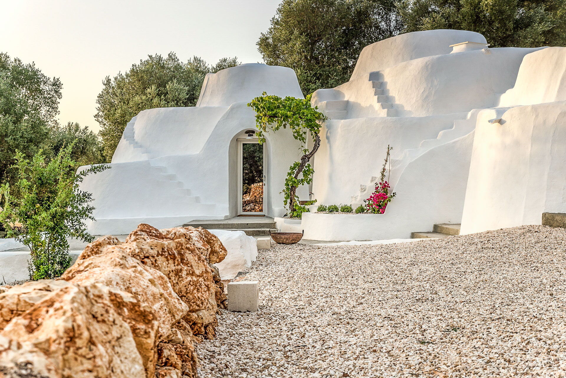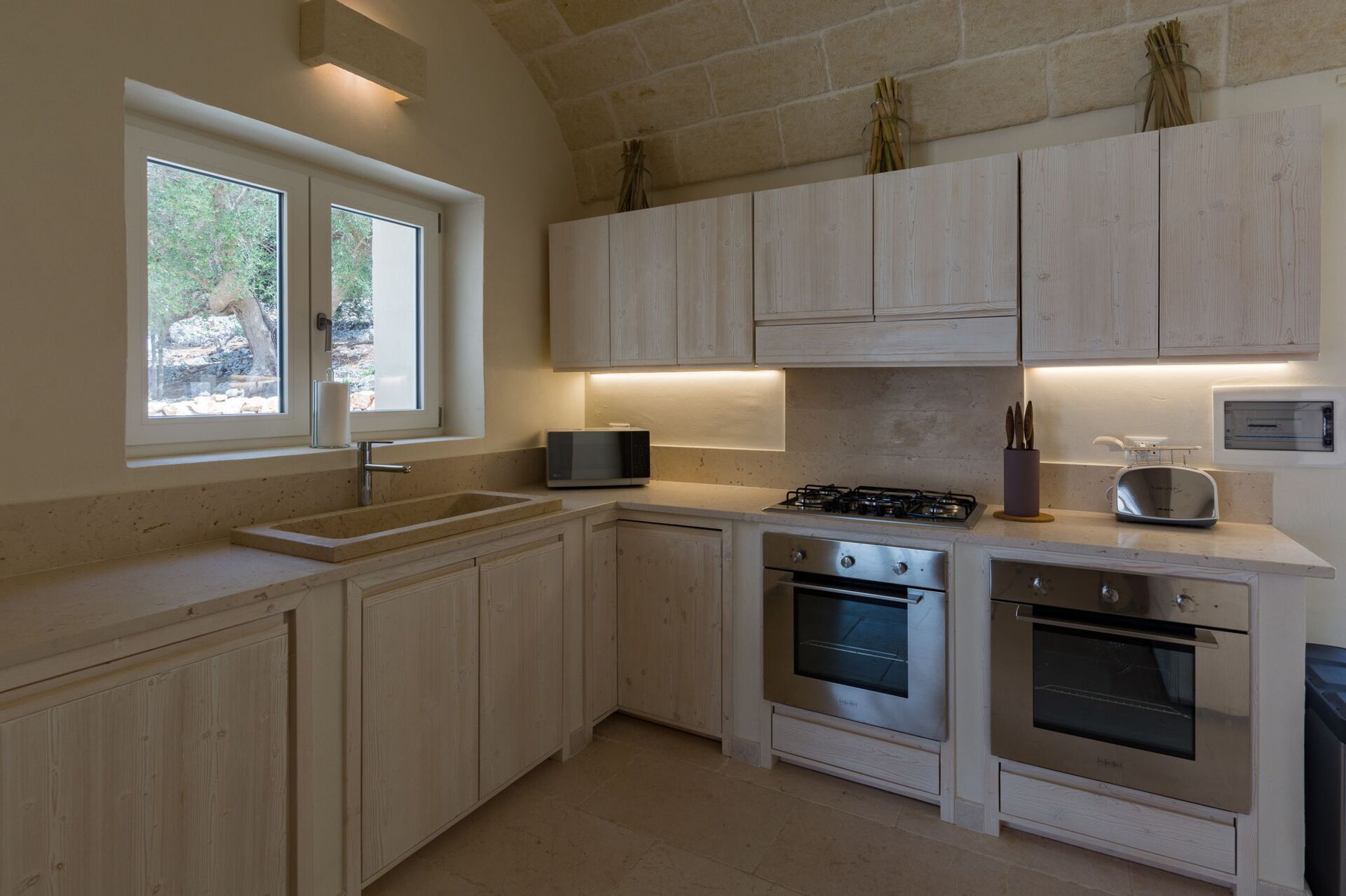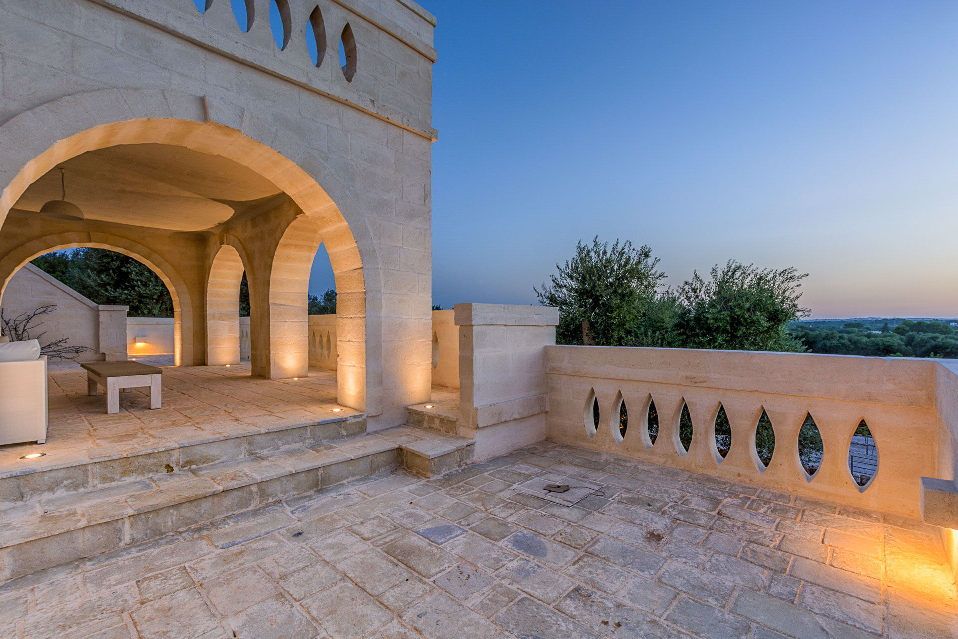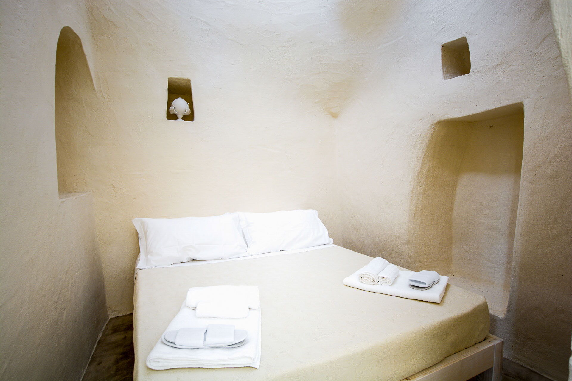 With 7 bedrooms in the majestic main villa, and bedrooms in the adjacent stone trulli, La Residenza- Corte dei Messapi can accommodate up to 16 people. The traditional Apulian-style interiors are an unforgettable mix of stone, arches, muted colors and handcrafted furniture.