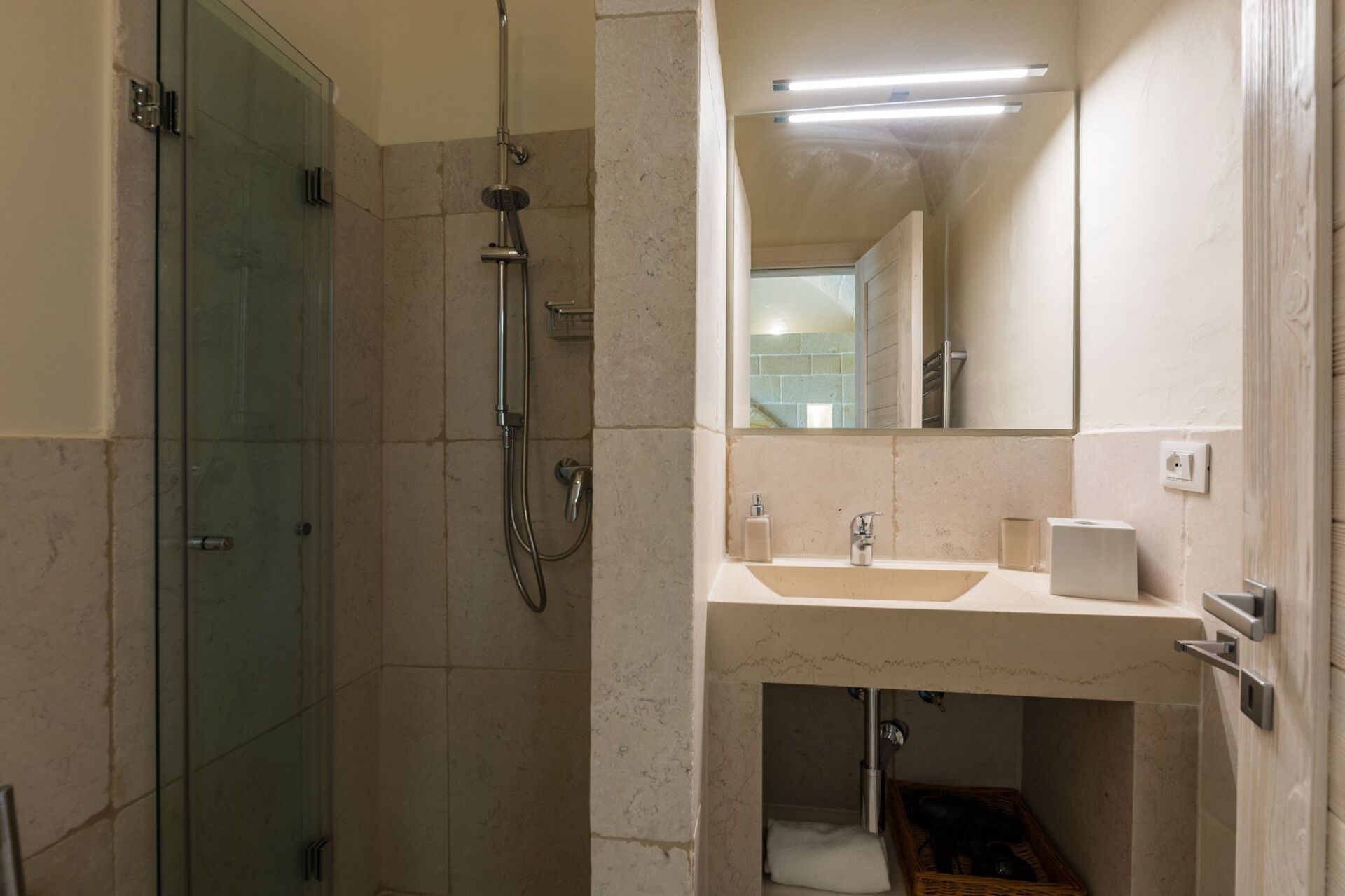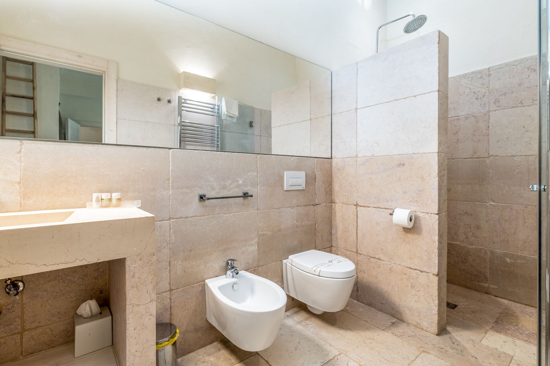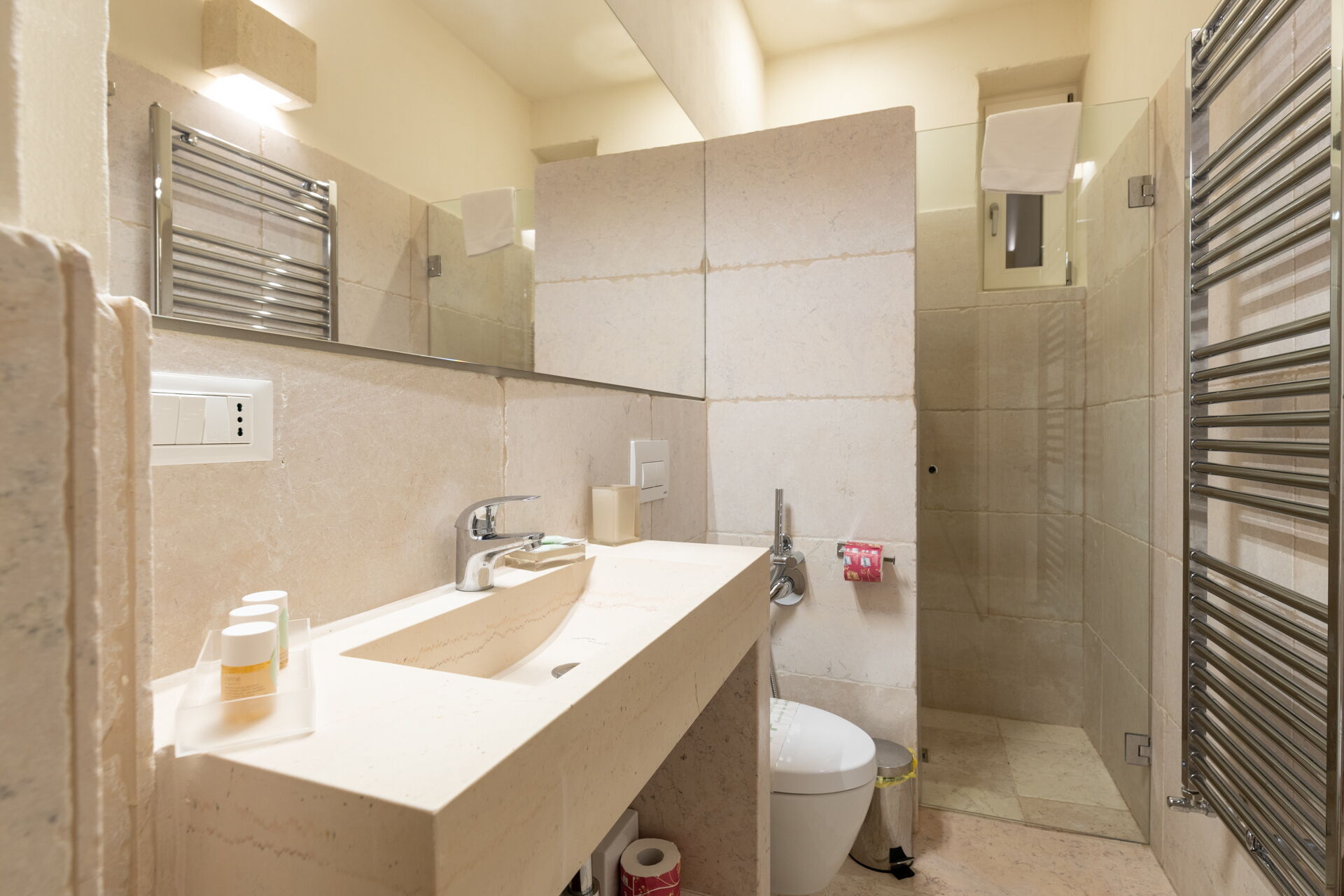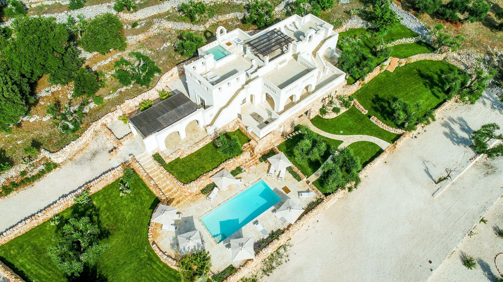 With 7 bedrooms in the majestic main villa, and bedrooms in the adjacent stone trulli, La Residenza- Corte dei Messapi can accommodate up to 16 people. The traditional Apulian-style interiors are an unforgettable mix of stone, arches, muted colors and handcrafted furniture.
