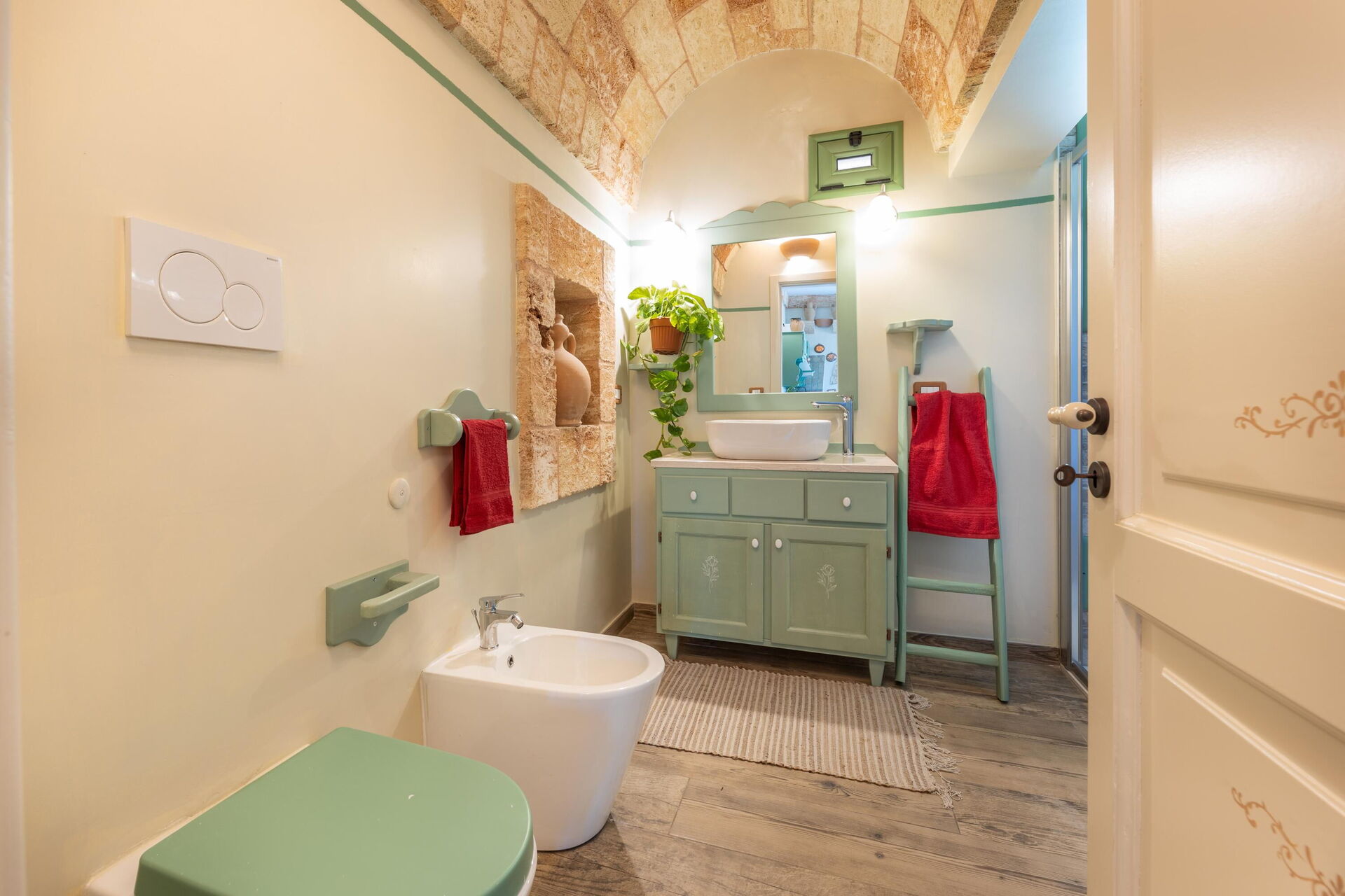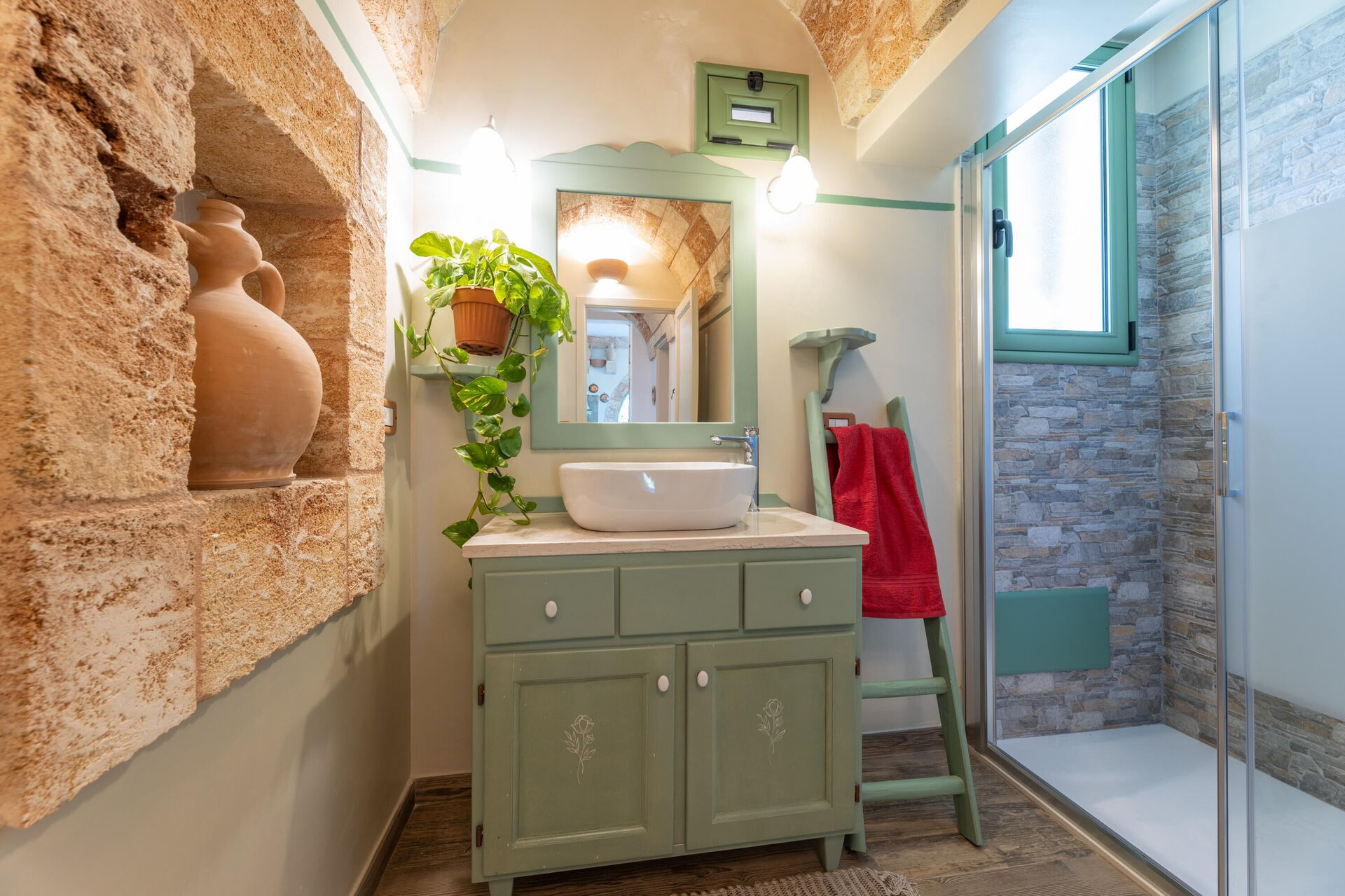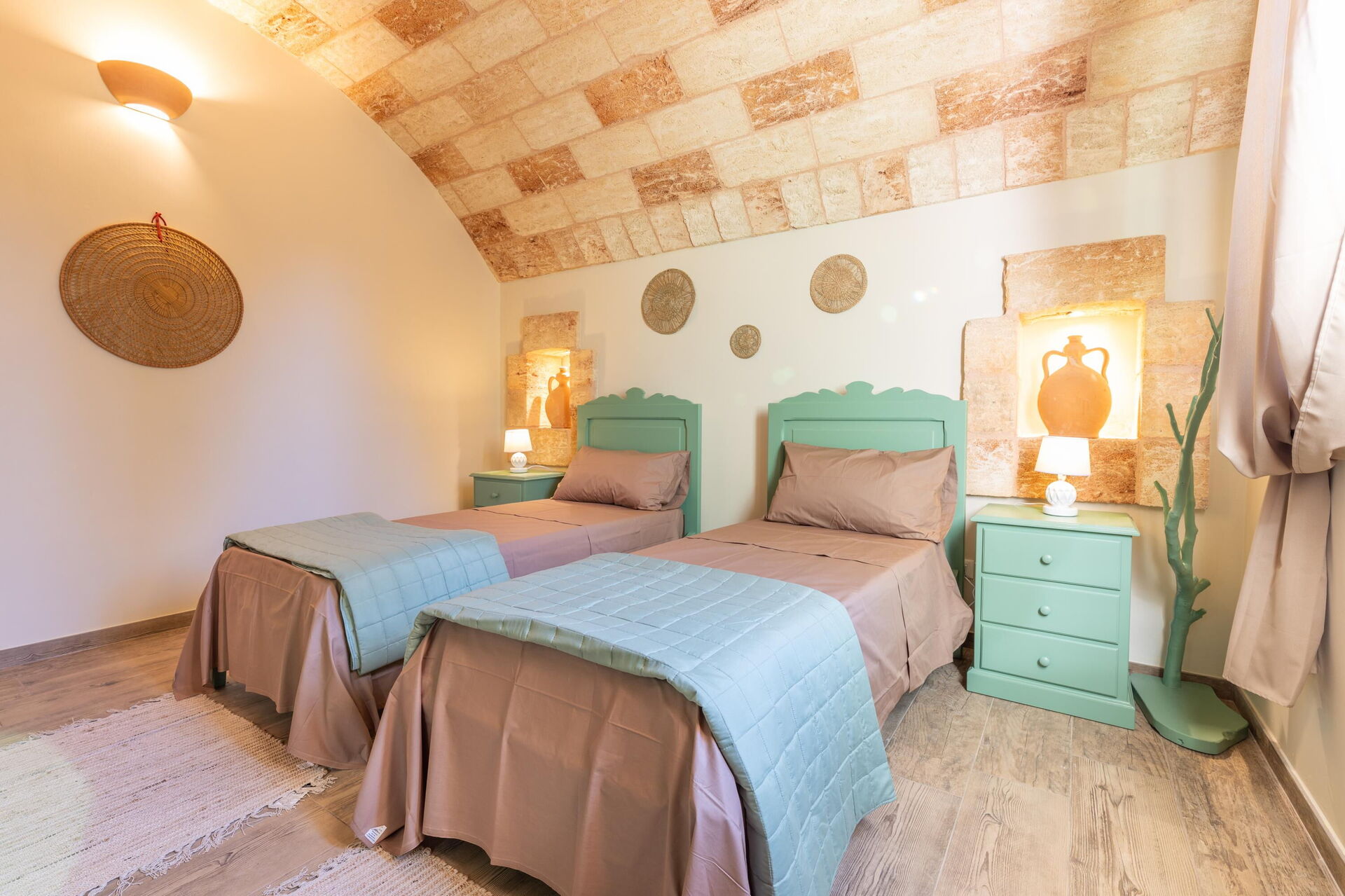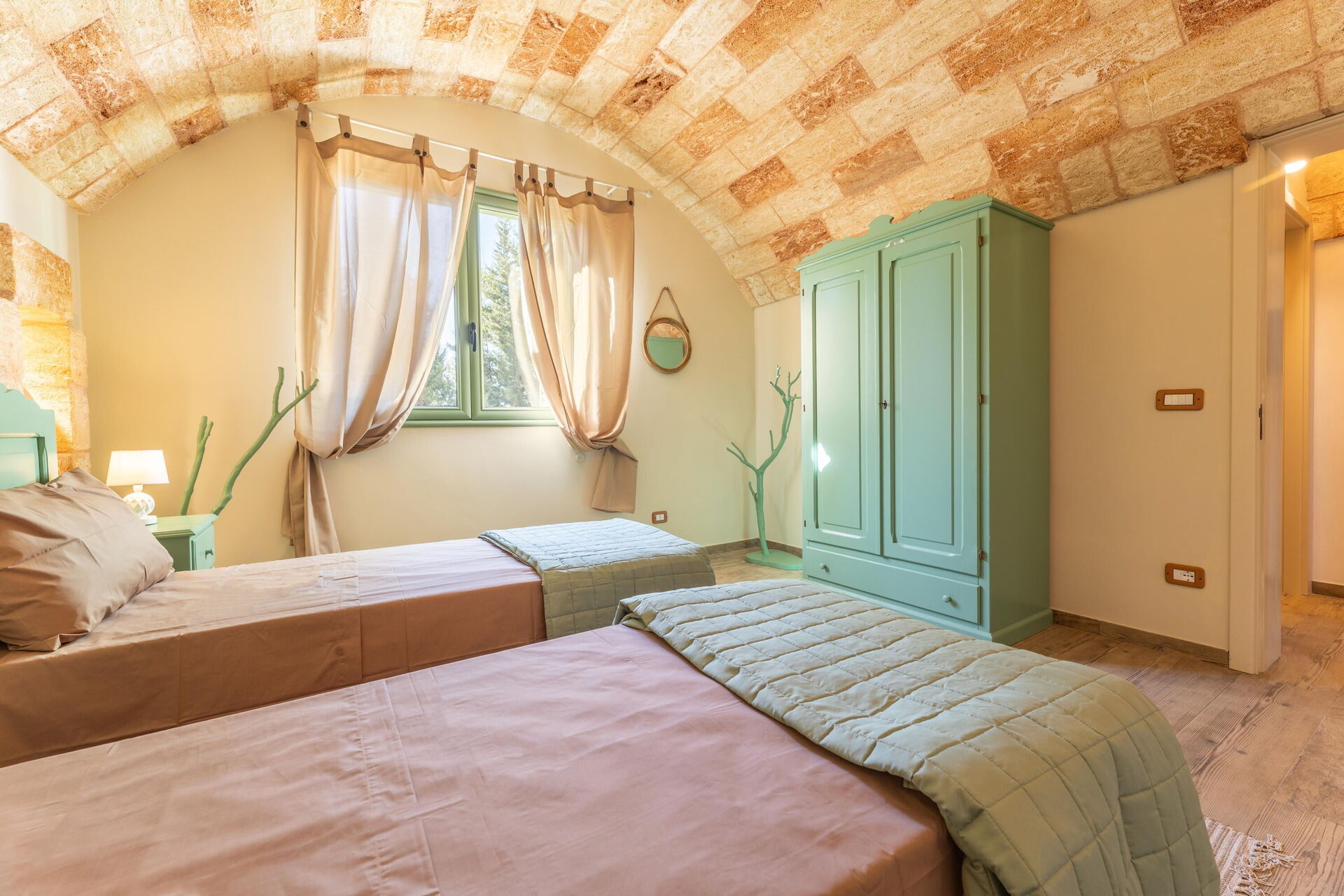 Tastefully furnished, this beautiful vacation house rental in Apulia features vaulted ceilings and exposed traditional tufo bricks in many rooms.