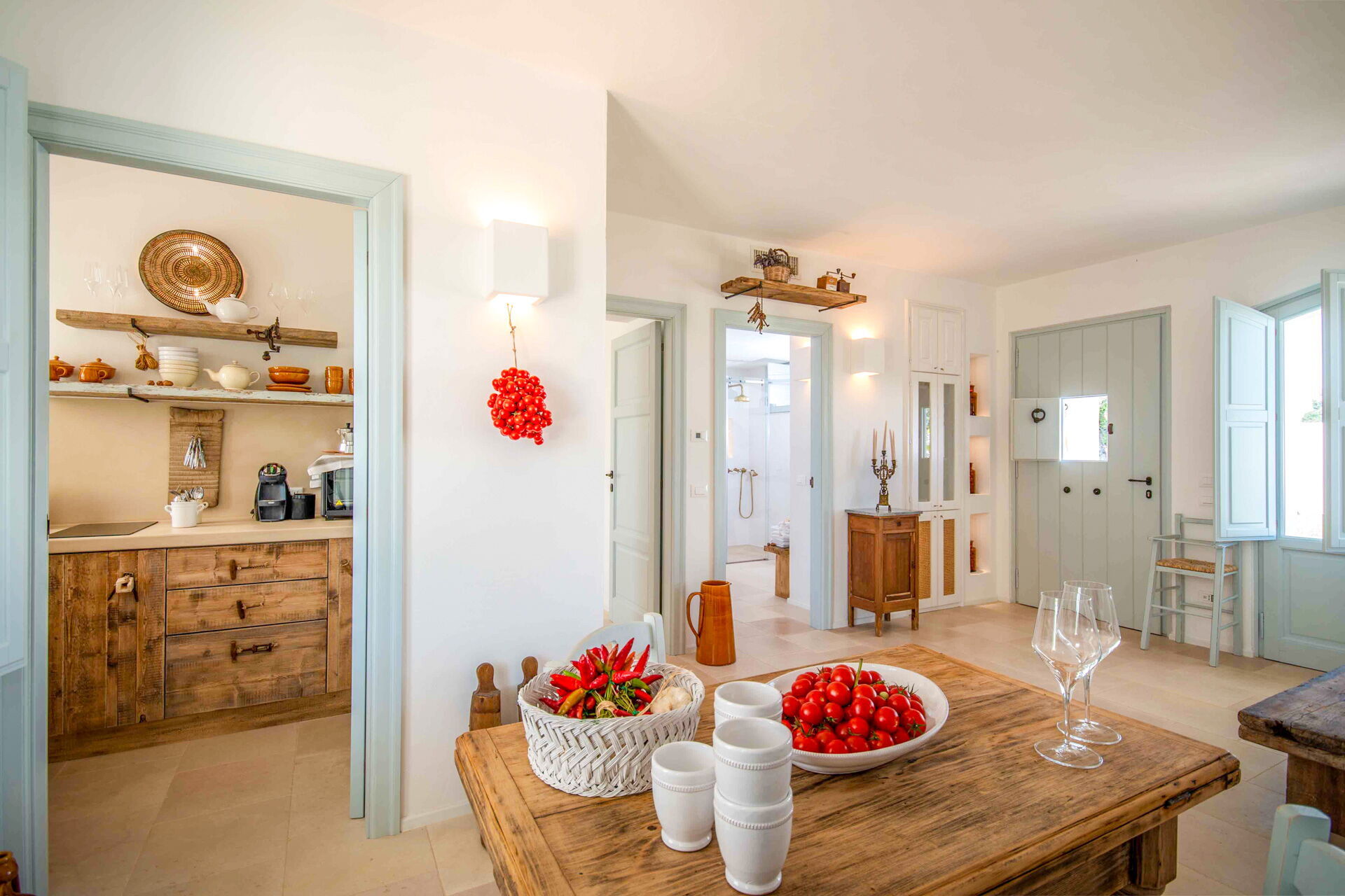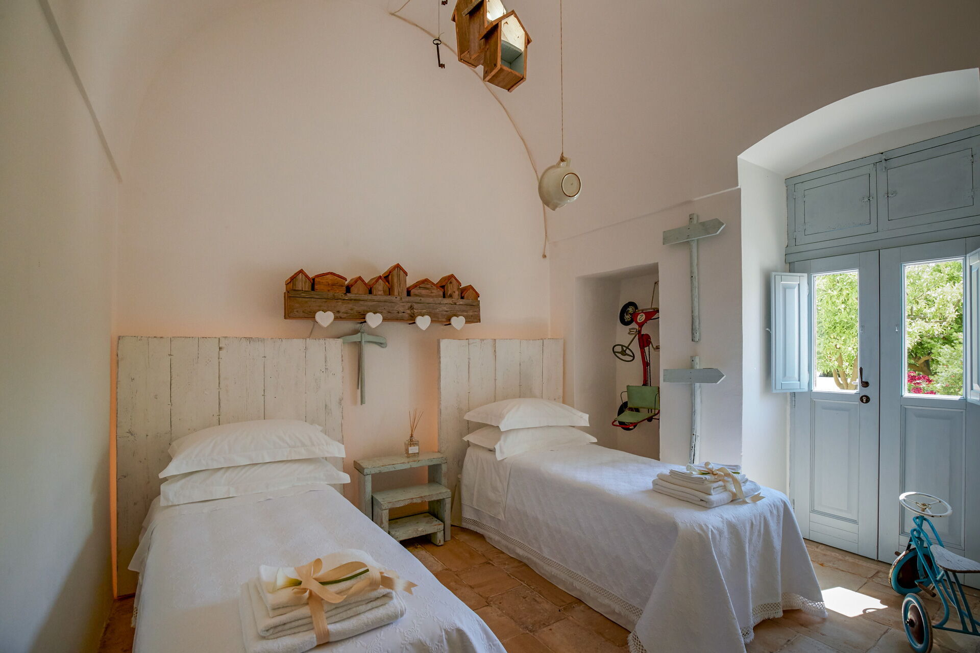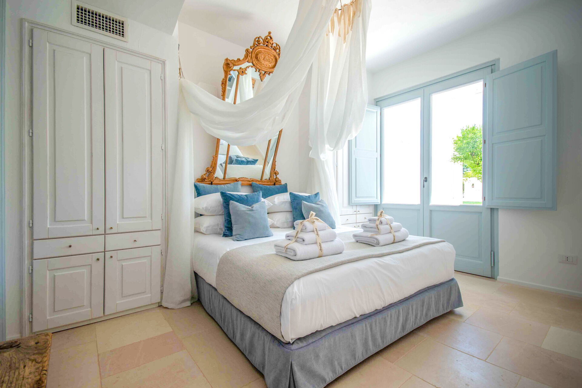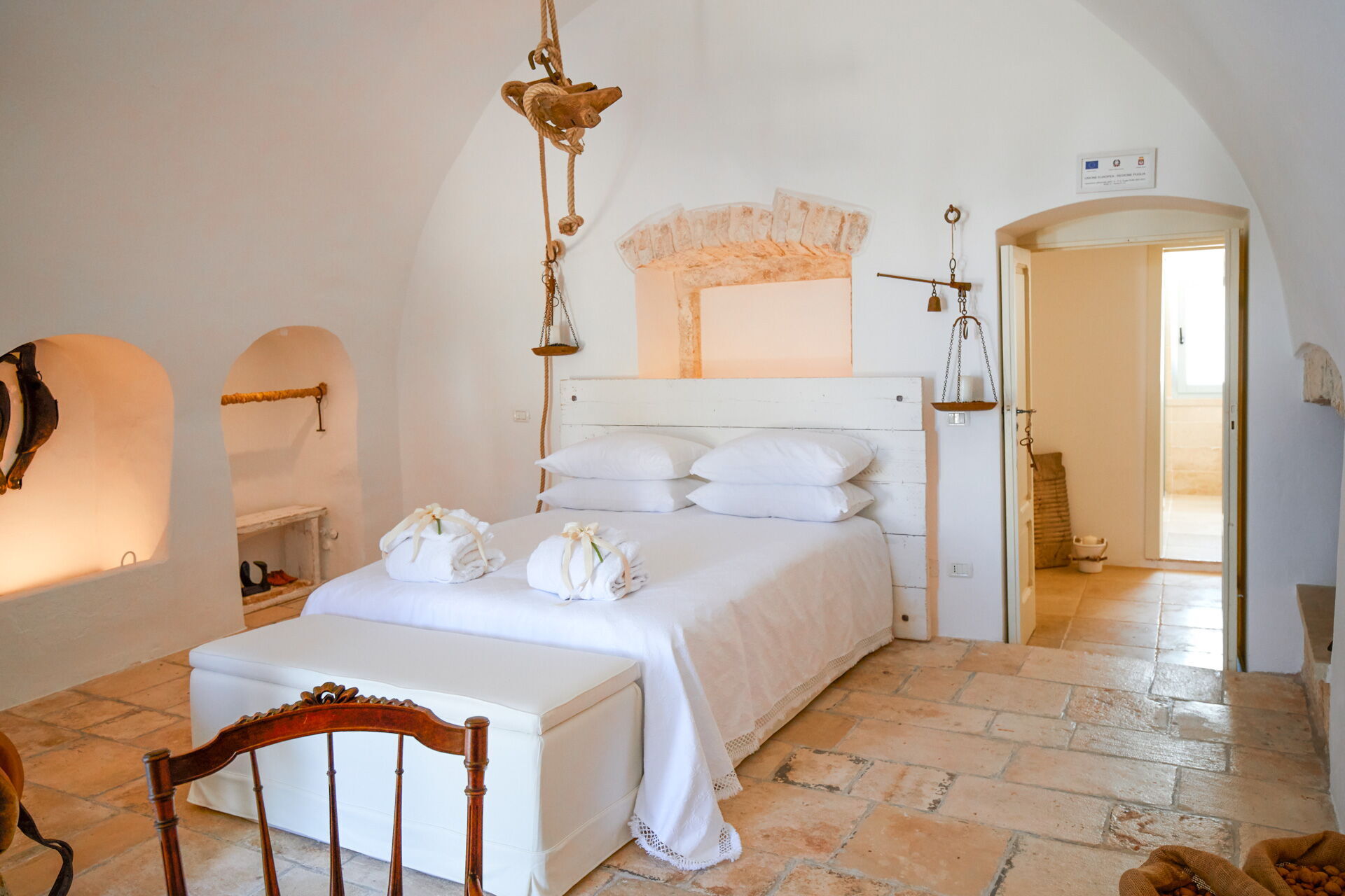 Every room blends traditional Salento characteristics like white, wood, and tufo, with all the amenities guests would expect in a luxury villa rental.