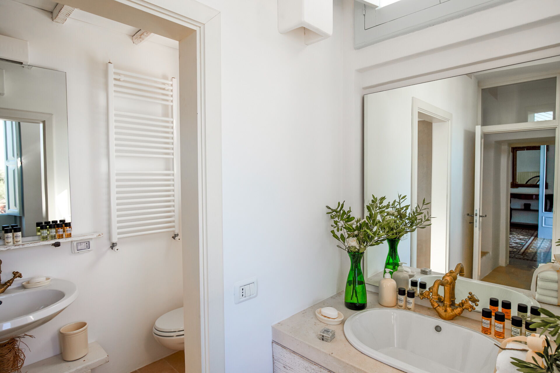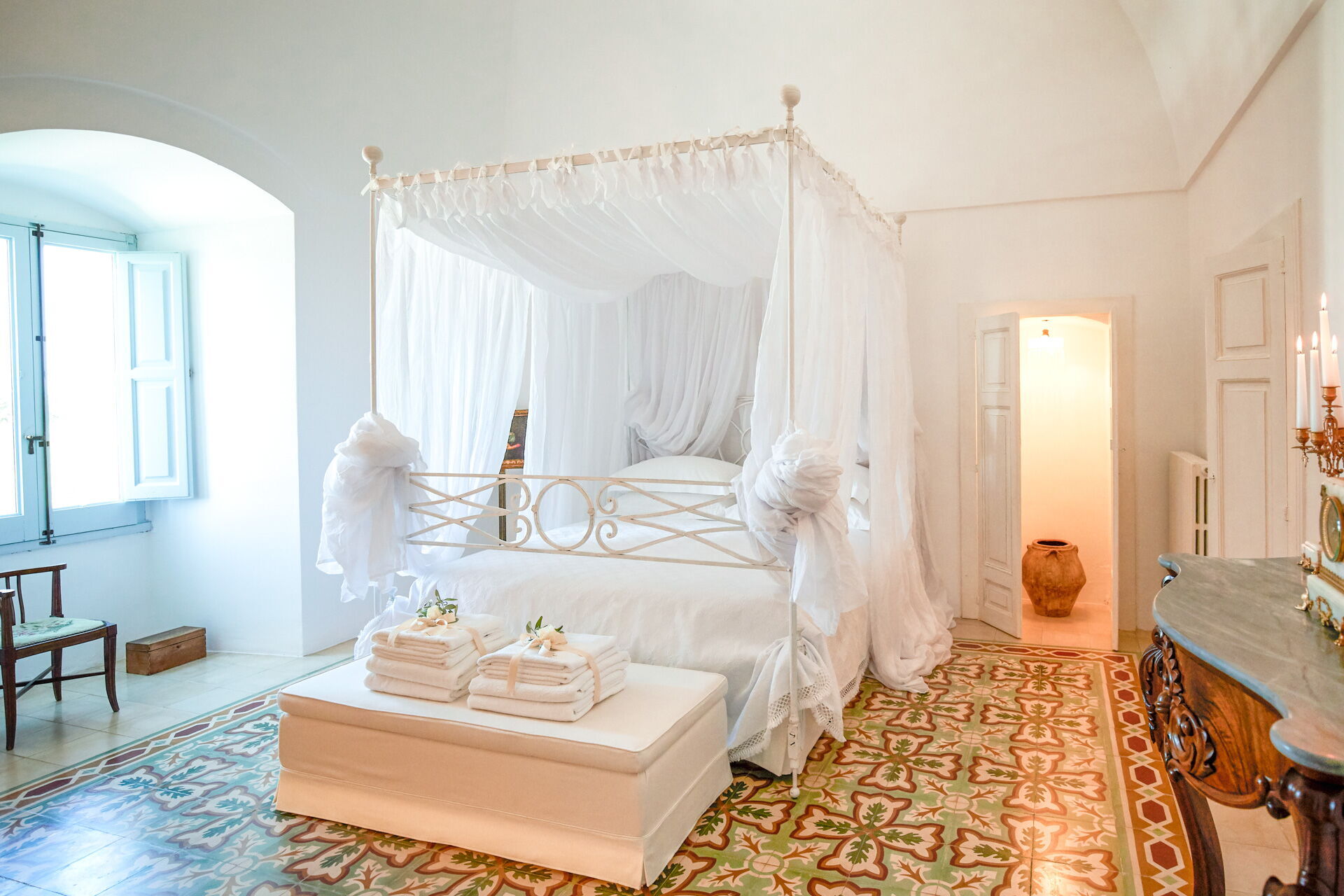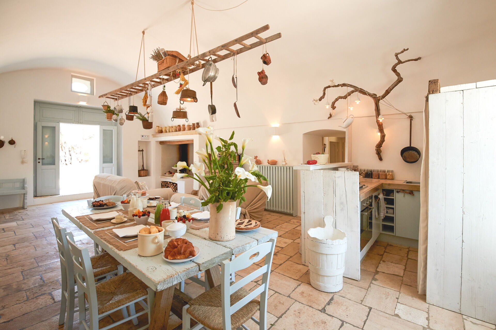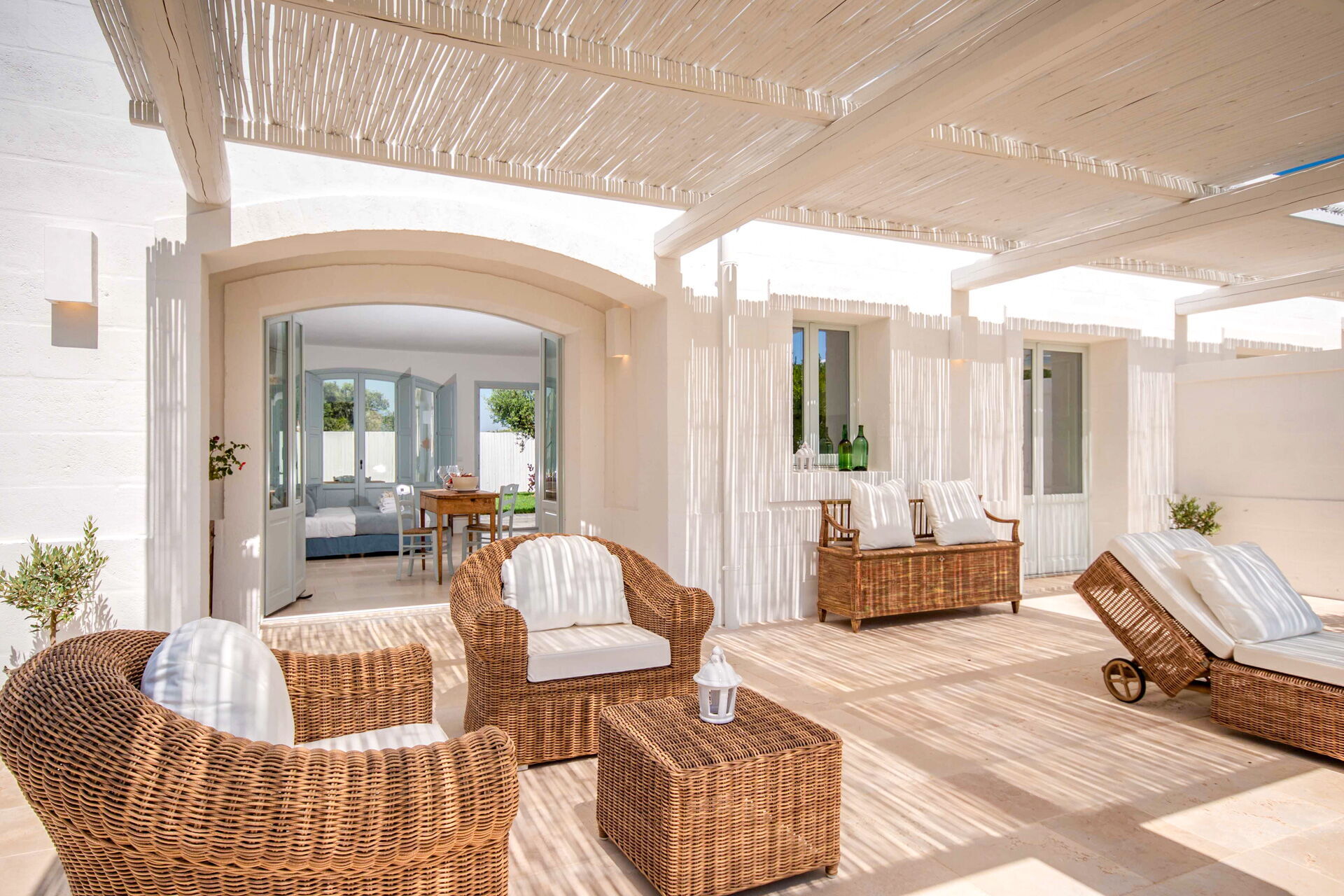 Every room blends traditional Salento characteristics like white, wood, and tufo, with all the amenities guests would expect in a luxury villa rental.