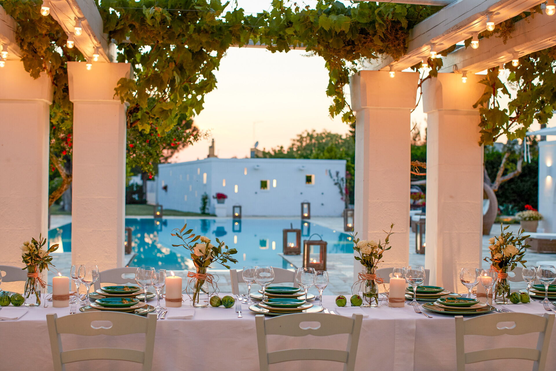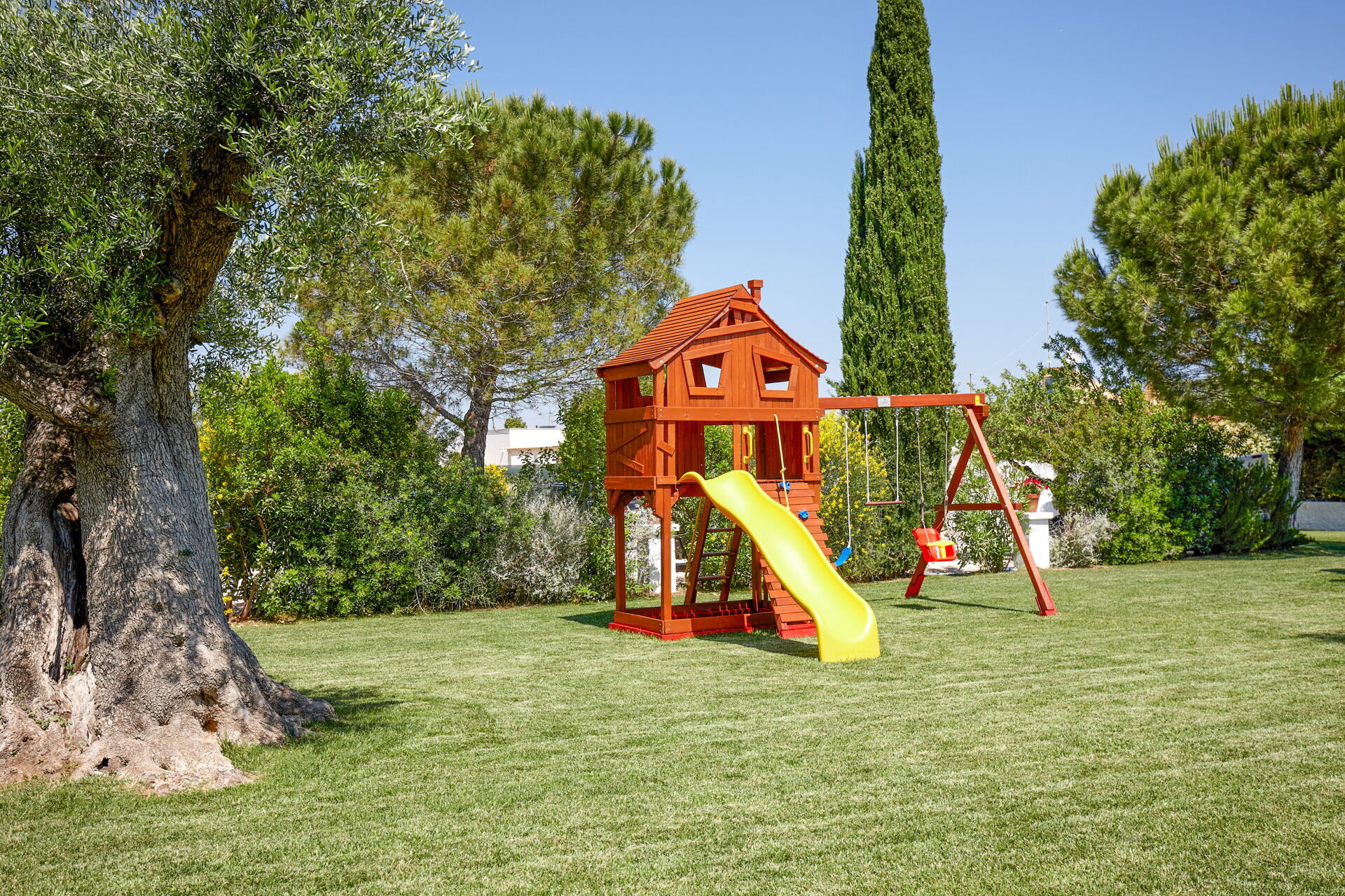 The large garden surrounding the house offers various relaxation areas where you can enjoy the sun and heat of Apulia, as well as spend time together. The outdoor kitchen with a wood burning oven, the large pergola, charming portico, scenic first floor terrace, children’s play area, 2 pools and outdoor jacuzzi will fill every day at Masseria Lamacerase with fun and activities.