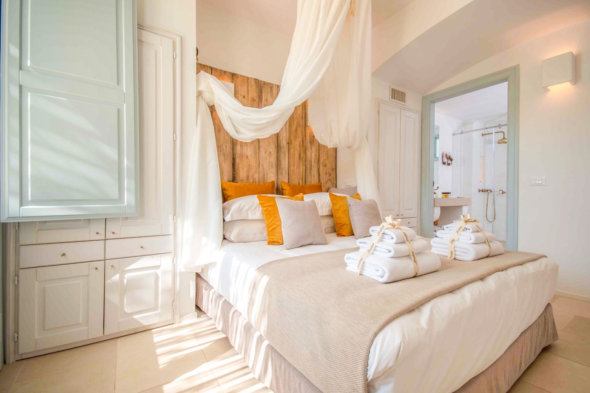 With a total of 8 double bedrooms, the beautiful villa rental can comfortably accommodate up to 16 people. It offers large spaces and plenty of privacy.
