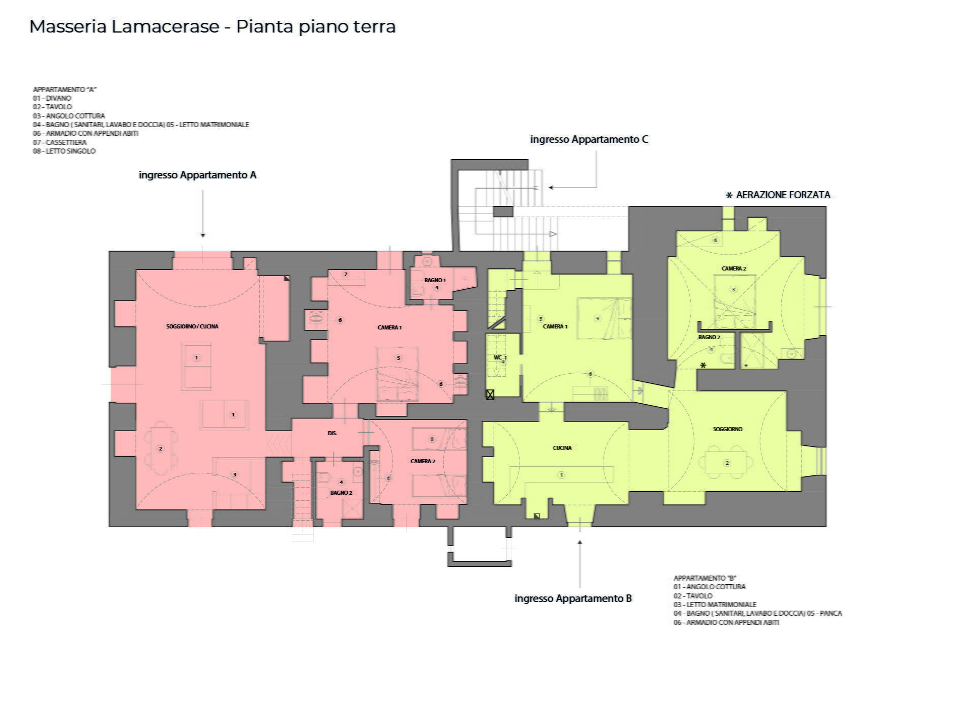 The property is made up of 2 complexes: one with three apartments, and the other with two suites.