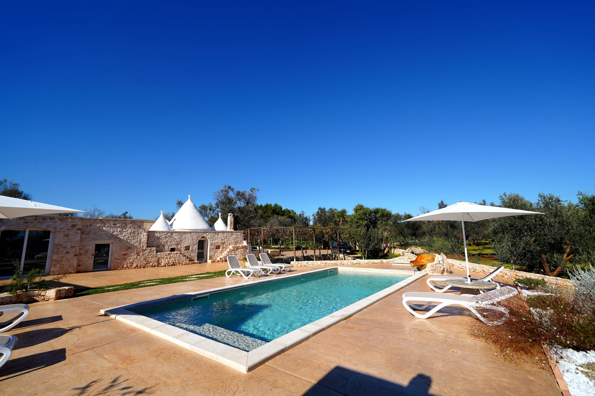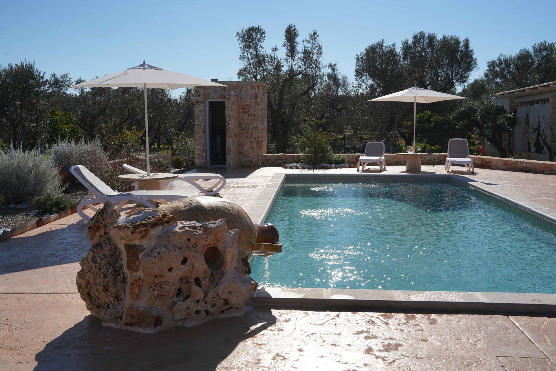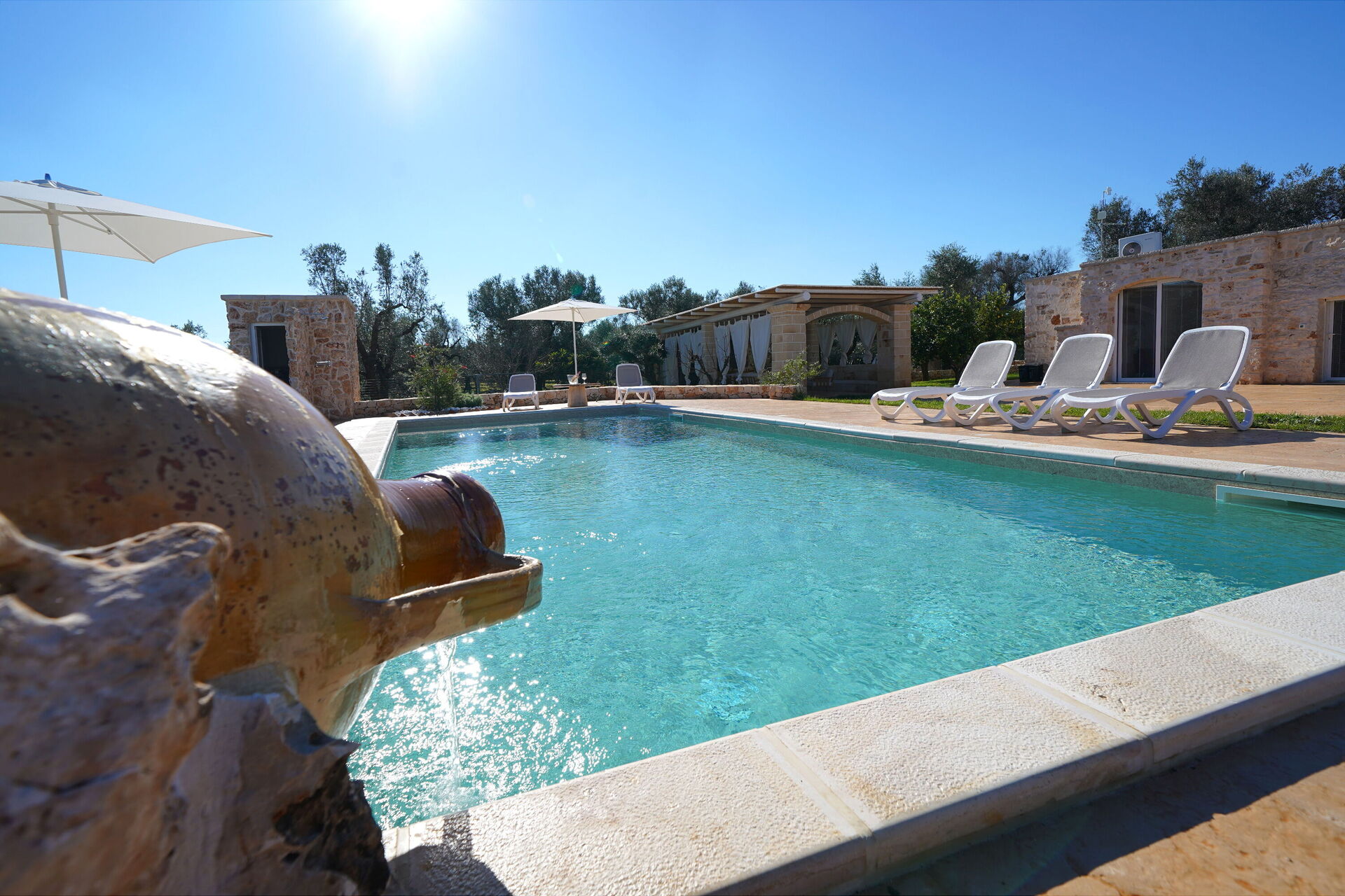 The large private pool is flanked by a sunbathing area with sun loungers: it is the perfect place to relax and cool off with friends and family under the Salento sun.
