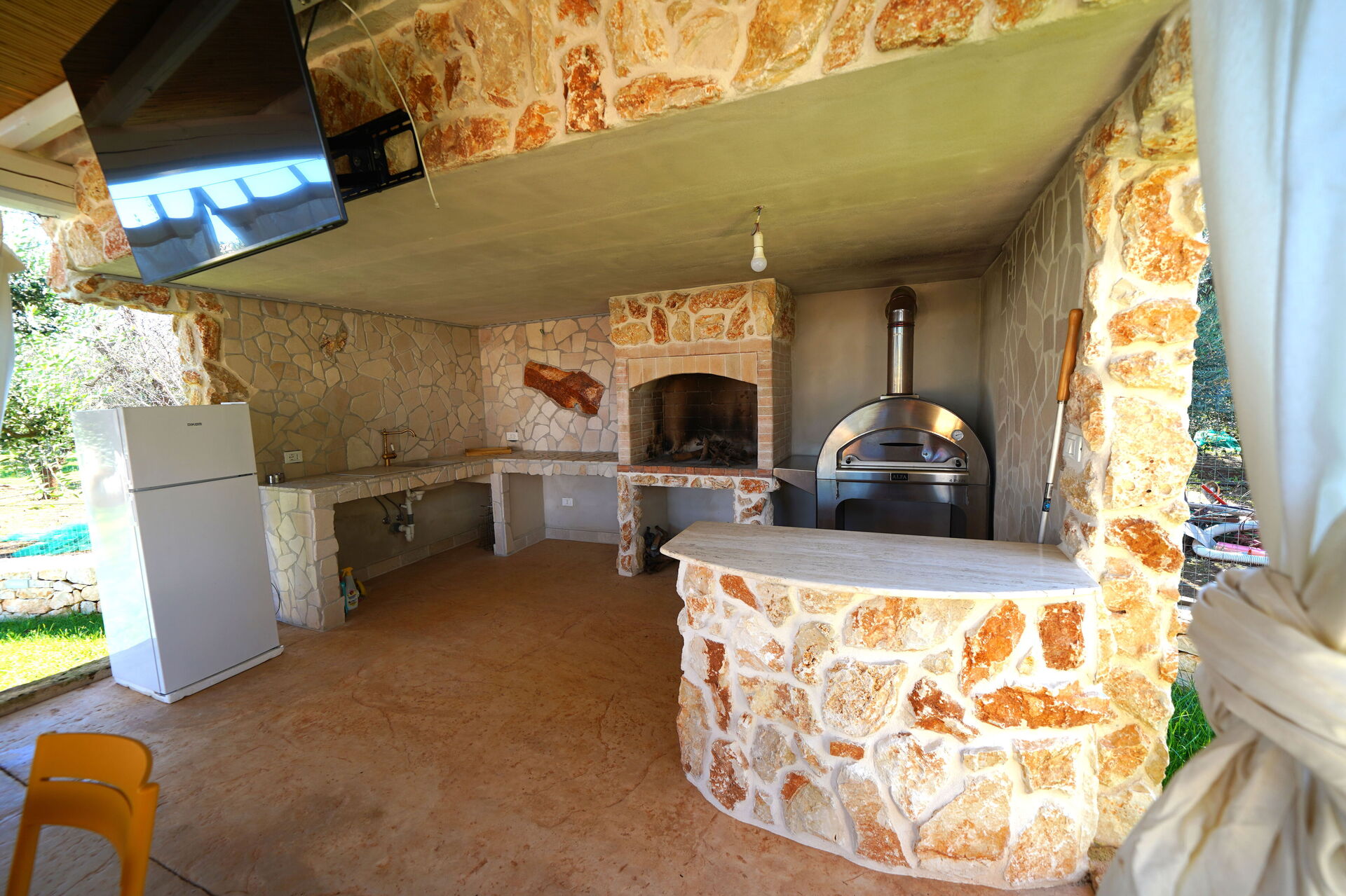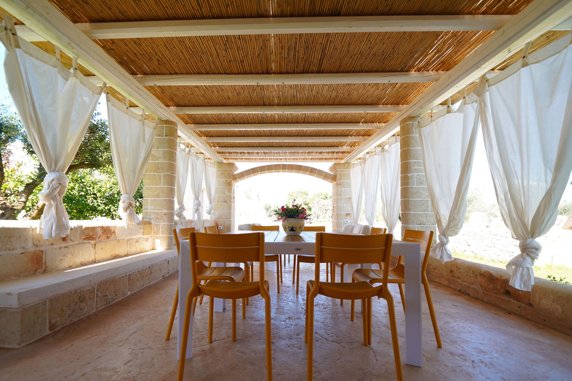 A beautiful veranda furnished with a table, chairs and barbecue is at guests’ disposal: here you can grill and dine outside while taking in the splendid rural landscape and enjoying panoramic views of the Apulian countryside.