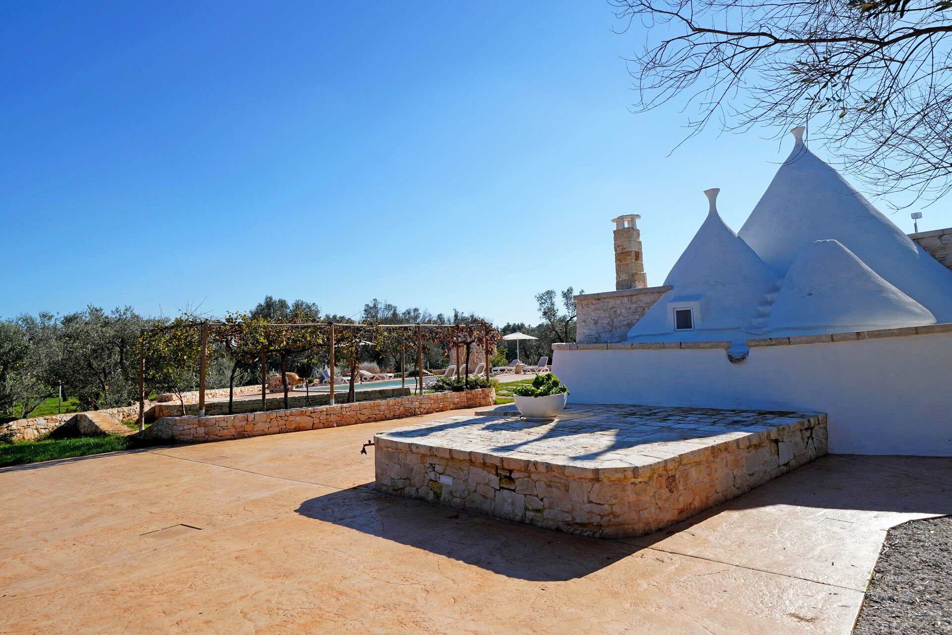 Outside, Trullo Samanta is surrounded by spacious well-tended grounds with fruit and olive trees.