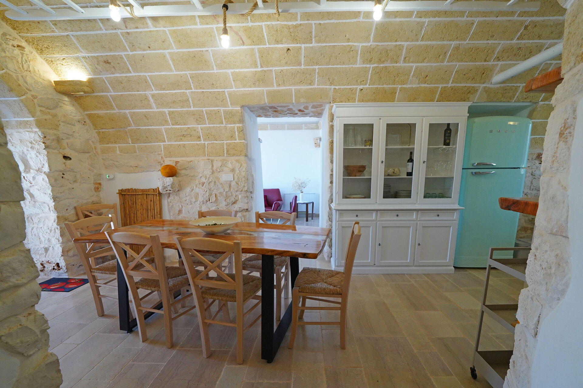 Trullo Samanta is completely independent and has recently been renovated (October 2025): inside, the rental property has been tastefully and simply furnished, to create a modern contrast with the building’s traditional materials like stone and olive wood, which are characteristic of trulli in Salento. The welcoming interiors are equipped with all amenities and 3 bedrooms to accommodate up to 6/7 people.