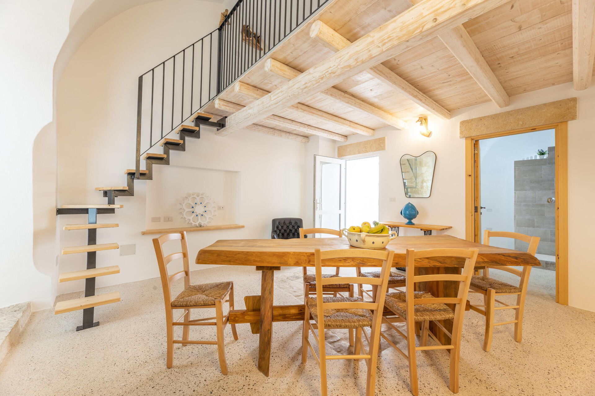 This special, recently renovated vacation property can accommodate up to 6 people in 3 elegantly furnished double bedrooms. The interiors of this vacation rental in Puglia feature wood and stone, traditional Salento materials. The white color, vaulted ceilings, and stones on the wall will make you feel like you’re in a traditional country house, even though you’re right in the town center.