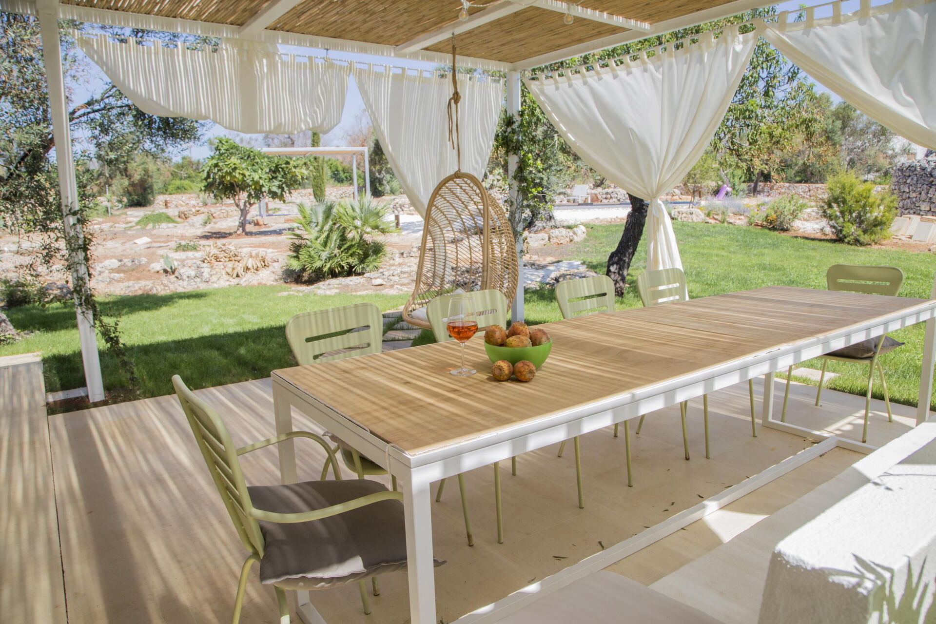 This characteristic Apulian property features large outdoor spaces, a private pool and dry-stone walls. In the barbecue area and on the veranda furnished with table and chairs, enjoy delicious dinners with friends and family, and relax in the peacefulness that envelops the property.