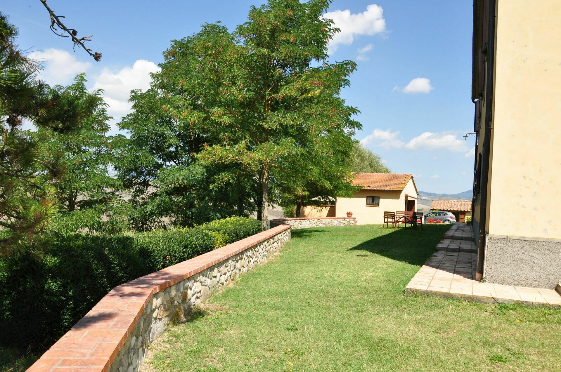 The apartment is a bit dark, but the garden is large and surrounded by beautiful nature with wonderful views. The best thing is the swimming pool!