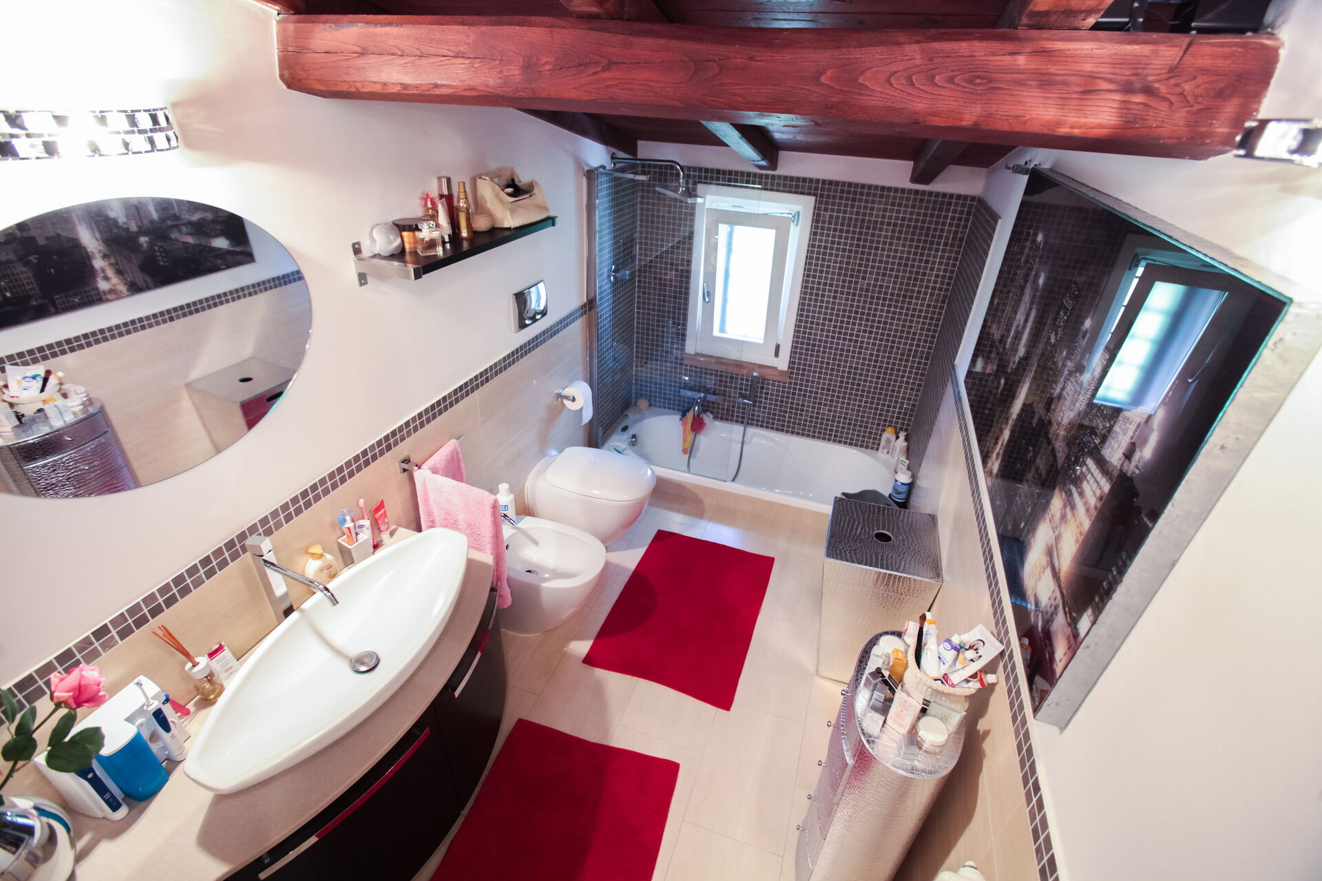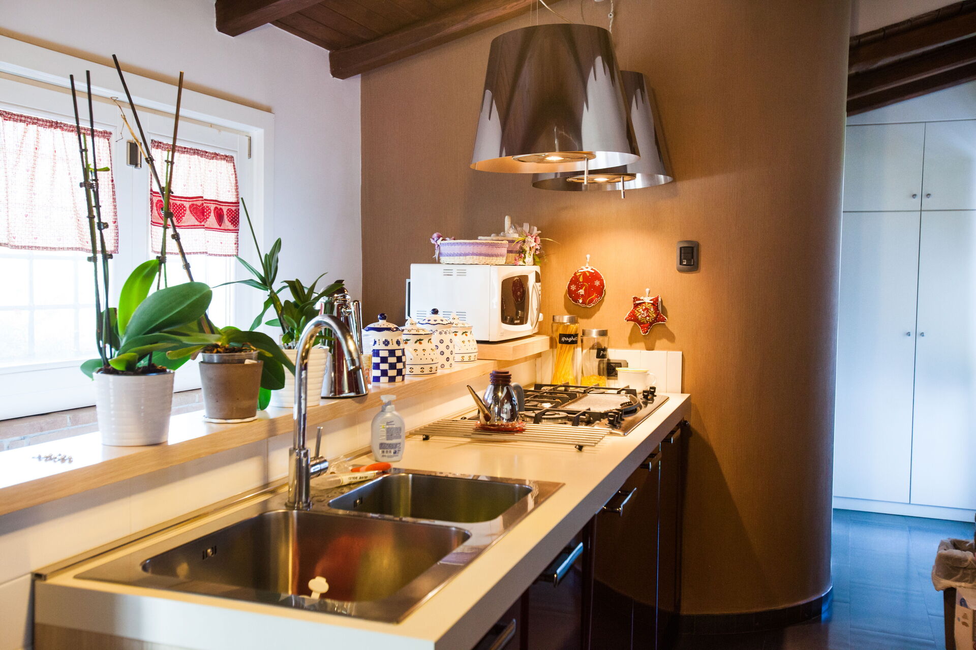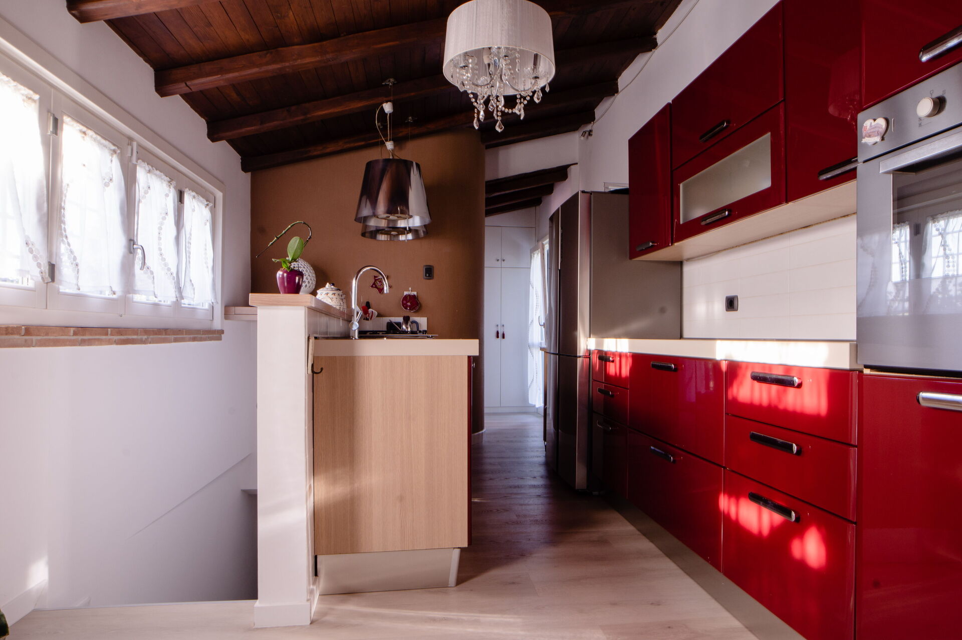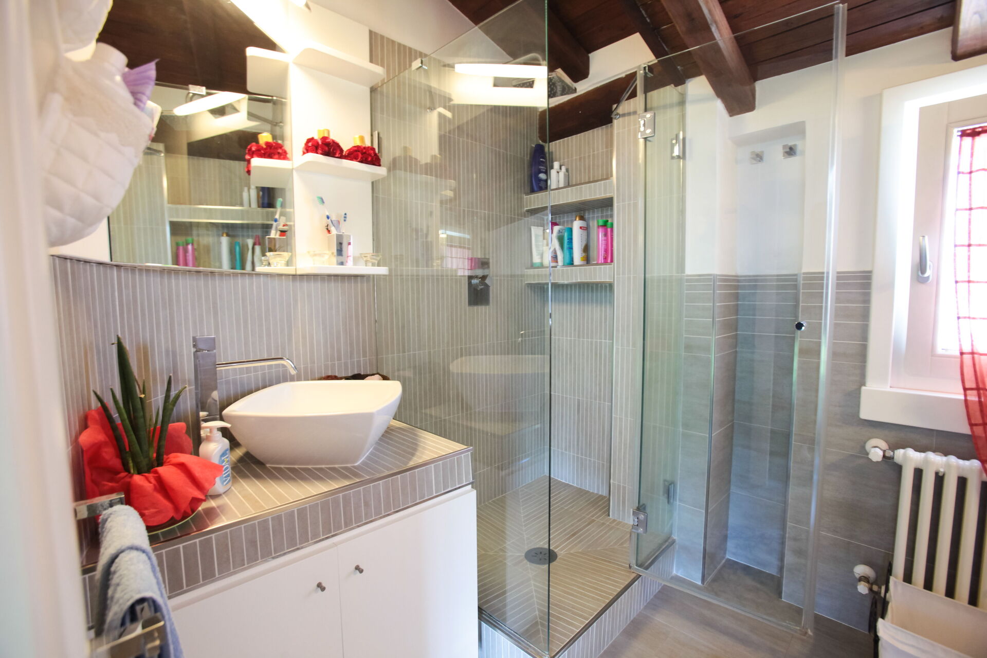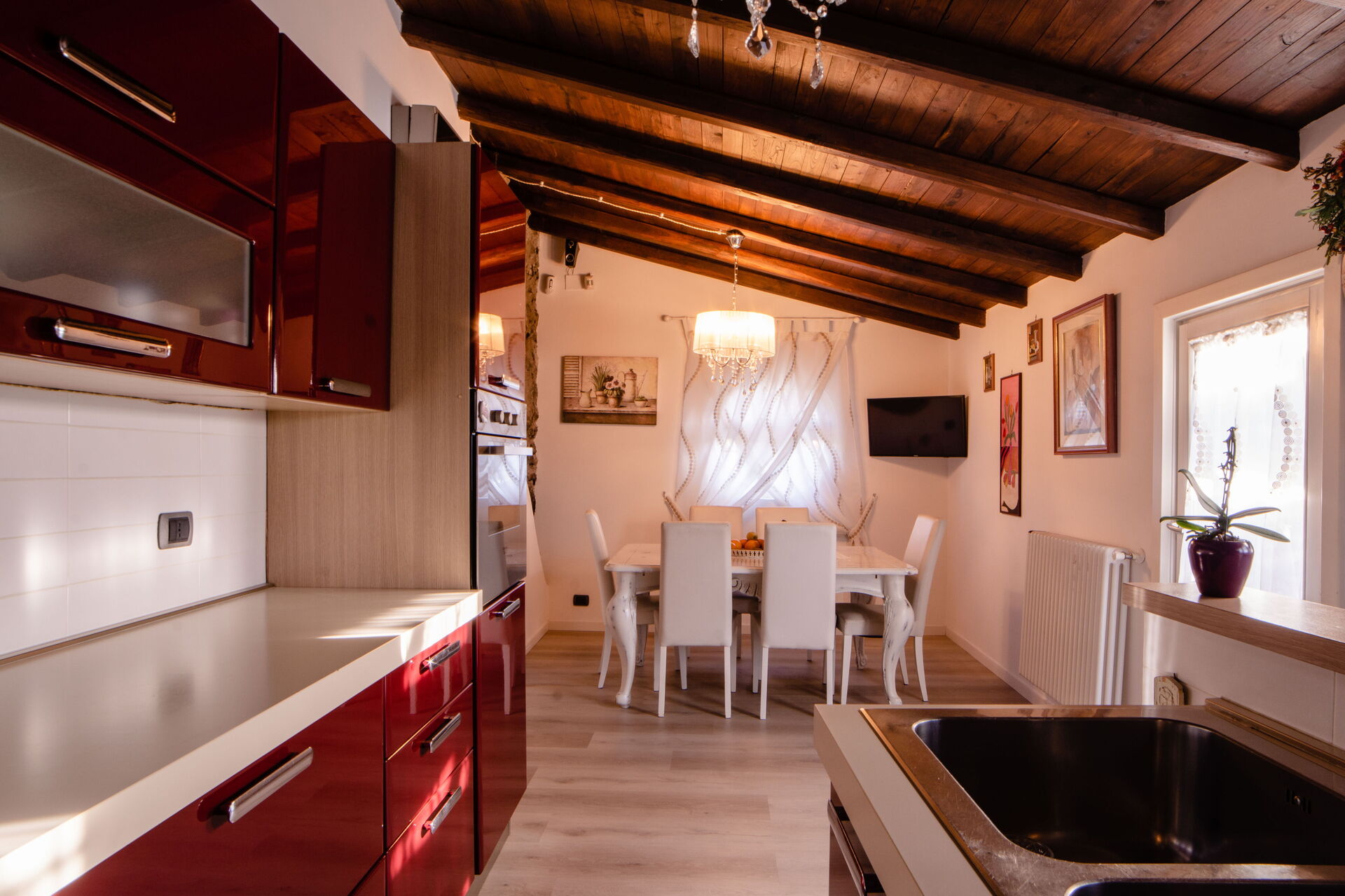 Ground floor: dining area with kitchen (cooktop, oven, refrigerator, freezer, dishwasher, microwave, toaster, espresso coffee maker) and garden access, bathroom with shower.