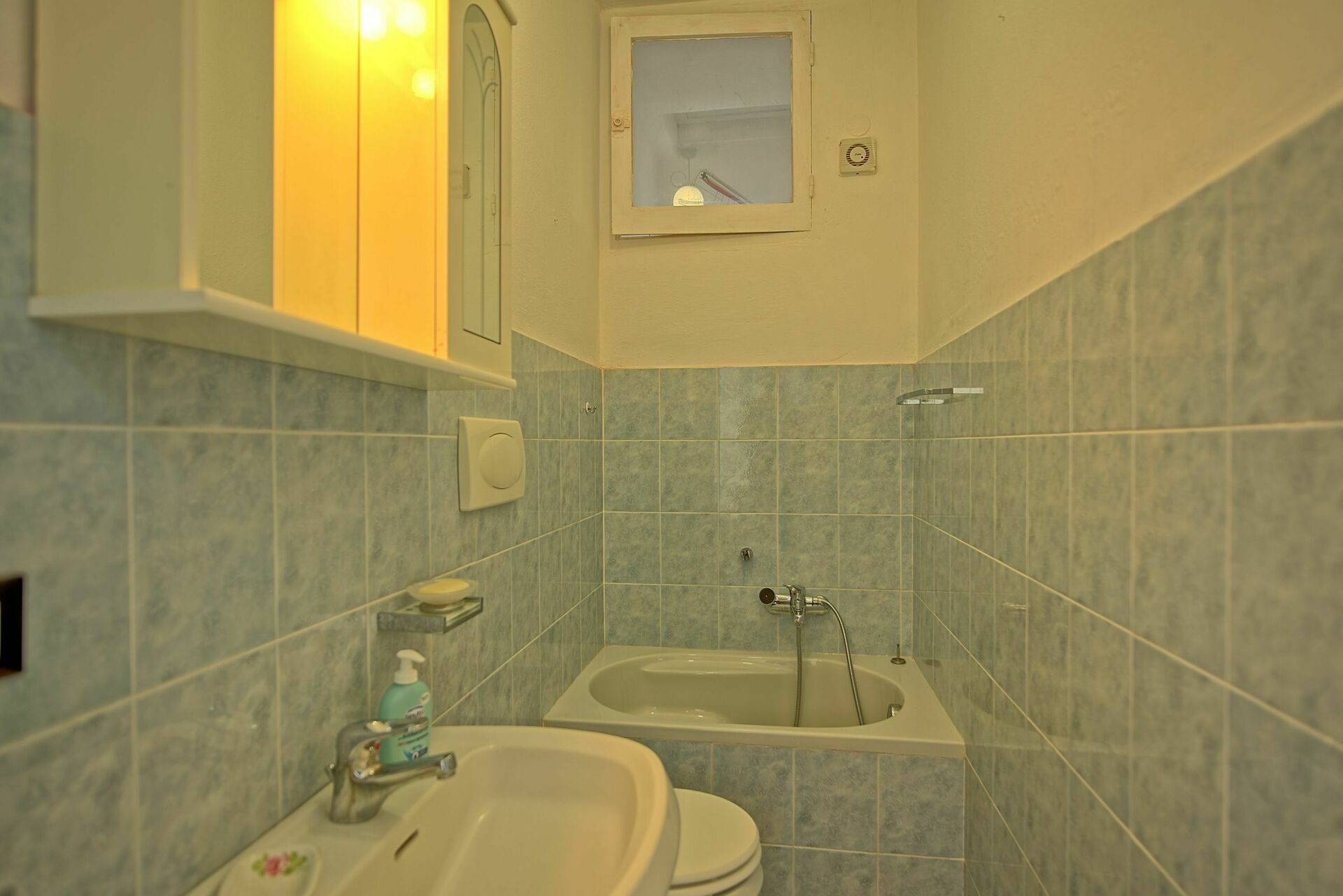 Ground floor: entrance onto the living area (TV) with double sofa bed and dining area with kitchen corner (oven, freezer, microwave, dishwasher, 4 burners), bathroom with half bathtub (without bidet), double bedroom (air conditioning), hallway with washing machine, bathroom with shower, double bedroom (air conditioning).