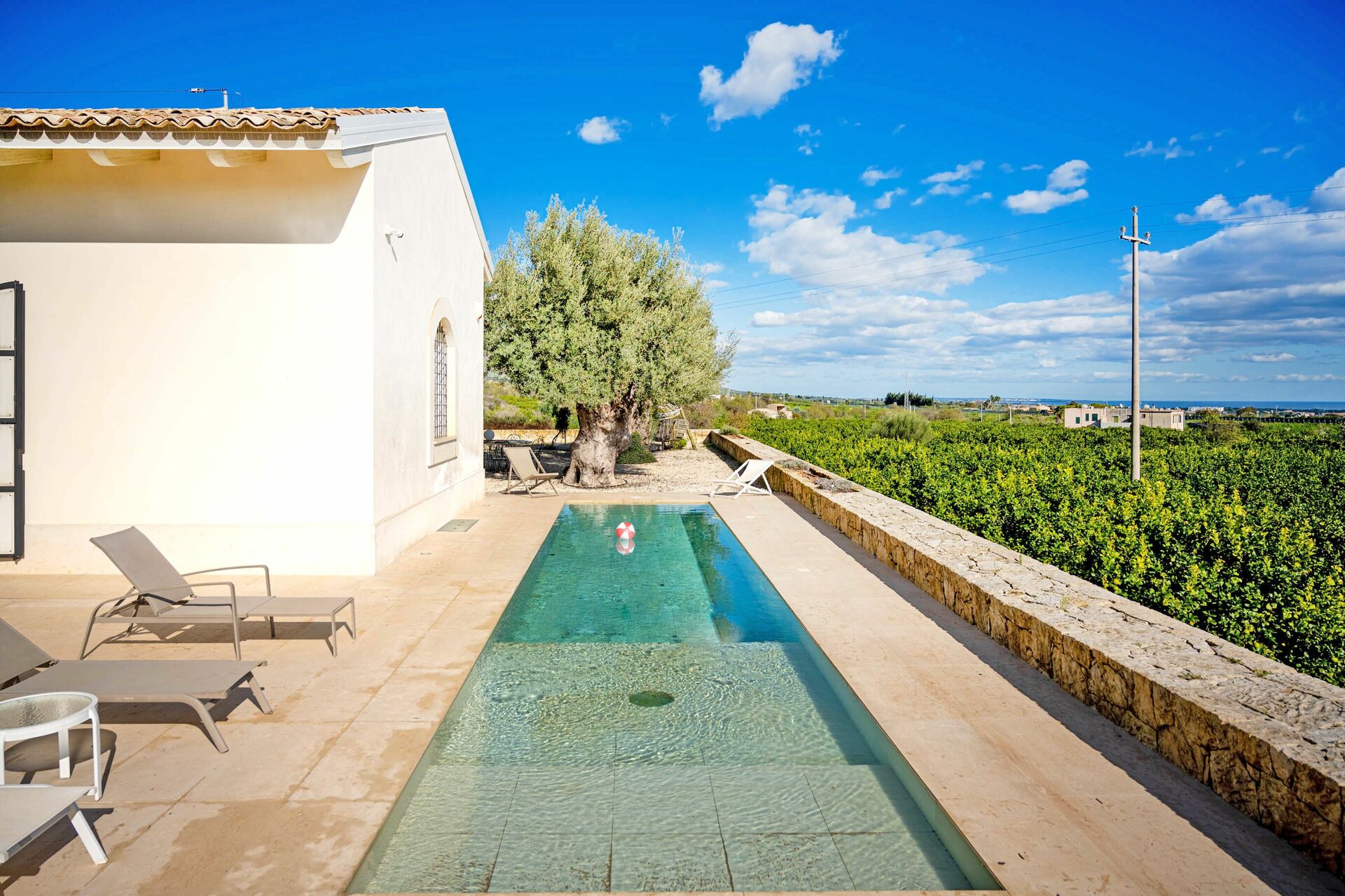 Beautiful, modern, spacious villa set amongst the citrus trees. The pool is lovely and big enough to relax and splash around in. Not a lot in the immediate vicinity but only 15 min drive from Noto.