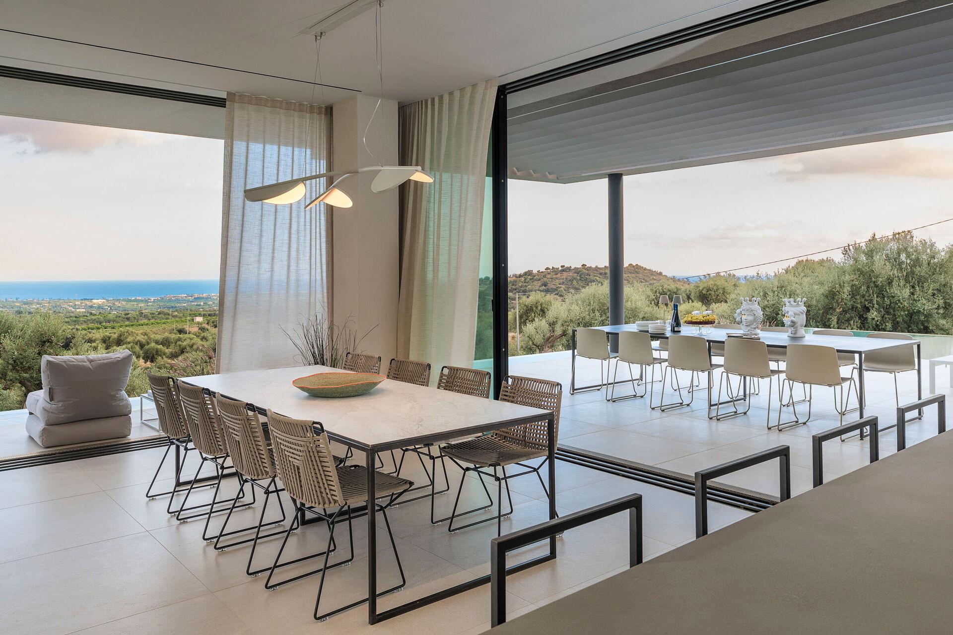 Modern and luxurious, this exclusive villa sits in a scenic spot with breathtaking panoramic sea views from the pool, large terraces and garden.