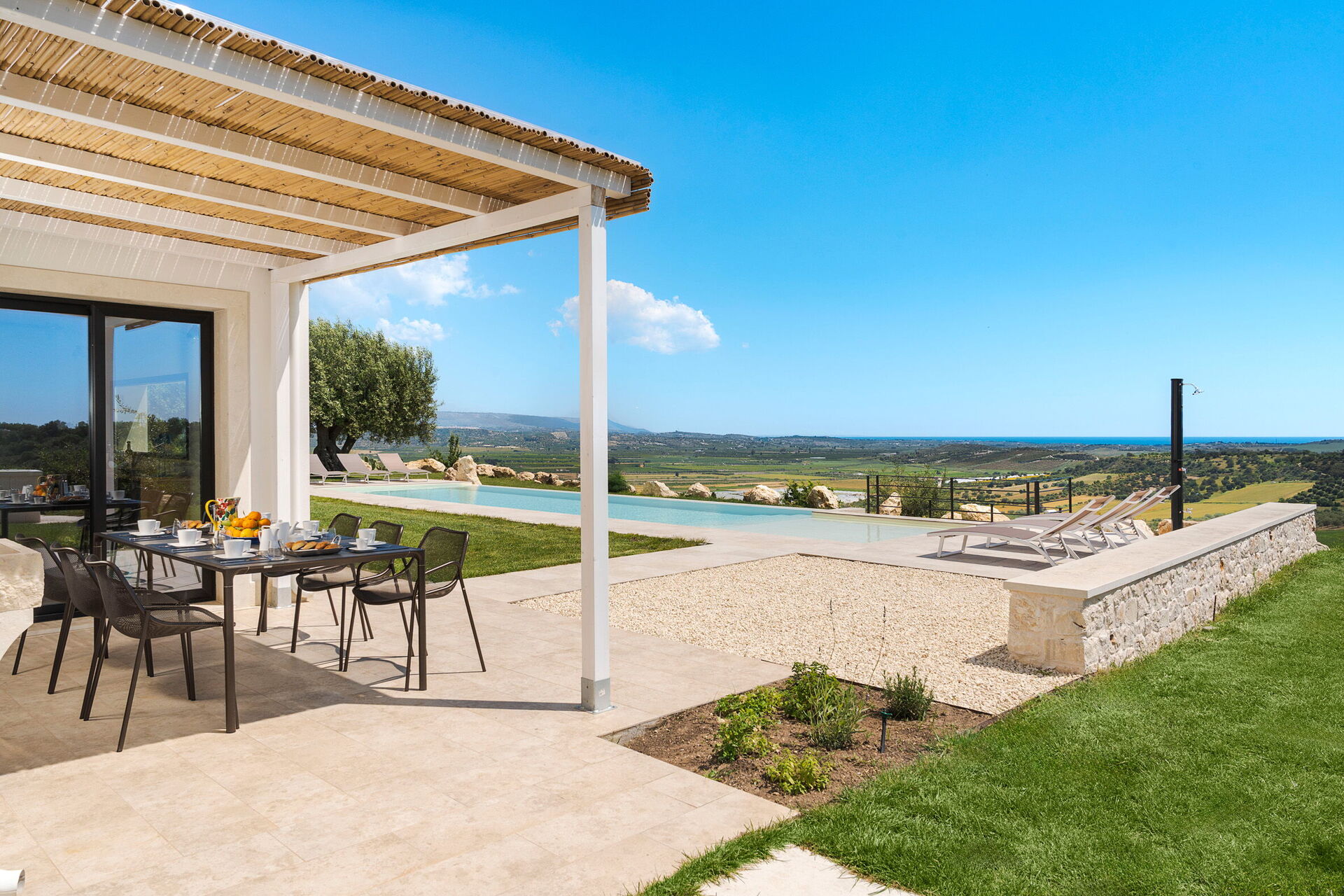 This beautiful vacation villa in Sicily has recently been renovated and offers welcoming, modern interiors outfitted with all amenities.