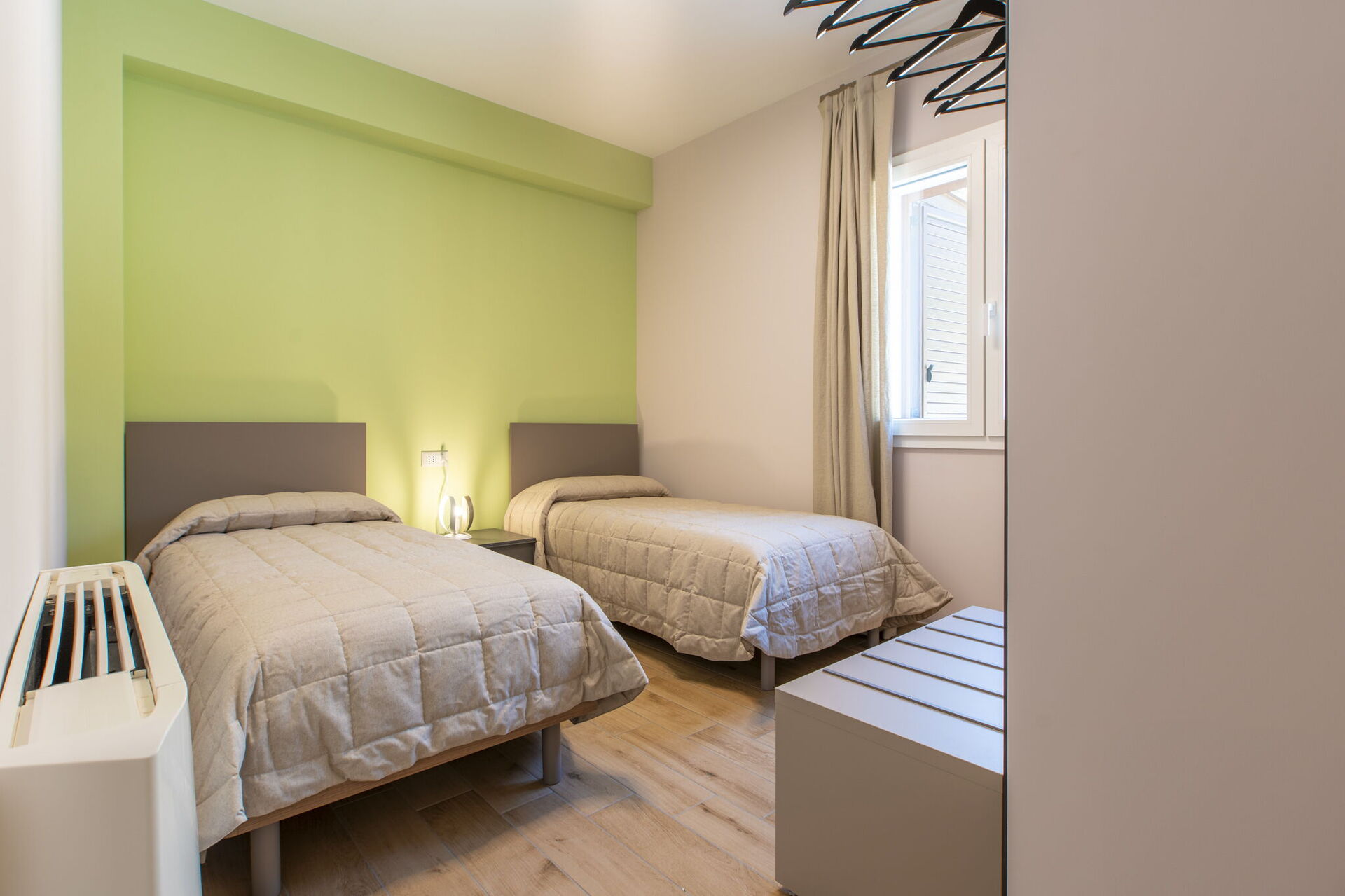 Ground floor : large living room (smart tv) with dining area, kitchen (cooktop, electric oven, refrigerator, freezer, dishwasher, microwave, toaster, espresso coffee maker), 2 double bedrooms, each with a private bathroom with shower, bedroom with 2 single beds, bathroom with shower.