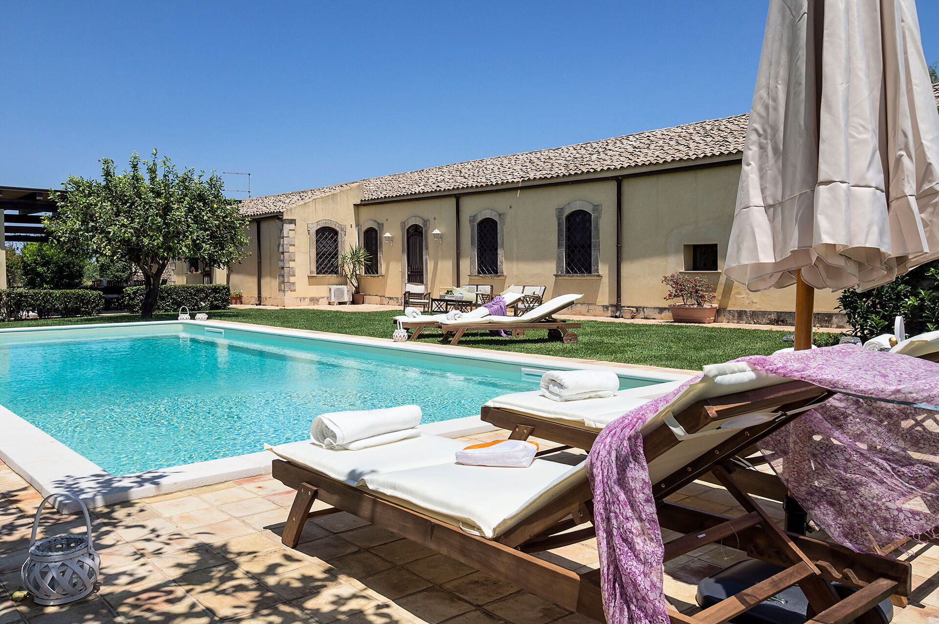 Don Salvatore is a recently renovated centuries-old residence nestled in a splendid garden lush with citrus plants. For a one-of-a-kind vacation in Sicily, there is a marvelous pool and a large, furnished terrace for dining outside.