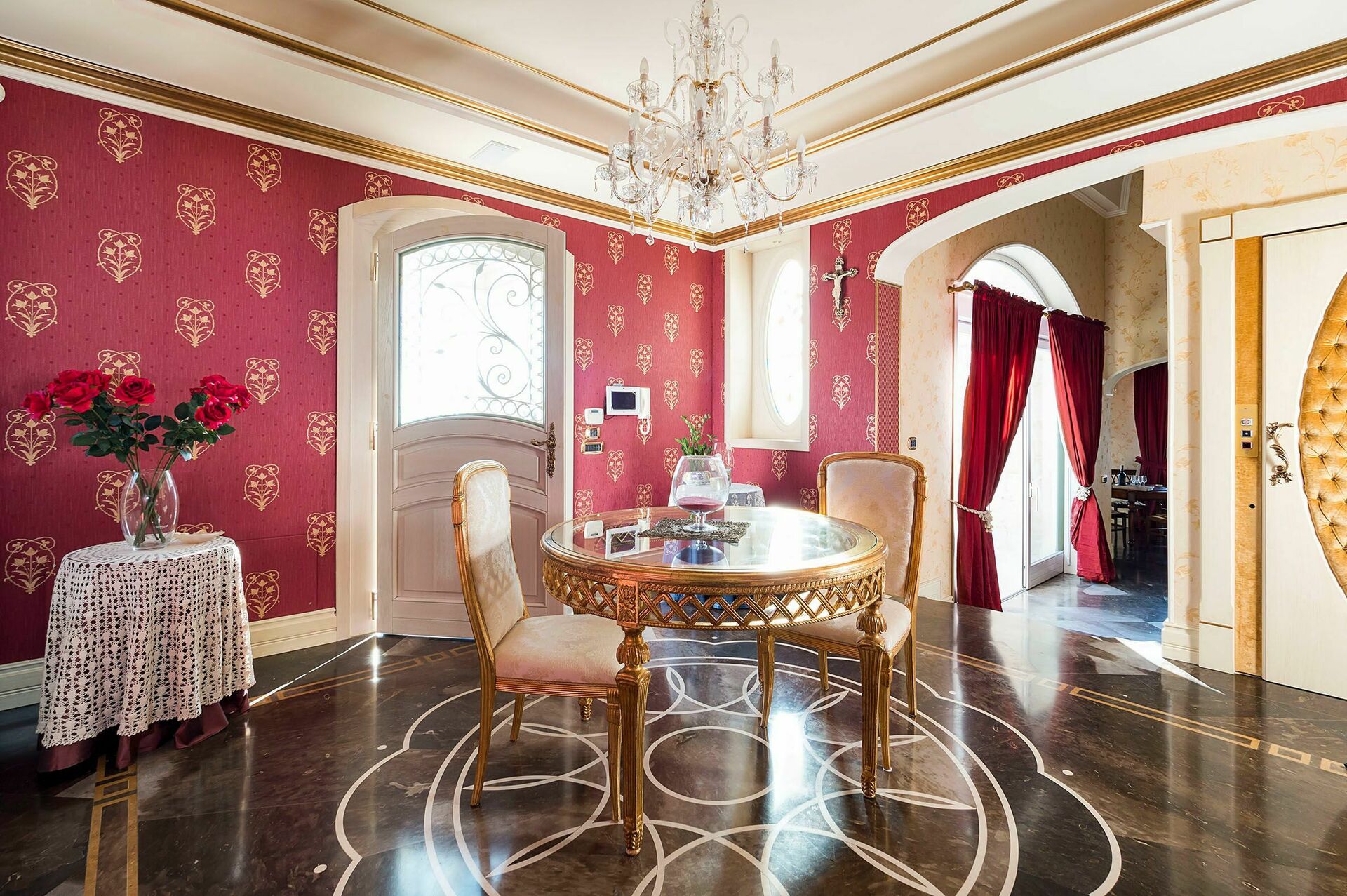 The luxurious rooms with matching fabrics are fitted with all modern conveniences, such as air conditioning, internet Wi-Fi, satellite TV, Hi-Fi with background music system, wood oven, washing machine and dishwasher.