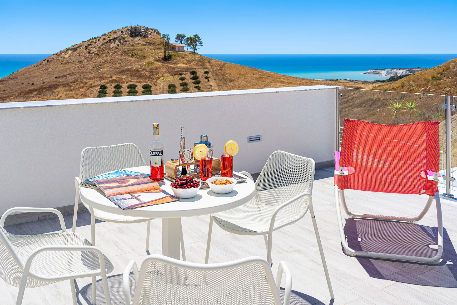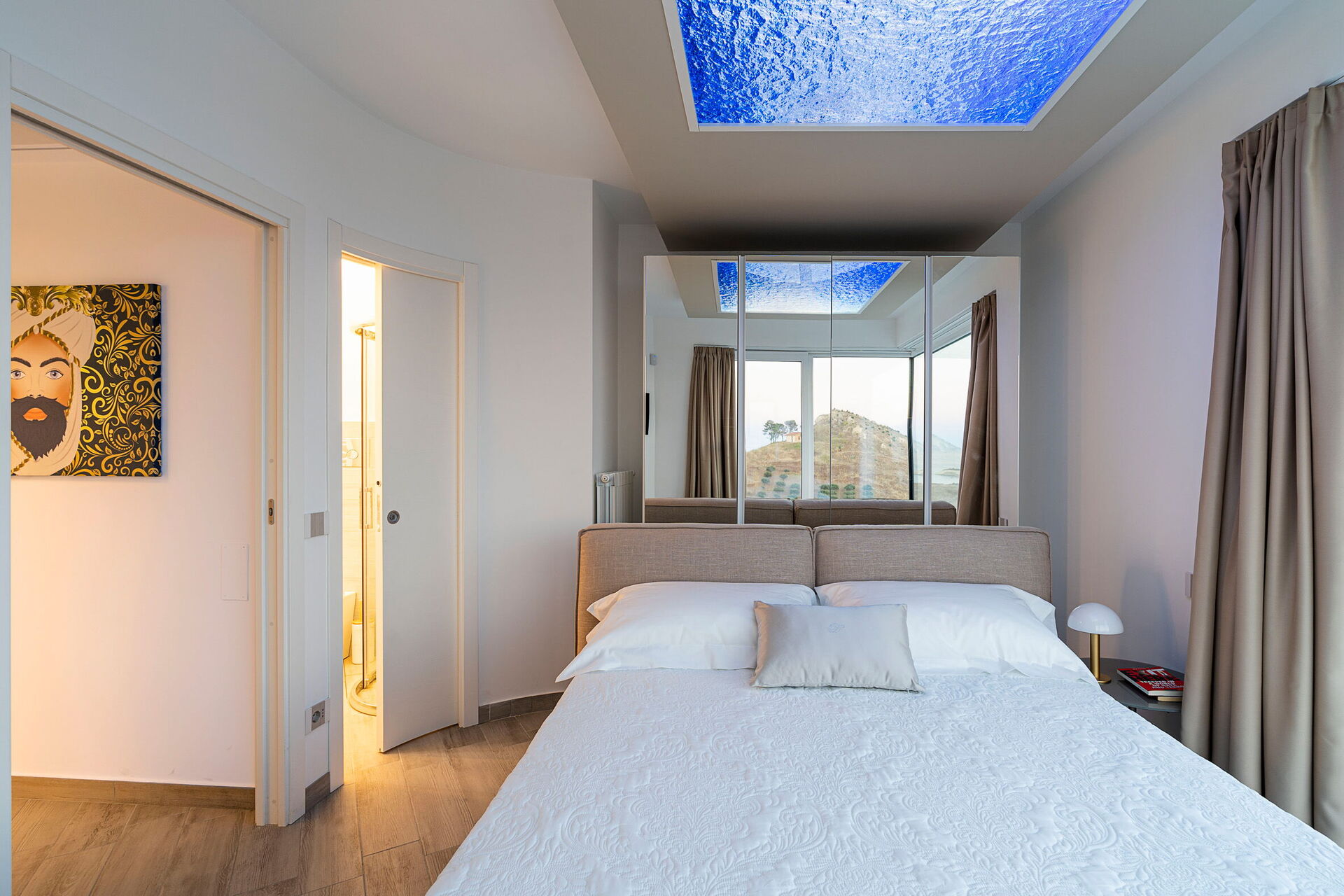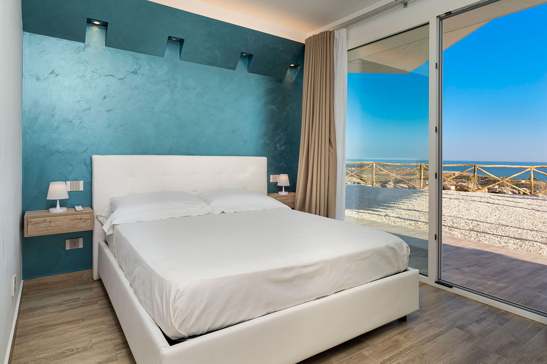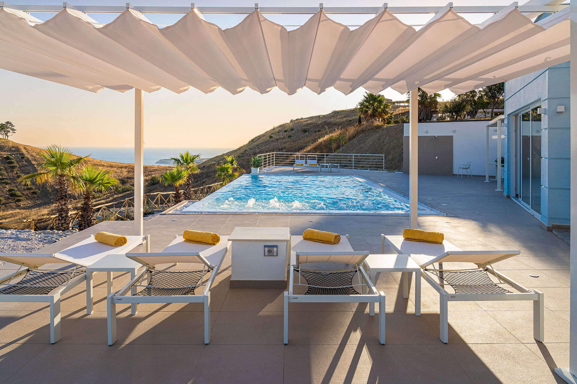 If you are looking for an exclusive vacation villa in Sicily, Villa Domizia is for you. Modern and refined, it has 4 bedrooms to accommodate up to 8 people. The light and panoramic views are this marvelous villa’s best features: both inside and outside there are spectacular views of the sea and the surrounding countryside. Outside, you can relax in the large saltwater pool with a whirlpool zone.