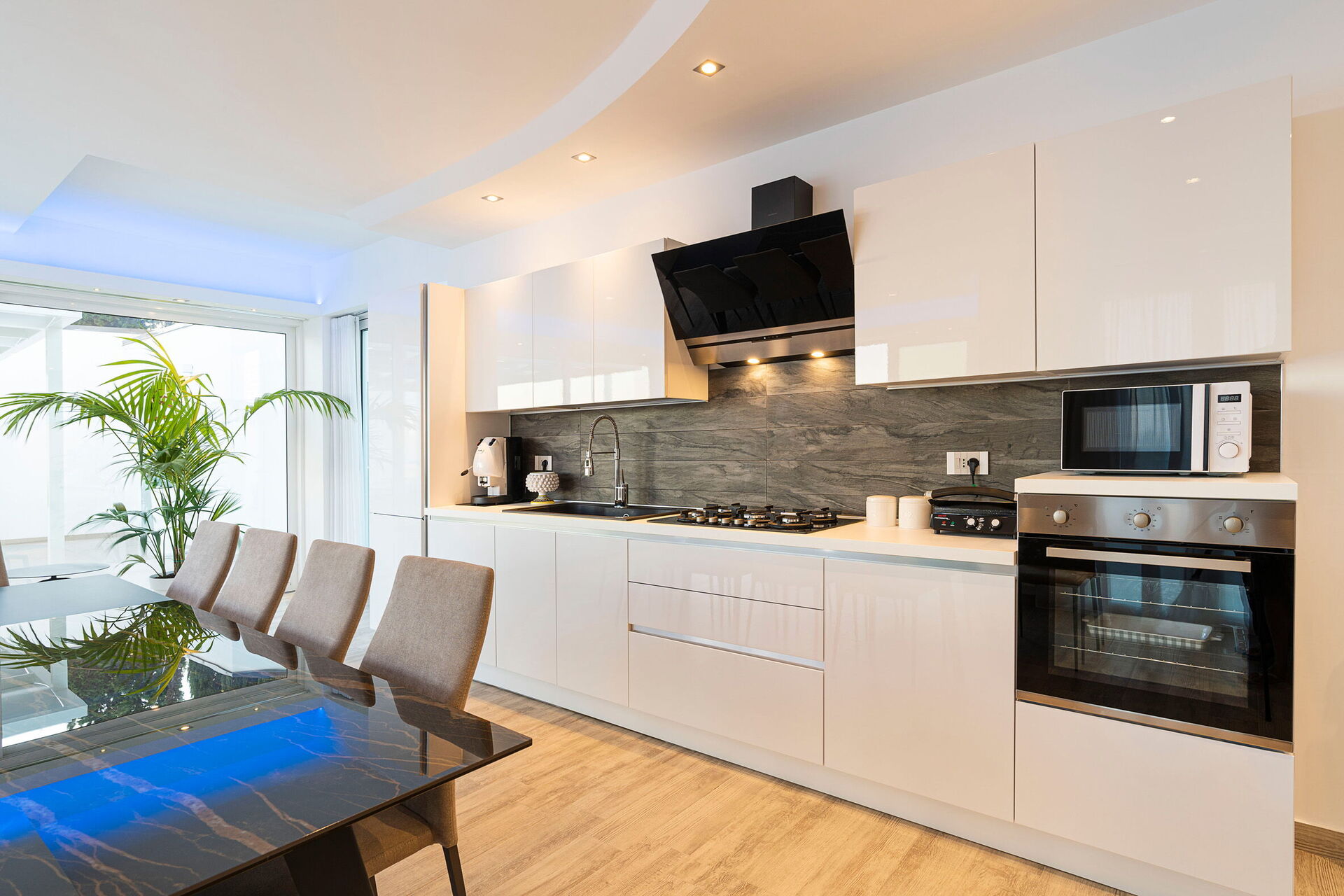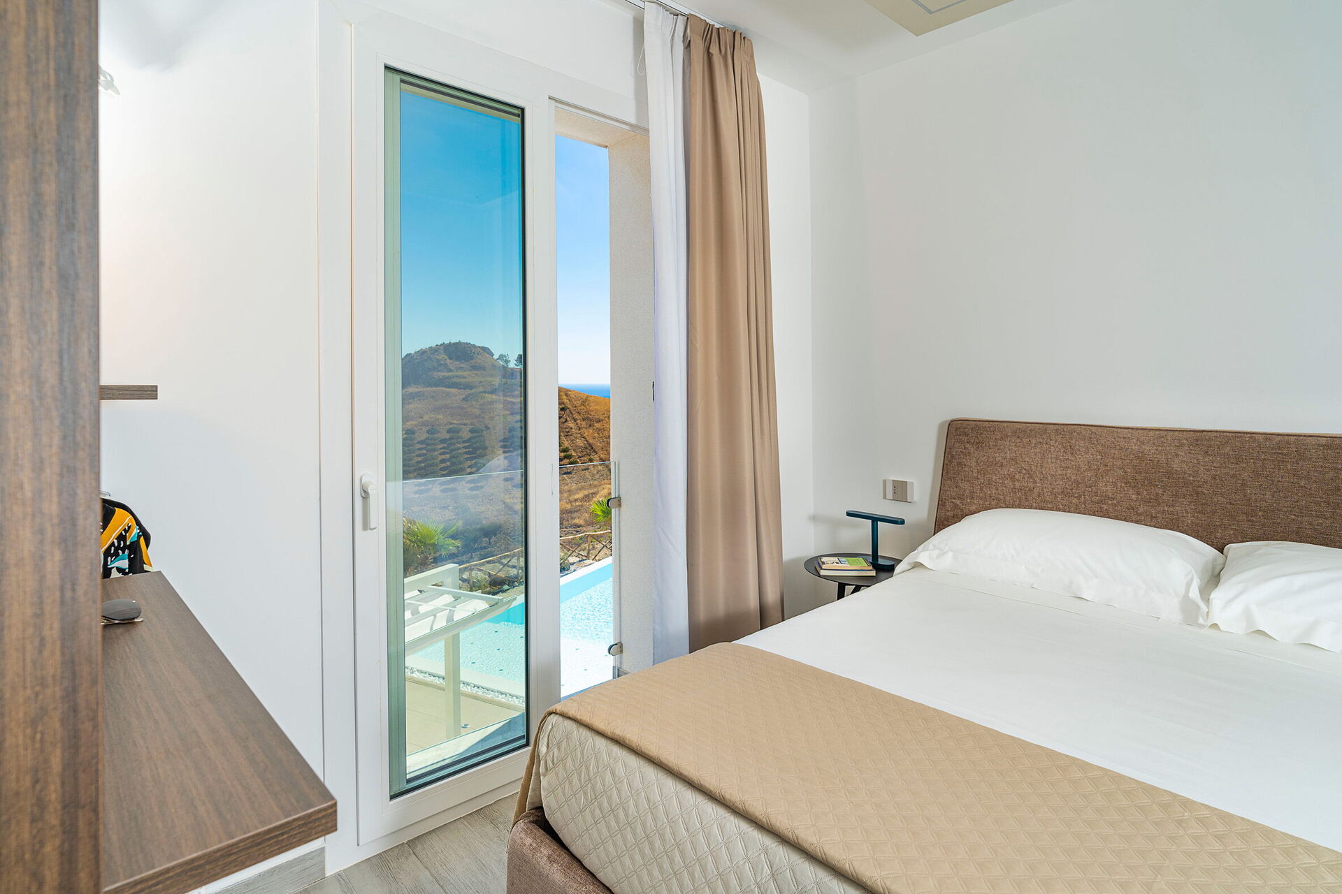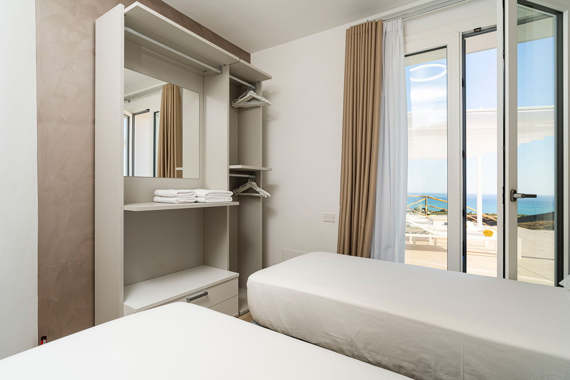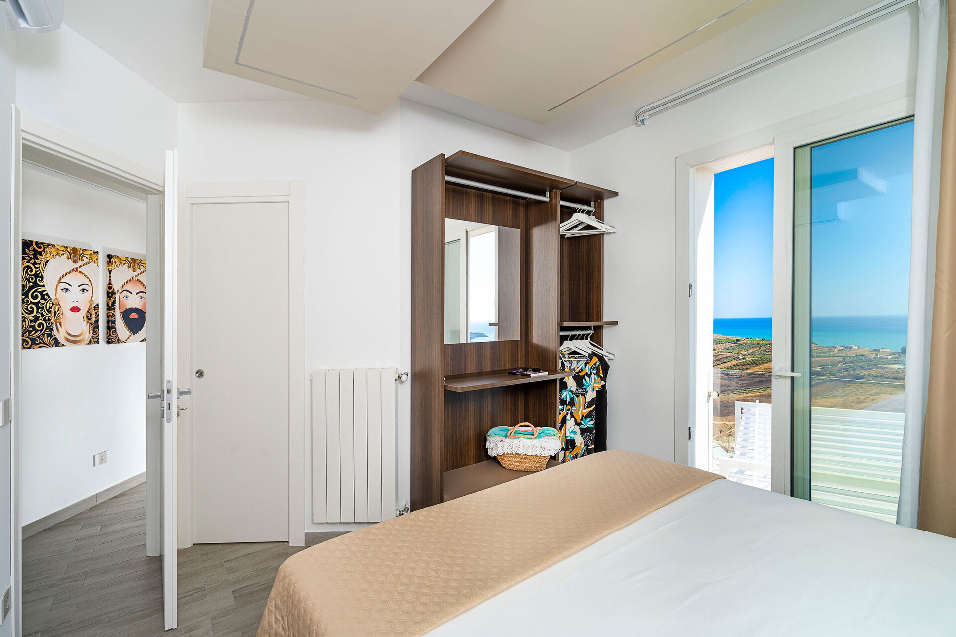 If you are looking for an exclusive vacation villa in Sicily, Villa Domizia is for you. Modern and refined, it has 4 bedrooms to accommodate up to 8 people. The light and panoramic views are this marvelous villa’s best features: both inside and outside there are spectacular views of the sea and the surrounding countryside. Outside, you can relax in the large saltwater pool with a whirlpool zone.
