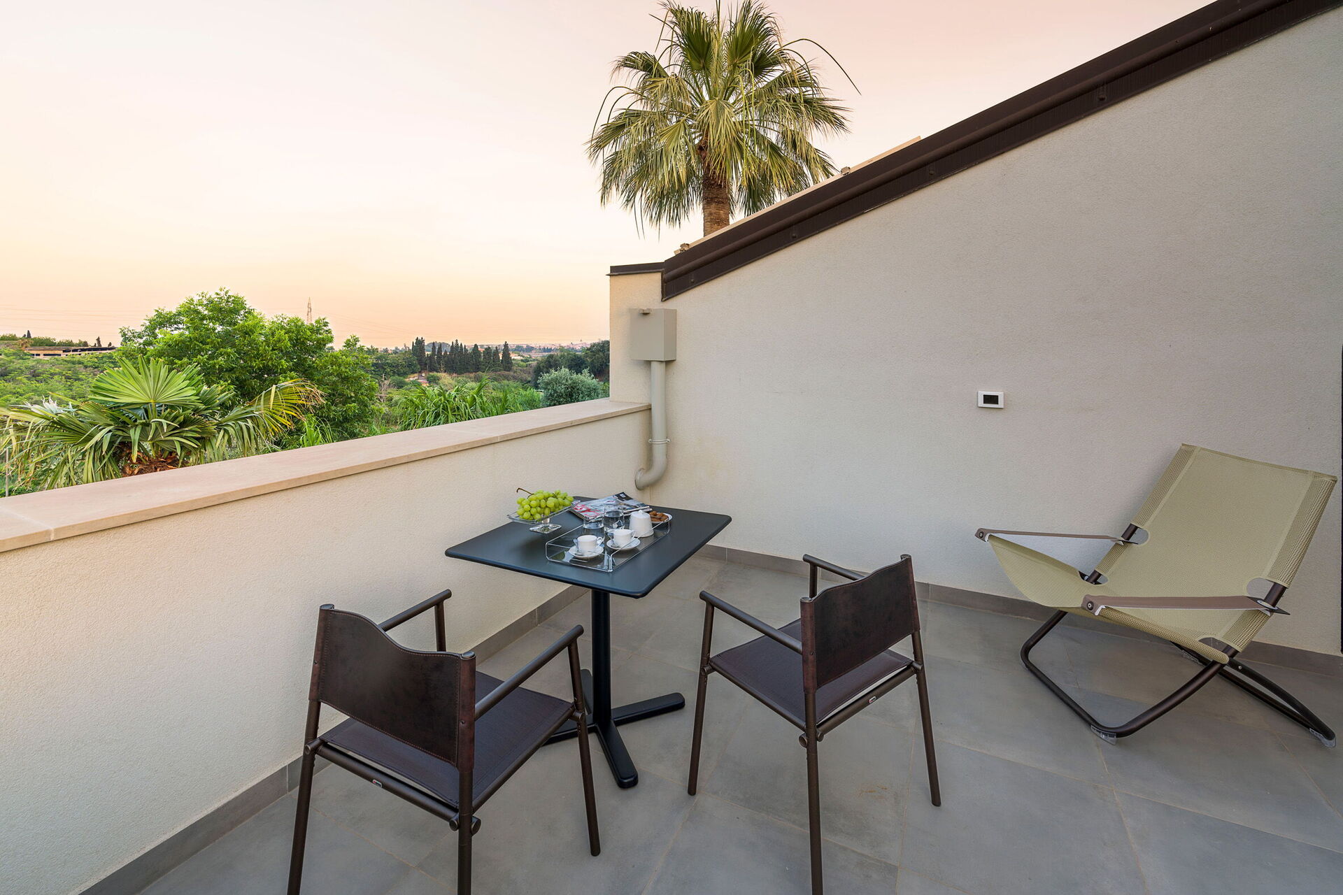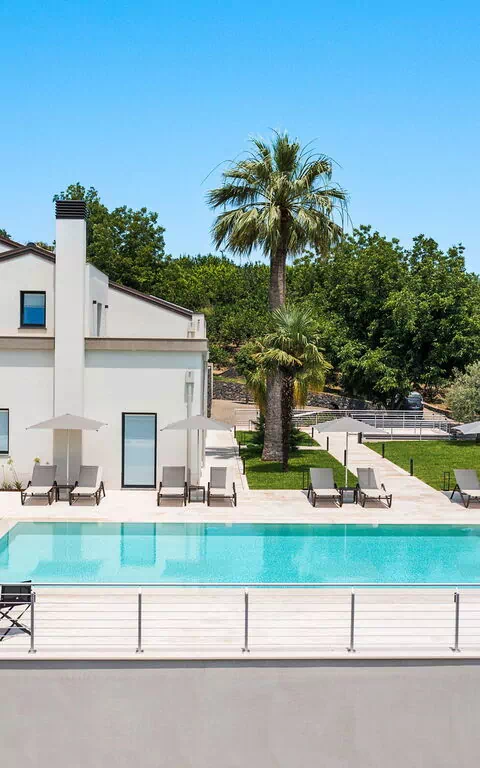 The outdoor spaces, with panoramic views, offer numerous areas that permit guests to spend a pleasant stay with family or friends; you can eat outdoors, relax by the pool (with a salt purification system) or in the solarium area, ideal for spending unforgettable moments under the Sicilian sun.