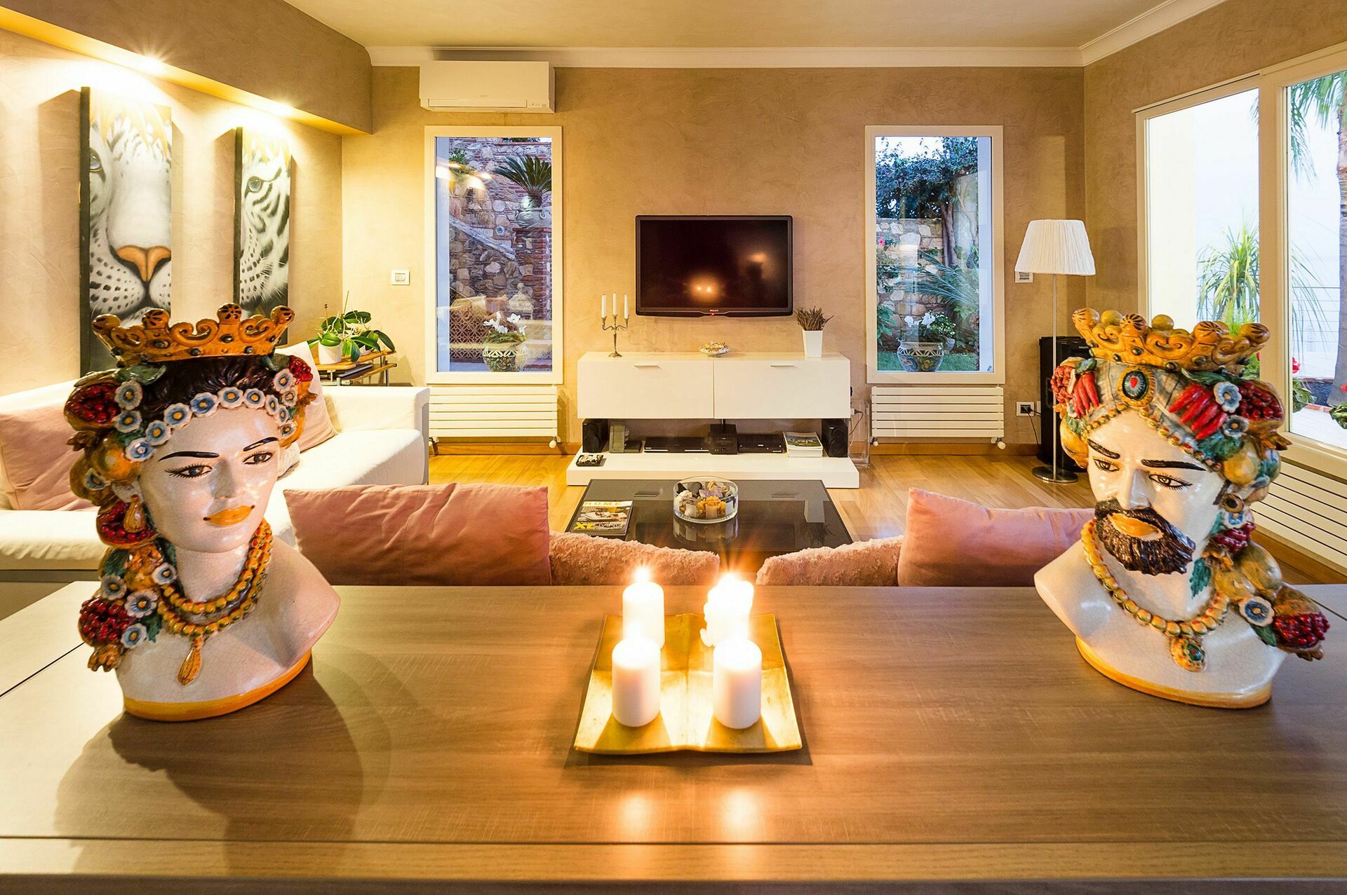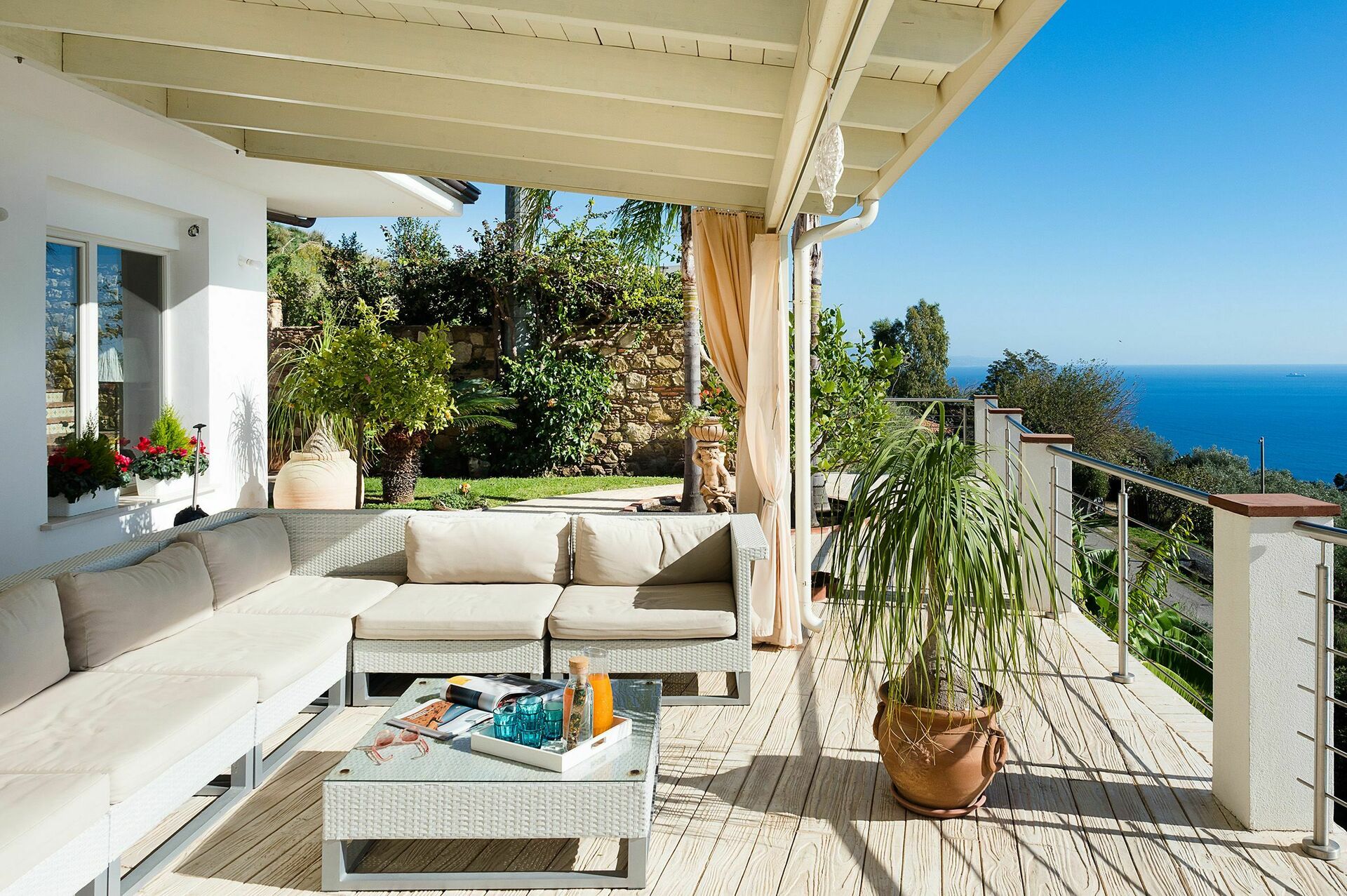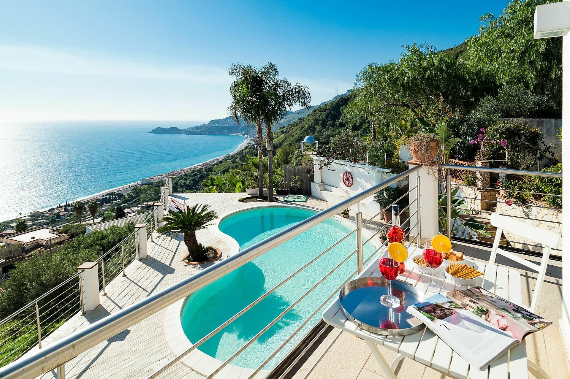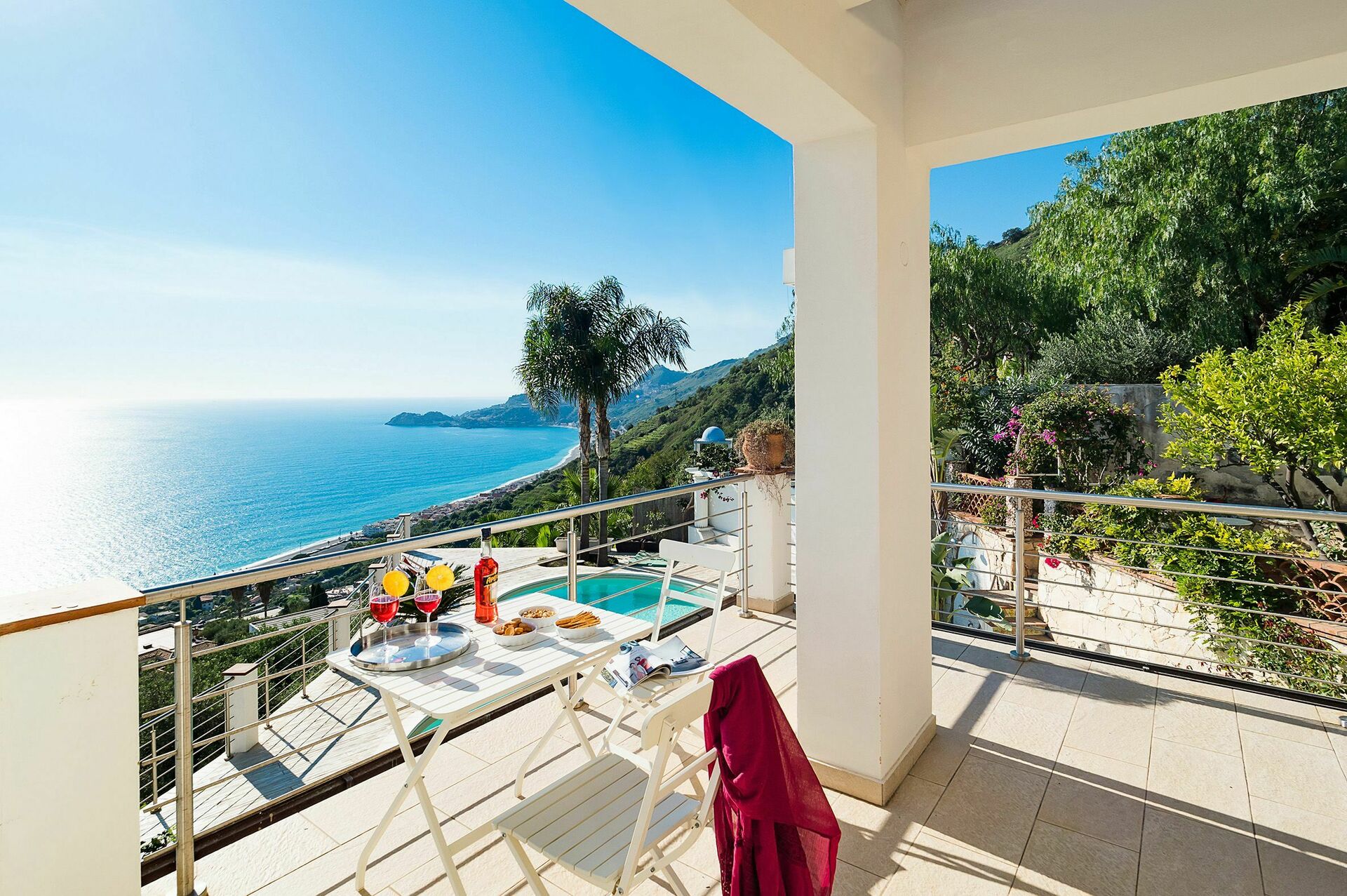 Surrounded by a lush, well-tended Mediterranean garden, this exclusive property enjoys a panoramic location with breathtaking views towards Taormina’s bay and the sea.