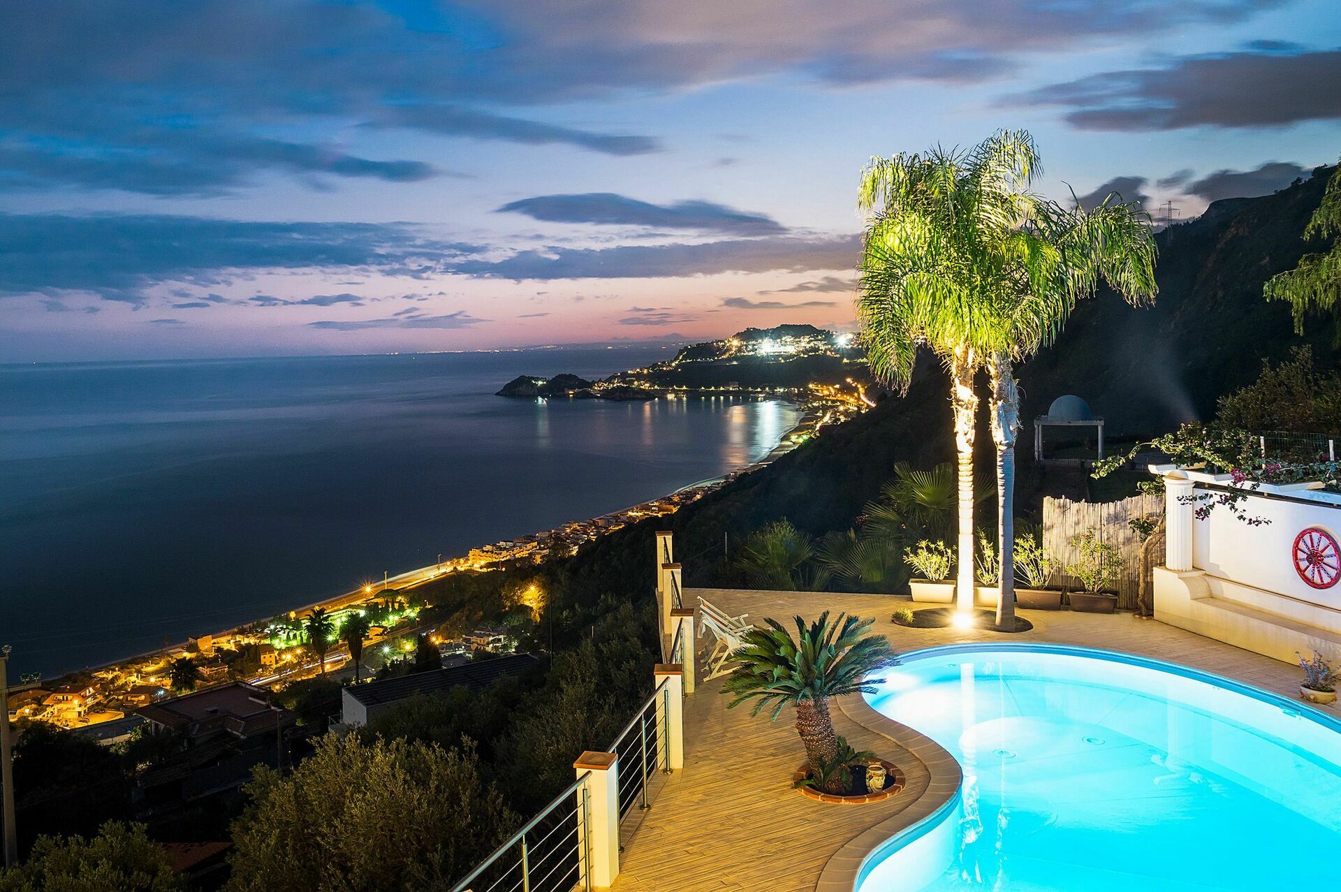 Villa Luce is a fabulous villa with private swimming pool and wonderful sea view located on the edge of Letojanni, a renowned seaside resort a few kilometres away from Taormina, in Sicily.