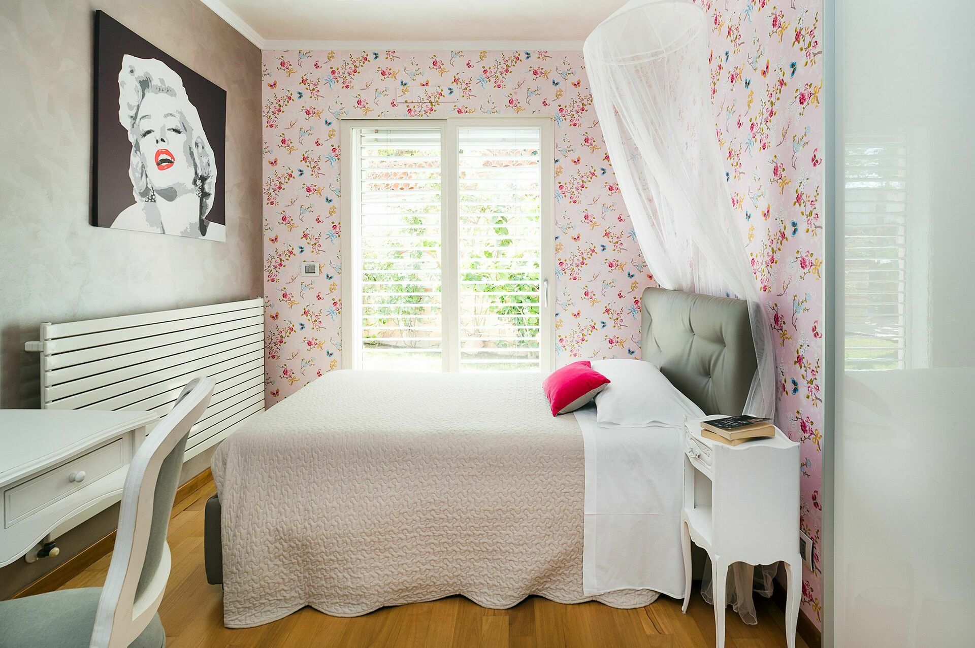 First floor: double bedroom, bathroom with bathtub and shower.