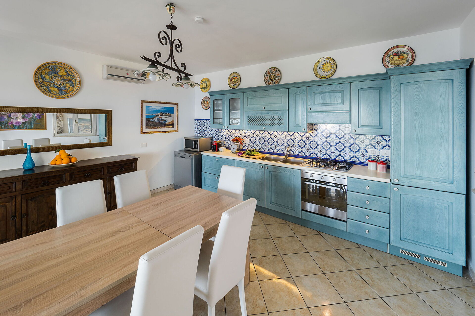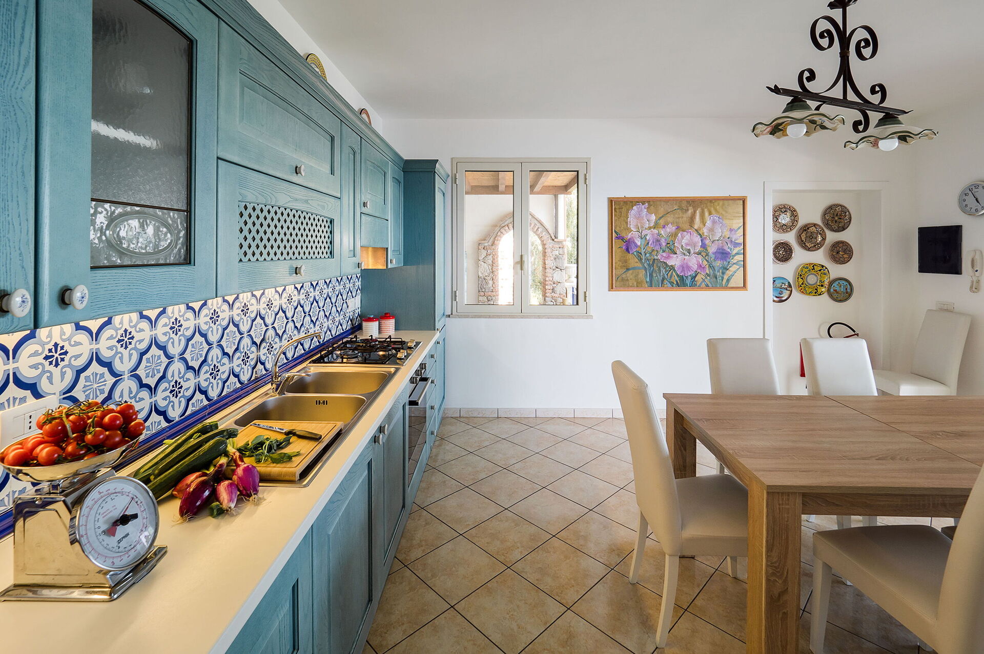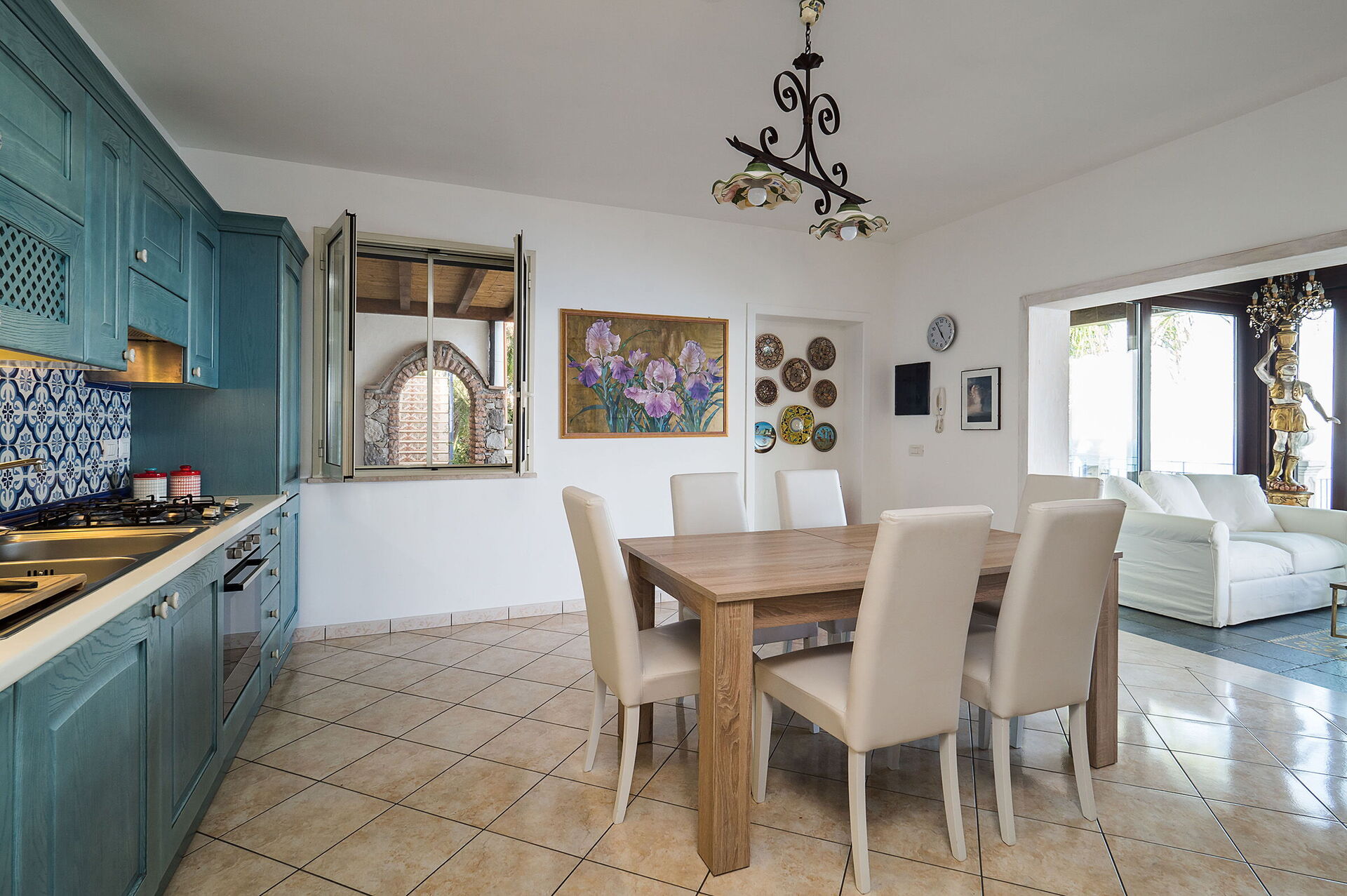 Surrounded by a well-kept and verdant garden, it has welcoming interiors furnished with elegance and attention to detail in a pleasant combination of styles.