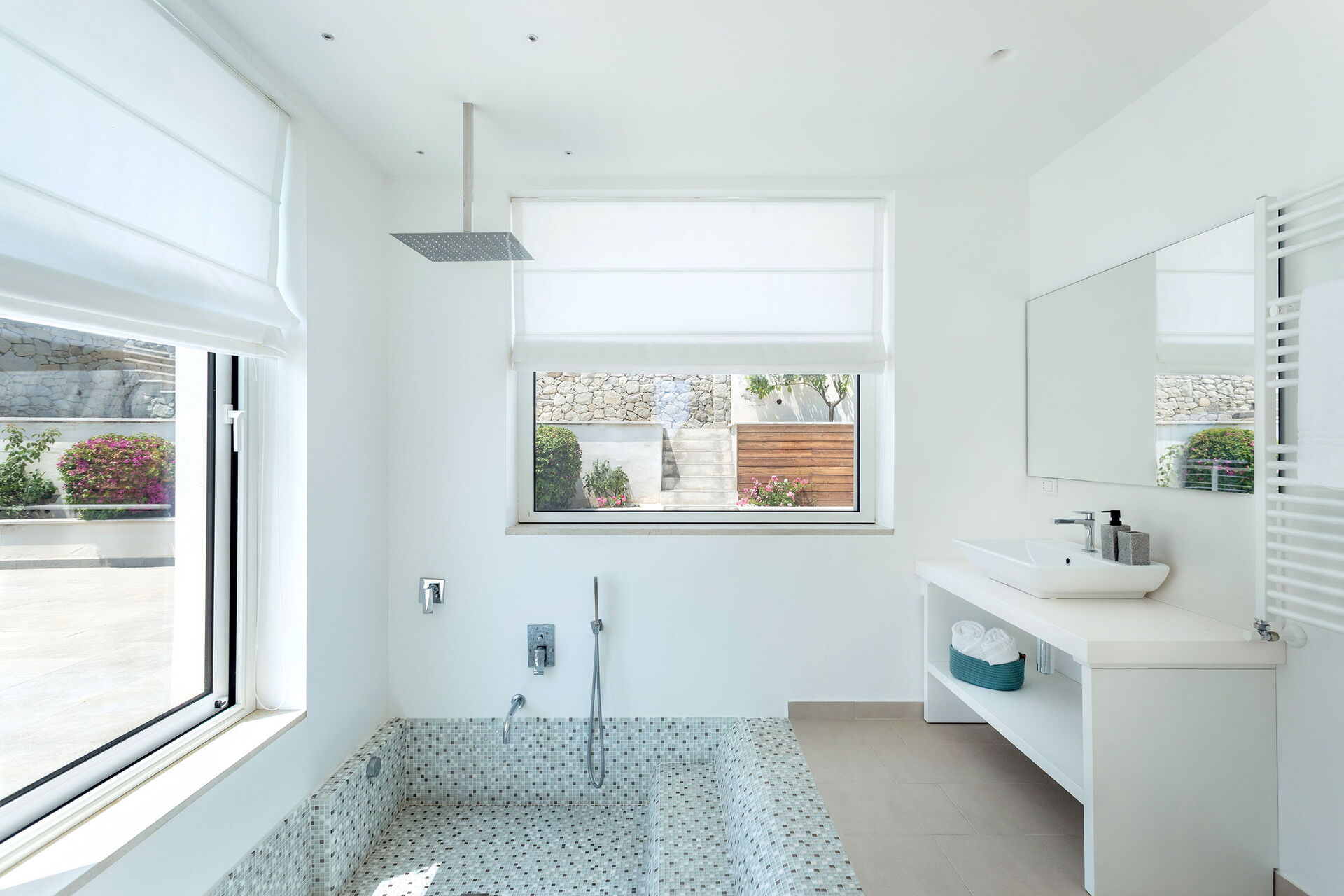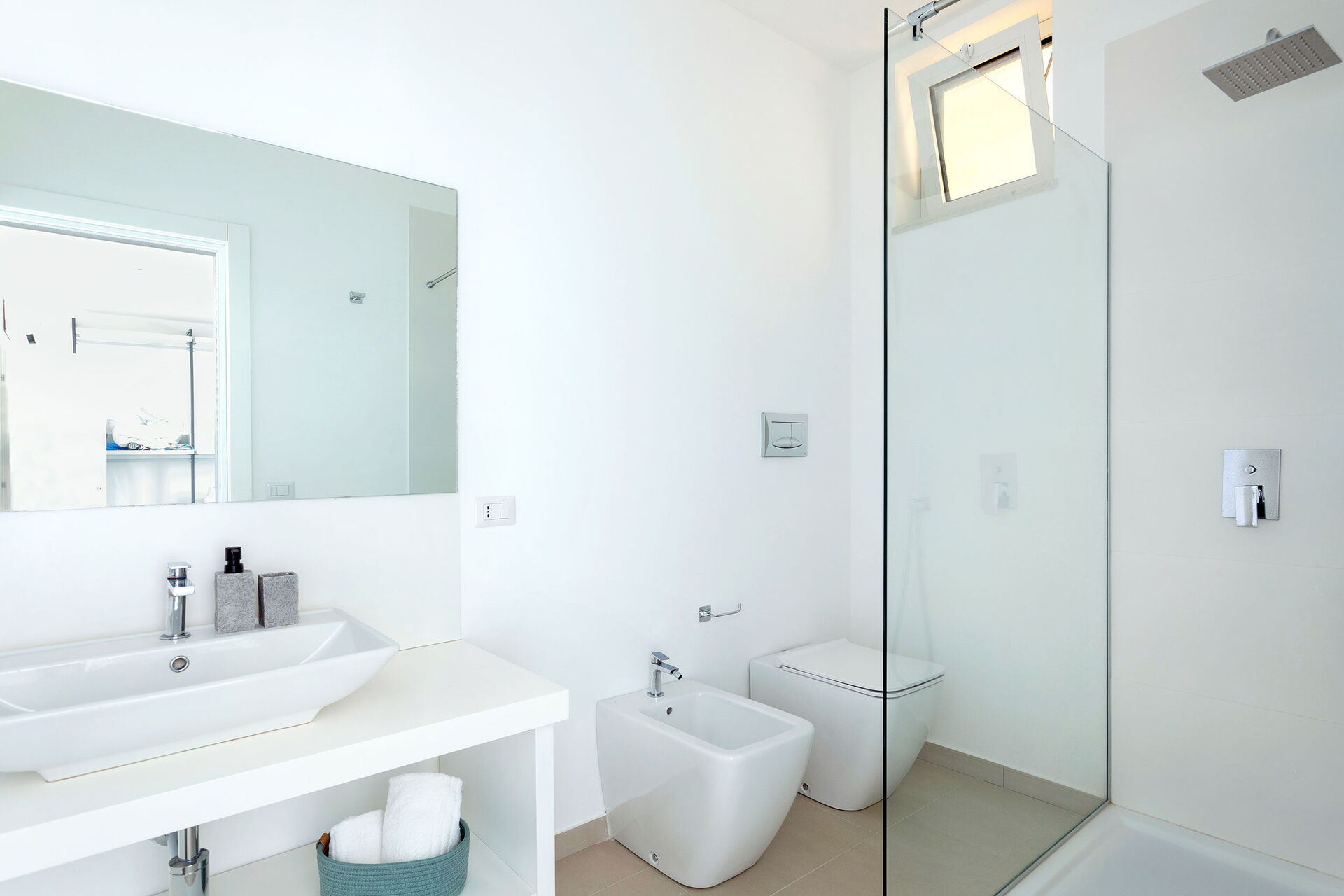 This stunning vacation villa rental in Sicily has 4 bedrooms (each with a private bathroom) and a spacious living area with large windows looking out onto the pool area and surrounding landscape. It can comfortably accommodate up to 8 people.