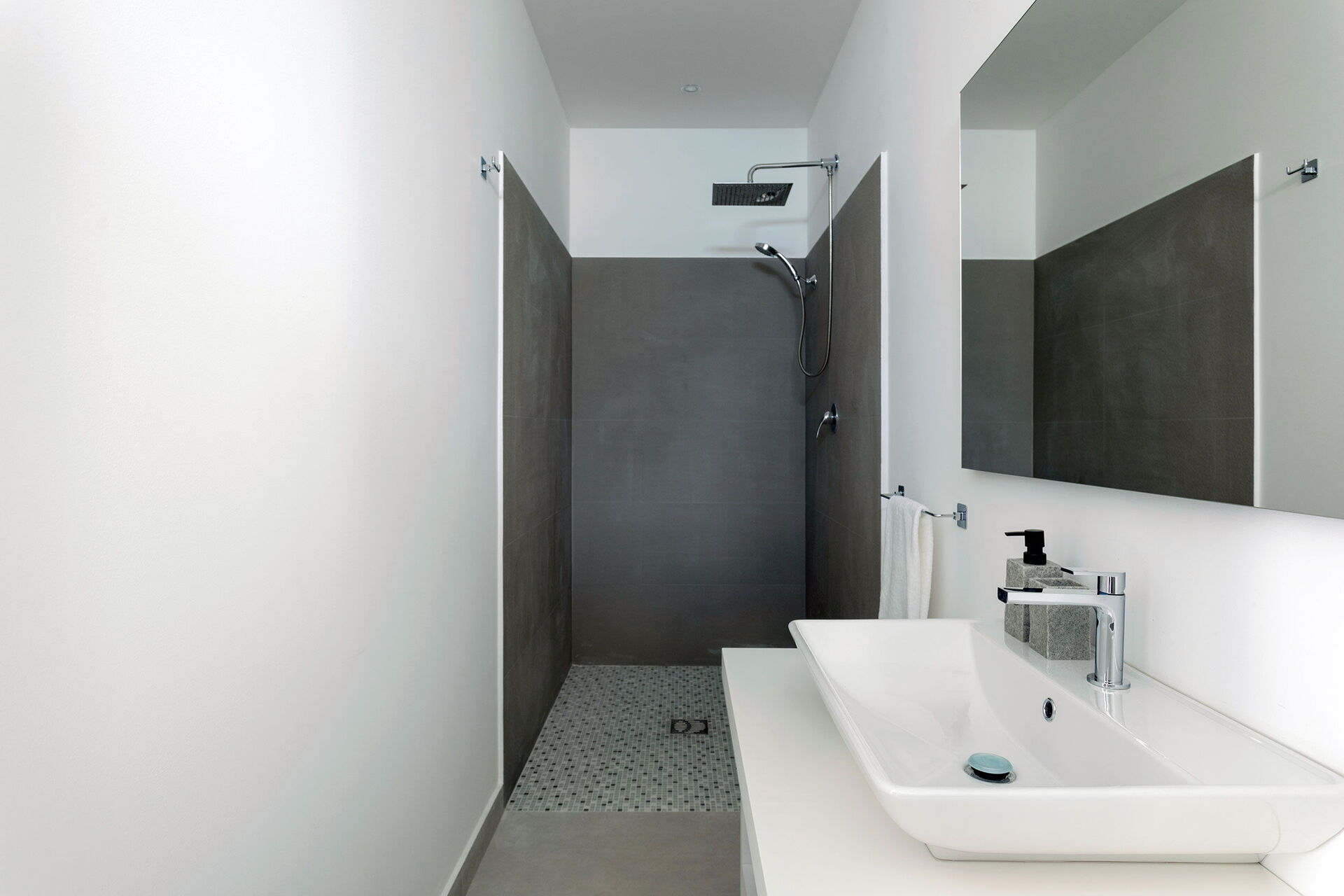 Ground floor: (accessible only from outside, and not connected to the rest of the villa on the inside): double bedroom (air conditioning) with private bathroom with shower.