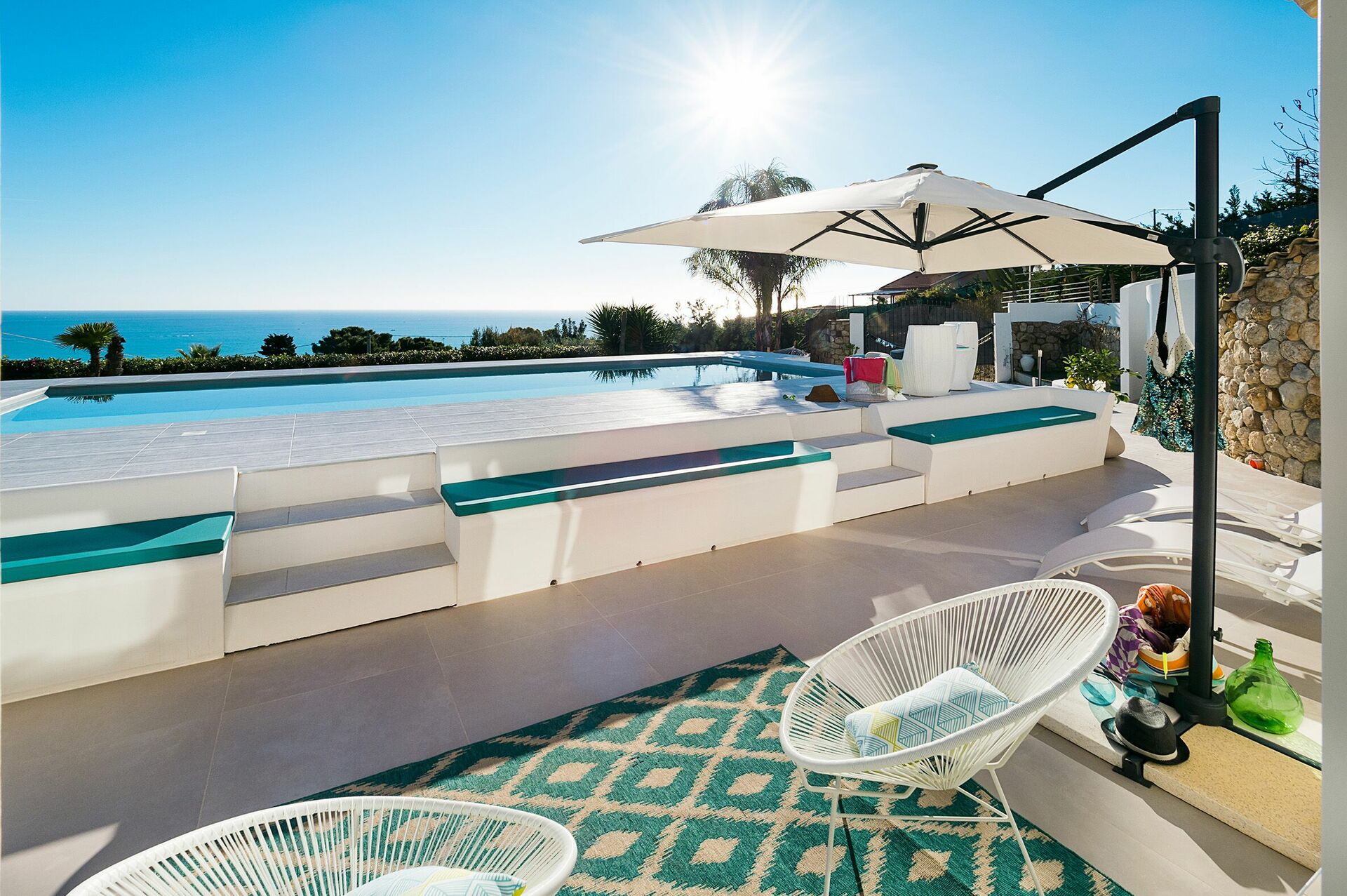 Surrounded by a luxuriant and a well-kept garden, Villa Pales boasts a beautiful saltwater pool and spacious terraces with garden furniture offering enchanting sea views.