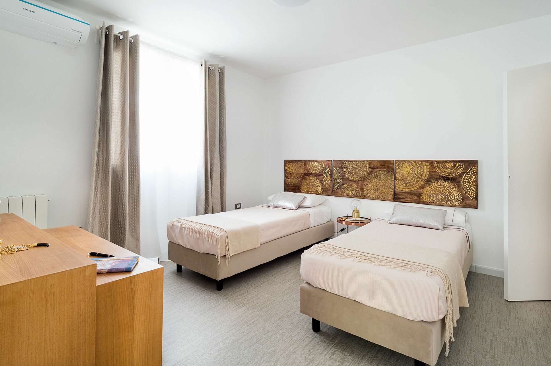 Ground floor: 2 double bedrooms, 1 twin/double bedroom, sitting room, 2 bathrooms with shower, terrace.