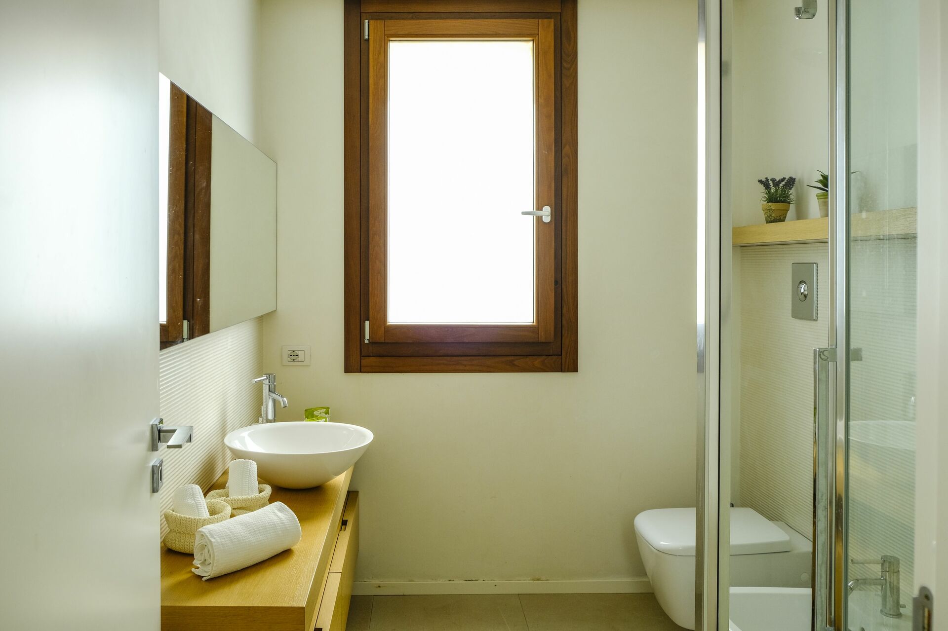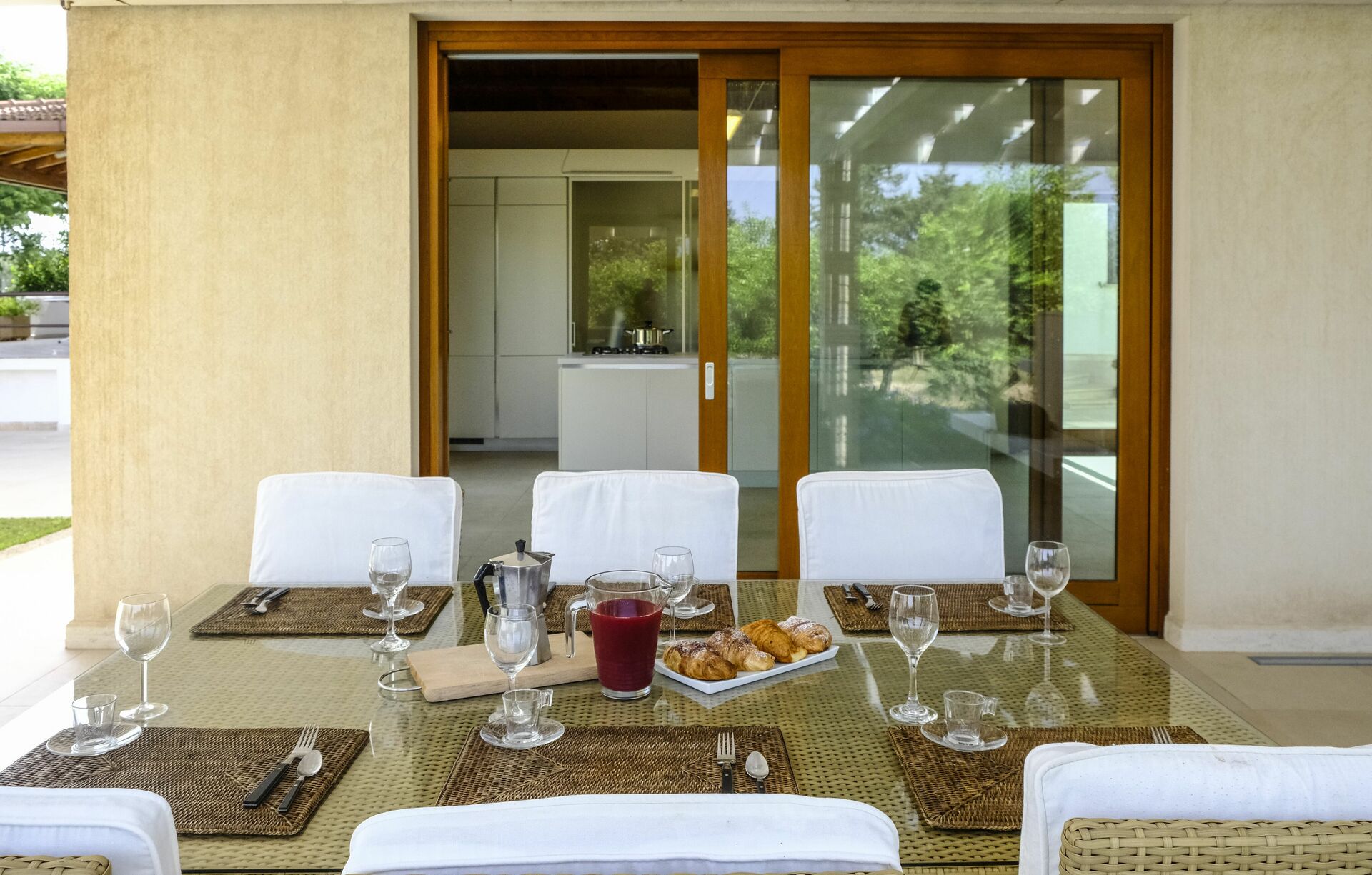 The villa is on one level and consists of two parts: in the main building there are 4 bedrrooms while the living area with a fifth room are in the loft that the owners have restored respecting the original structure. The furnishing is refined and essential, creating a warm and comfortable atmosphere.