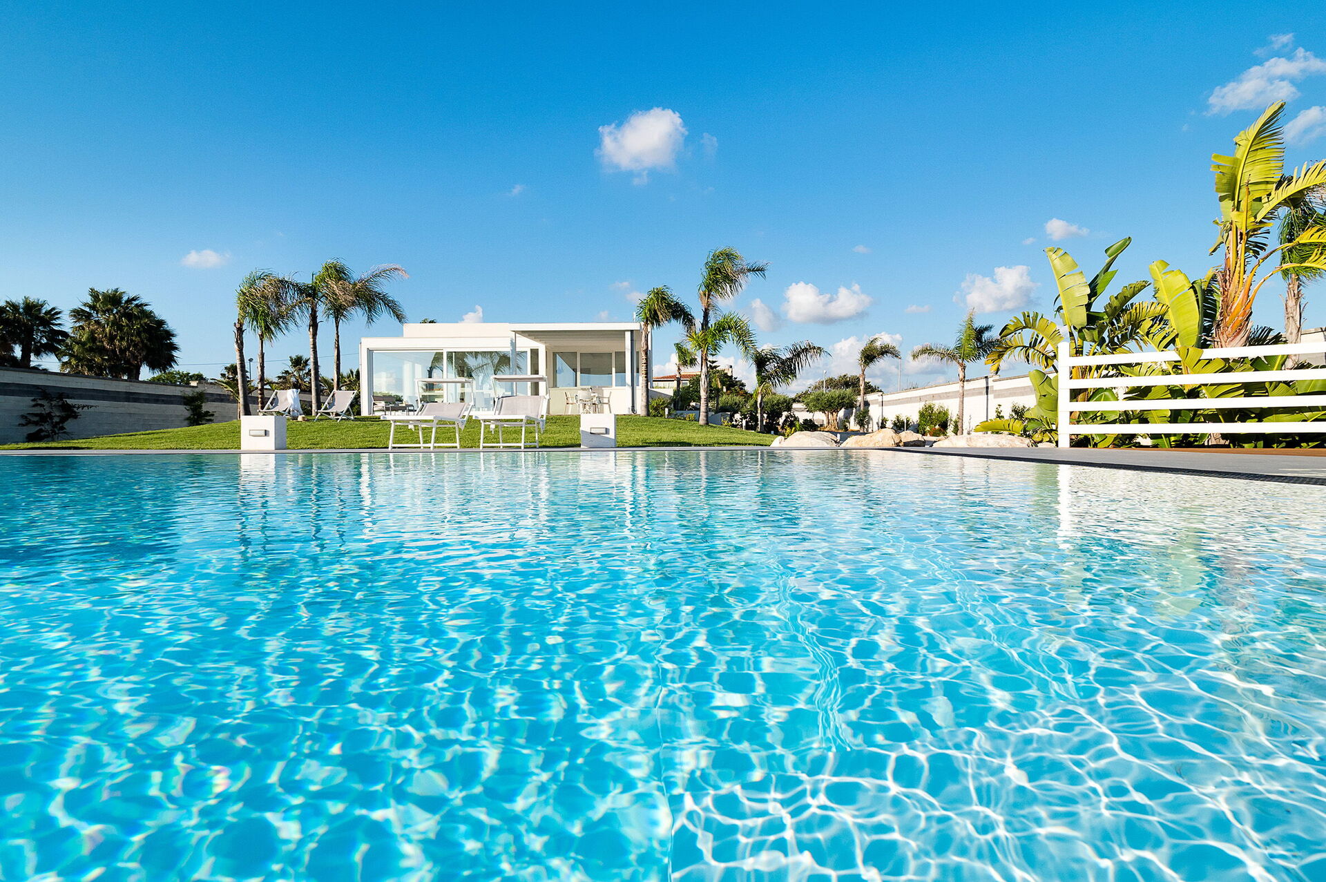 Diantha is a modern holiday villa, with a shared pool, in Sicily.