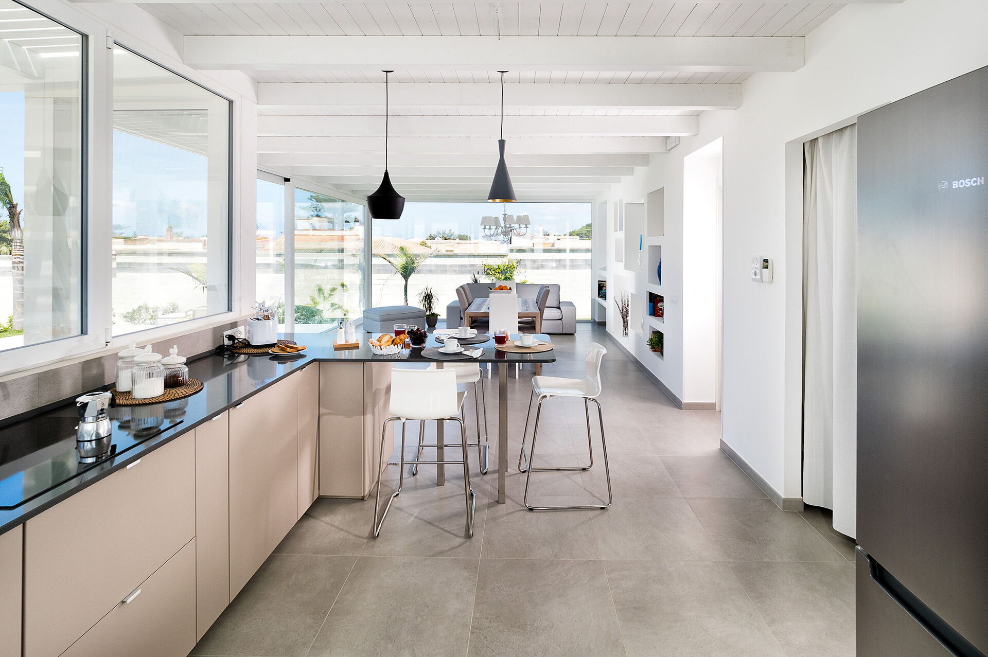 The interiors are welcoming and bright and furnished in a modern style and it is well equipped for a comfortable stay.
