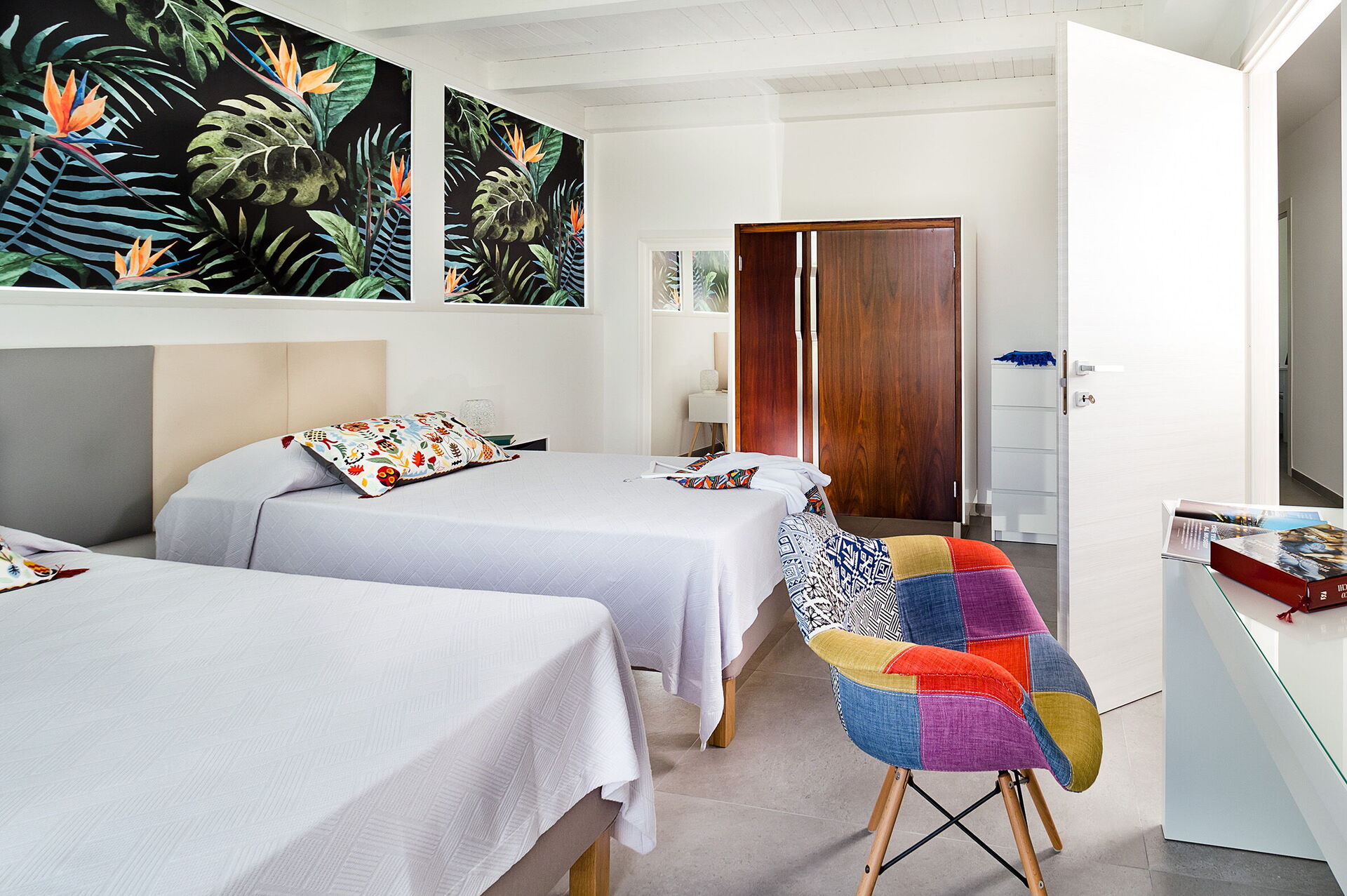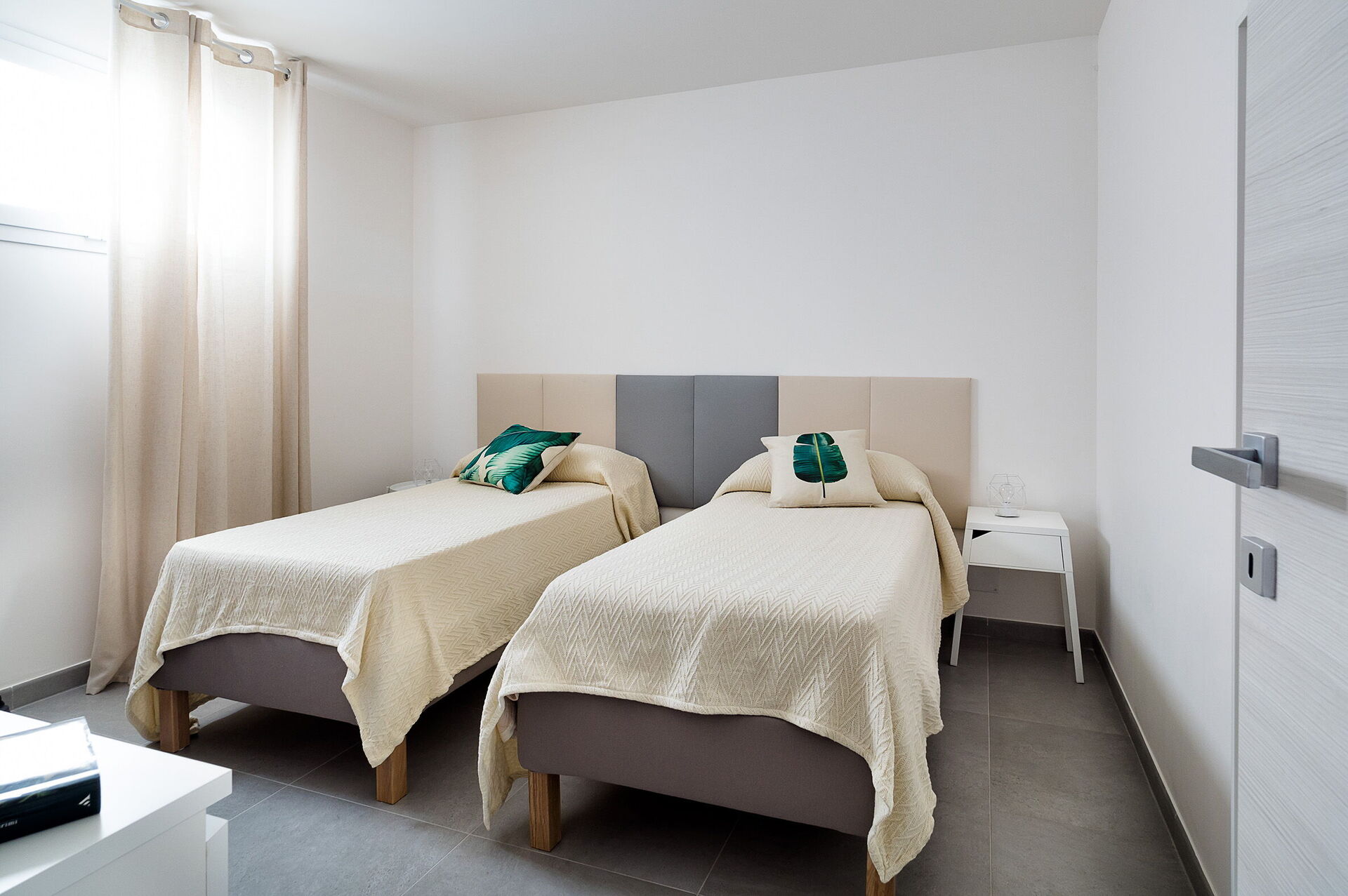 Lower floor: (accessible only from the outside and not connected internally to the rest of the villa): living room (air conditioning, smart-TV) with dining area and kitchen (stove, oven, fridge, freezer, dishwasher), double bedroom (air conditioning), bedroom with 2 single beds (air-conditioning), 2 bathrooms with shower.