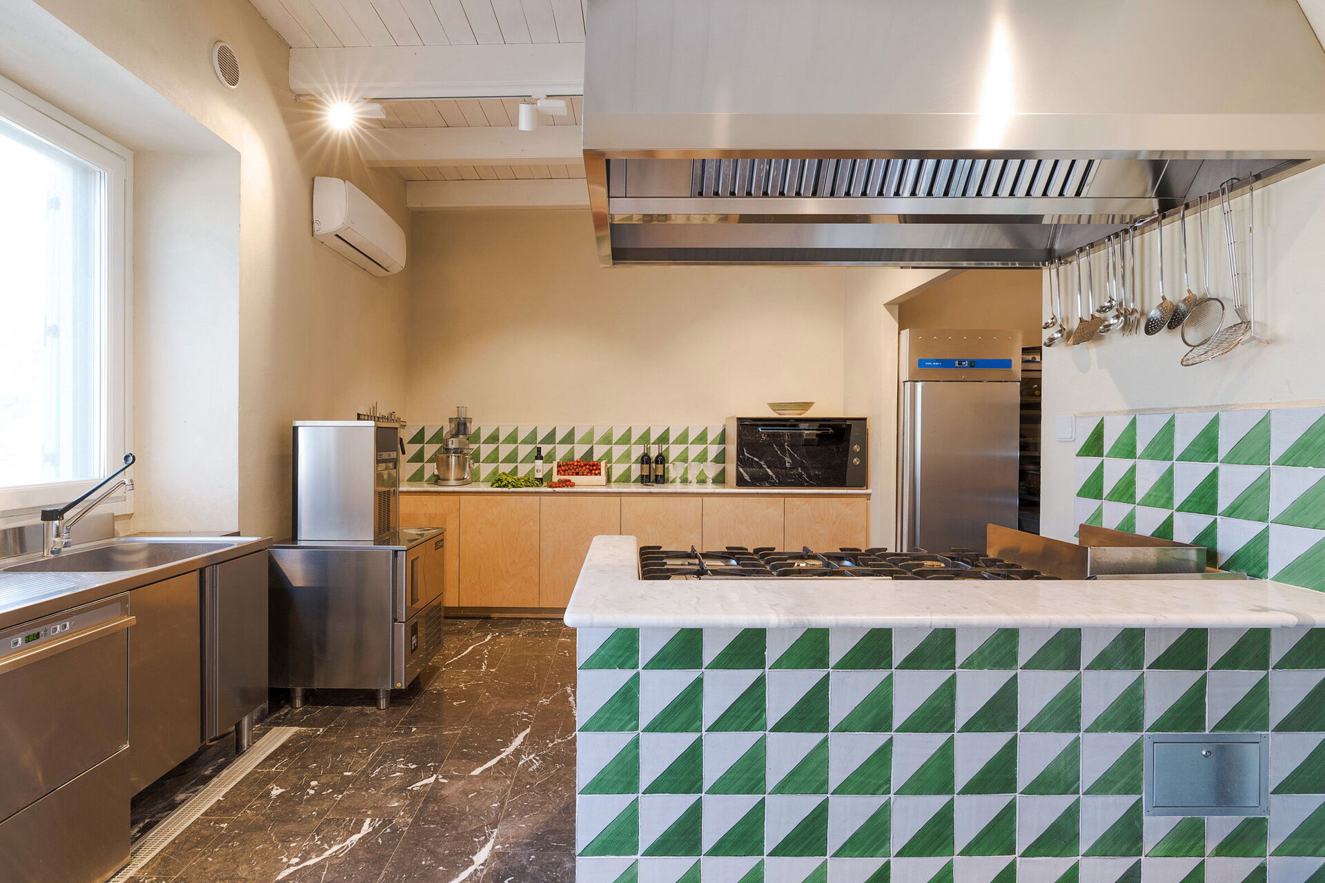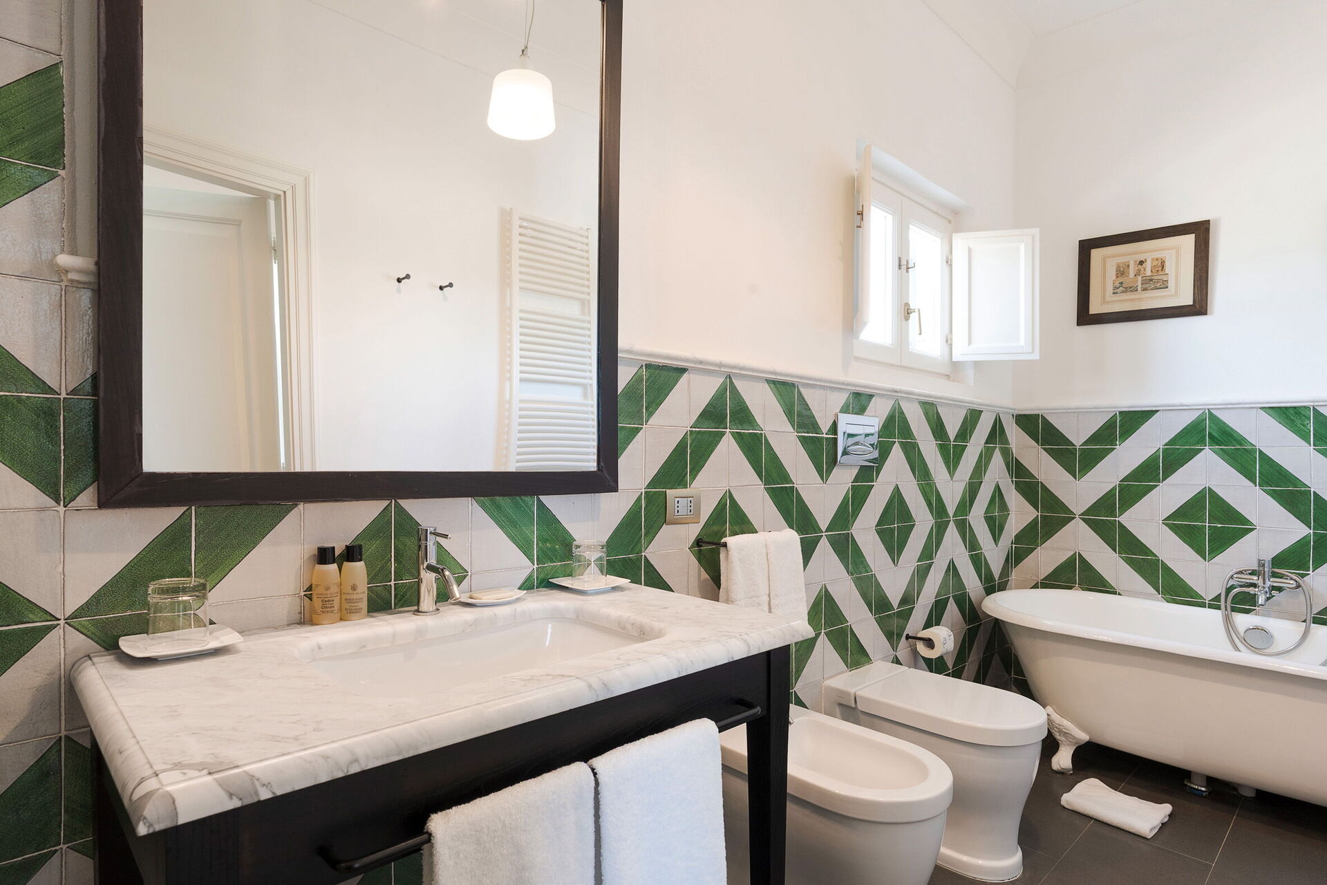 The property’s large spaces are suitable for large groups: with well-appointed, comfortable interiors, 4 suites, 2 bedrooms and two floors (connected by elevator), it can accommodate up to 12 people. The interiors are tastefully decorated with attention to detail and designer furniture.