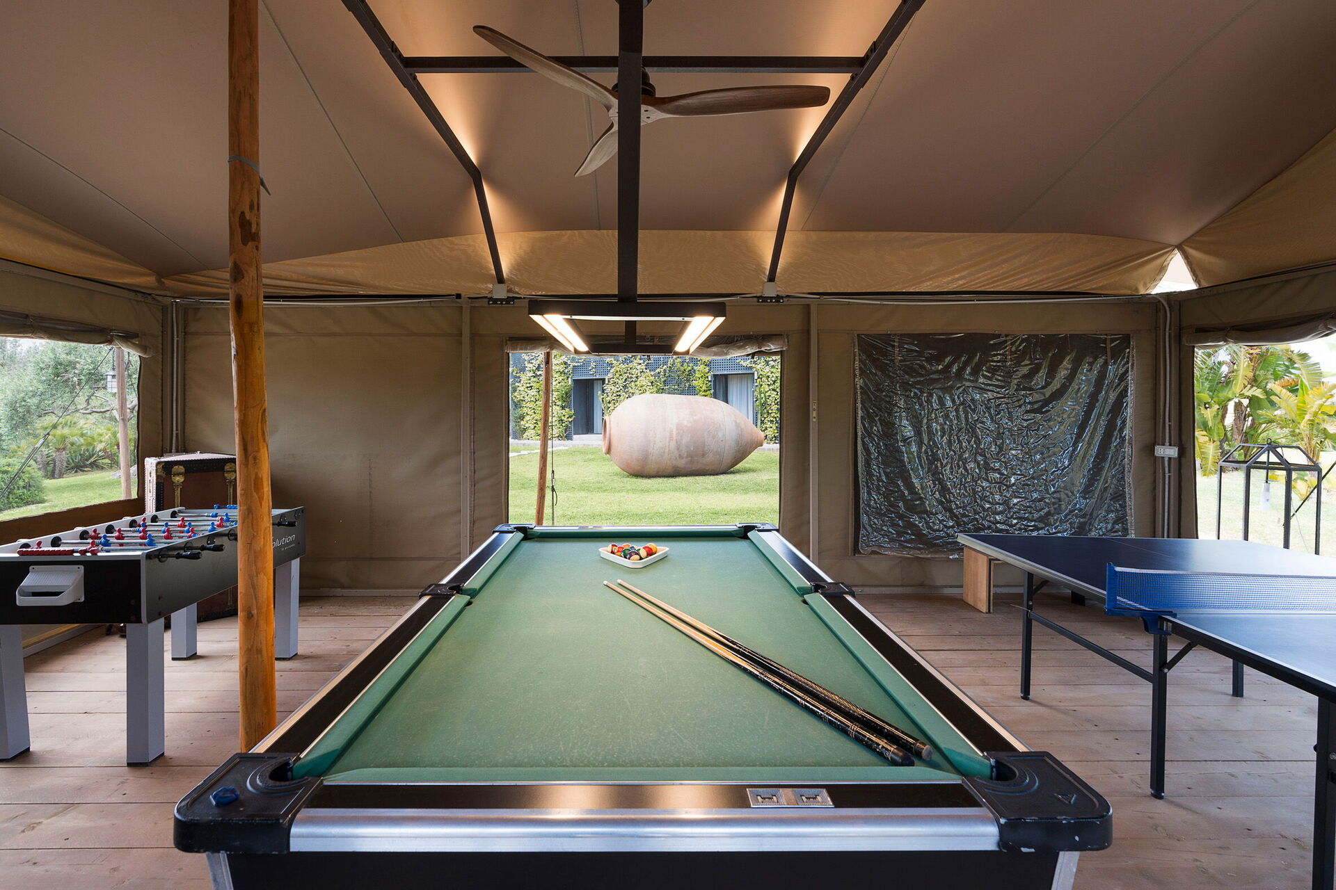- safari tent with game room (billiards, table soccer and ping-pong table)