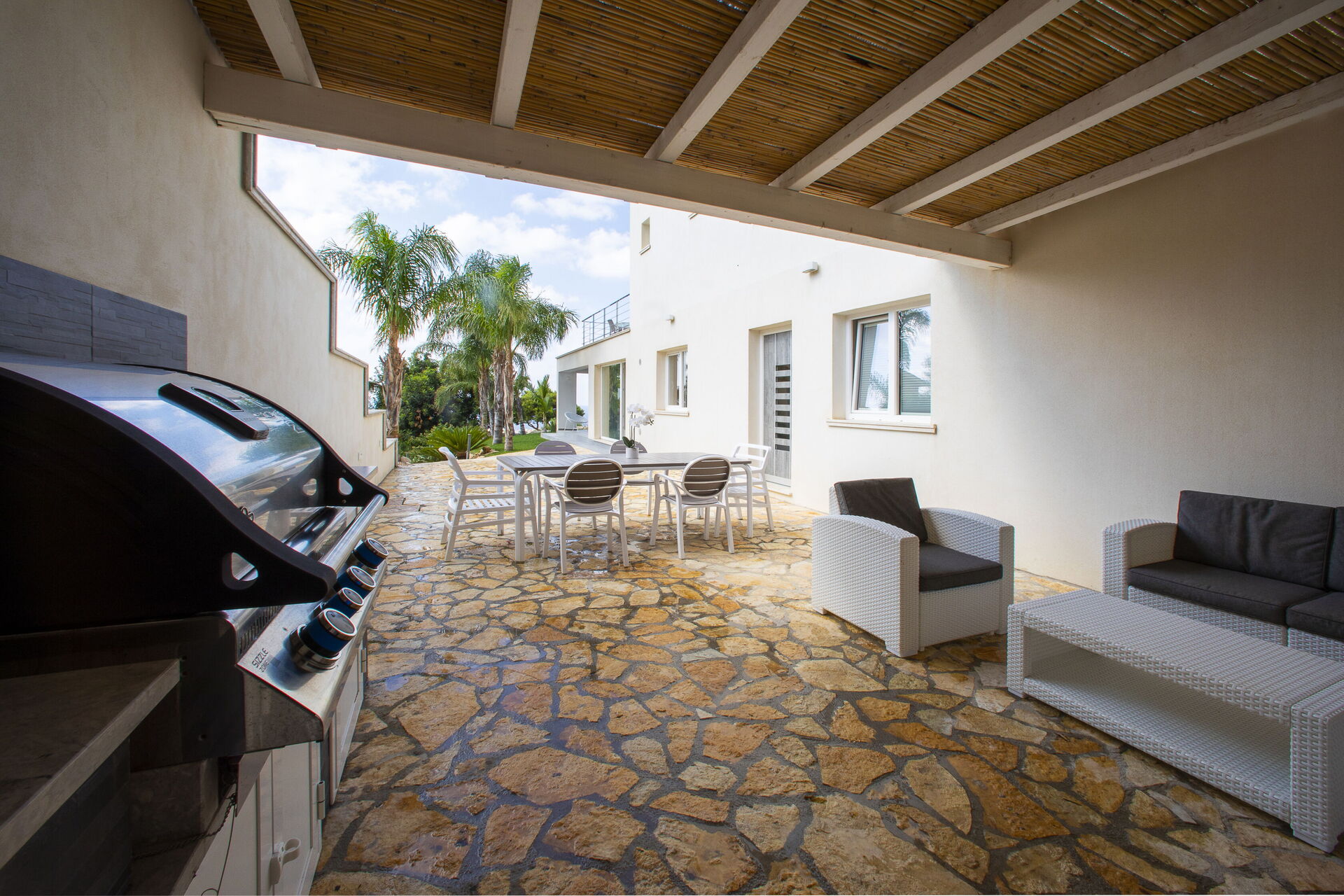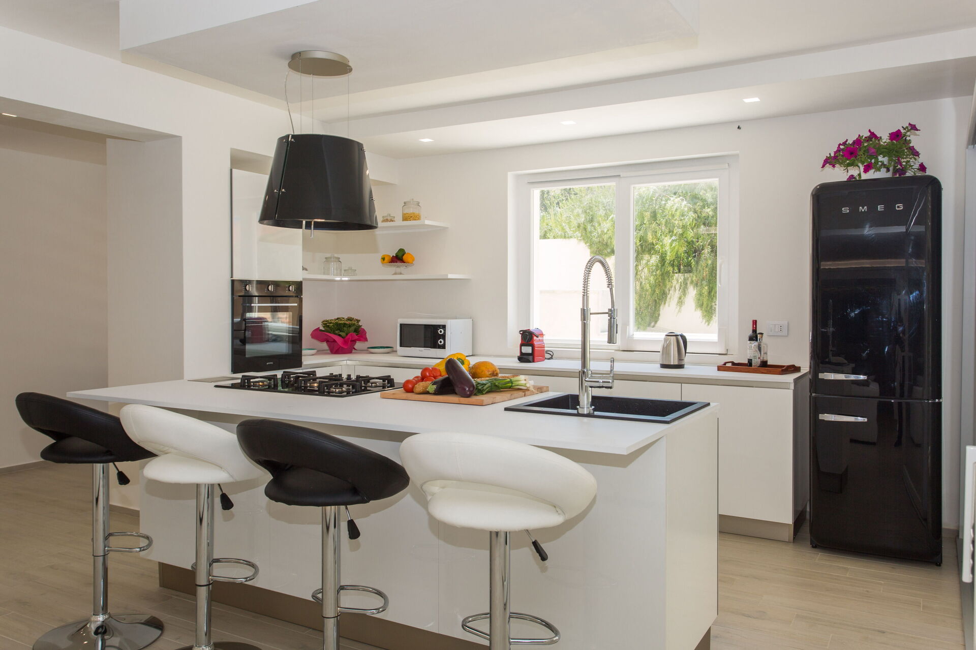 The beautiful garden is lush with native plants and offers an elegant pool and brand new whirlpool tub exclusively for villa guests. There are sun loungers for basking in the Sicilian sun, and a covered terrace for relaxing. There is also a second dining area with a fully outfitted barbecue, right next to the villa entrance, which is perfect for spending lunch and dinner together with family and friends.